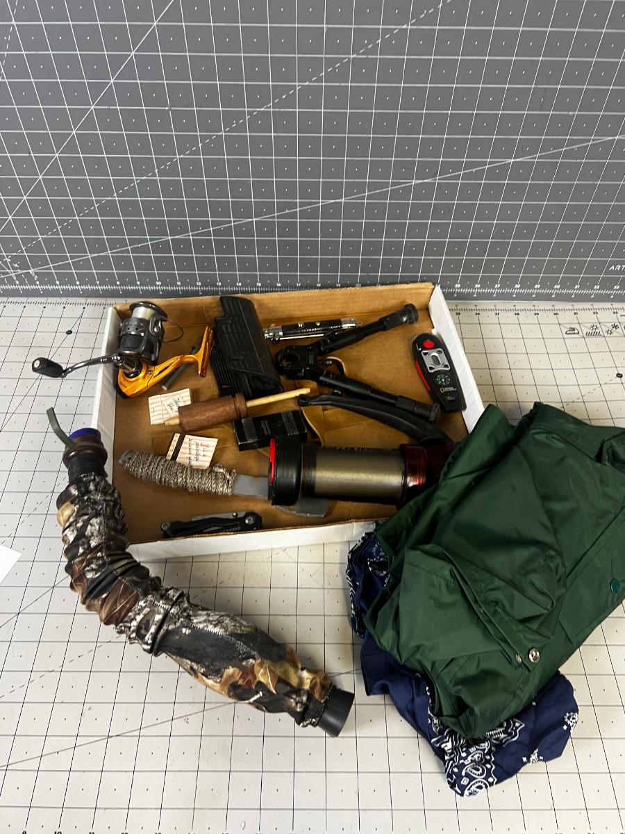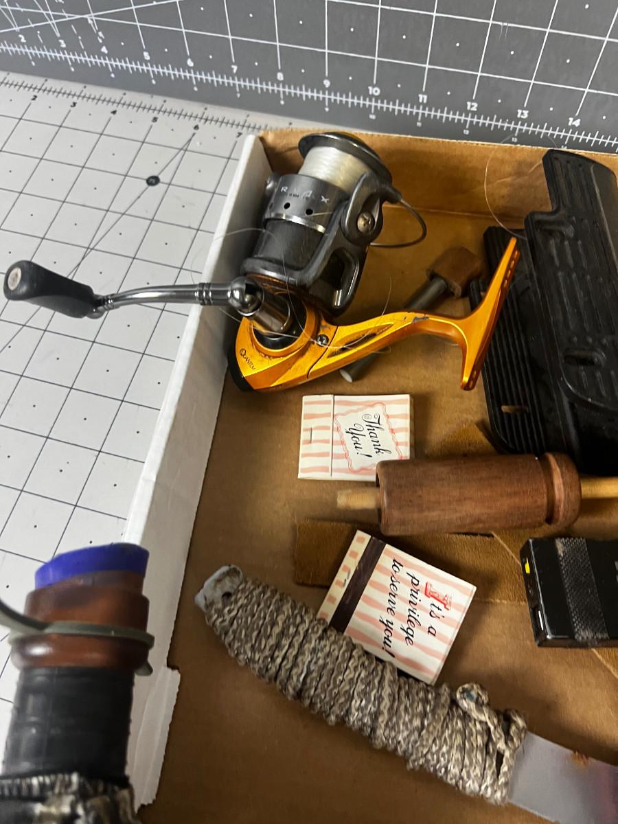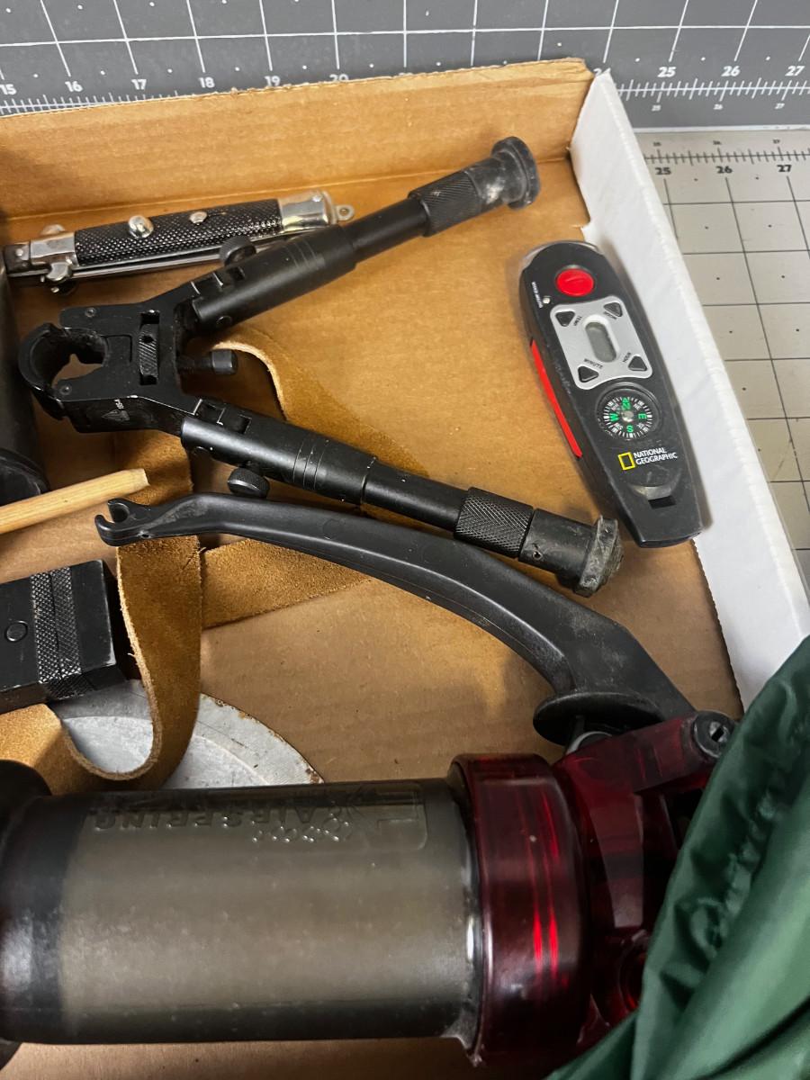 Out Door Gear, Misc.: Reel, Bandana, Hatchet, Water Purifier