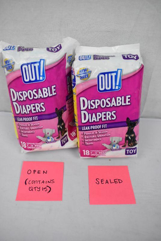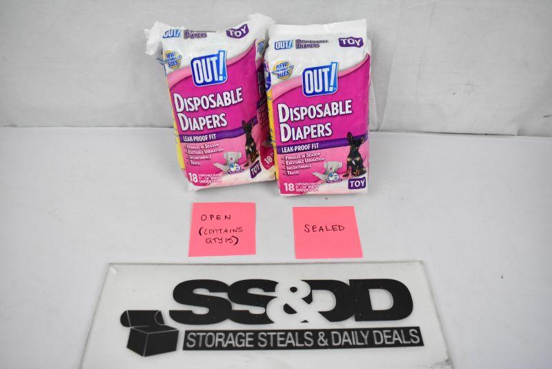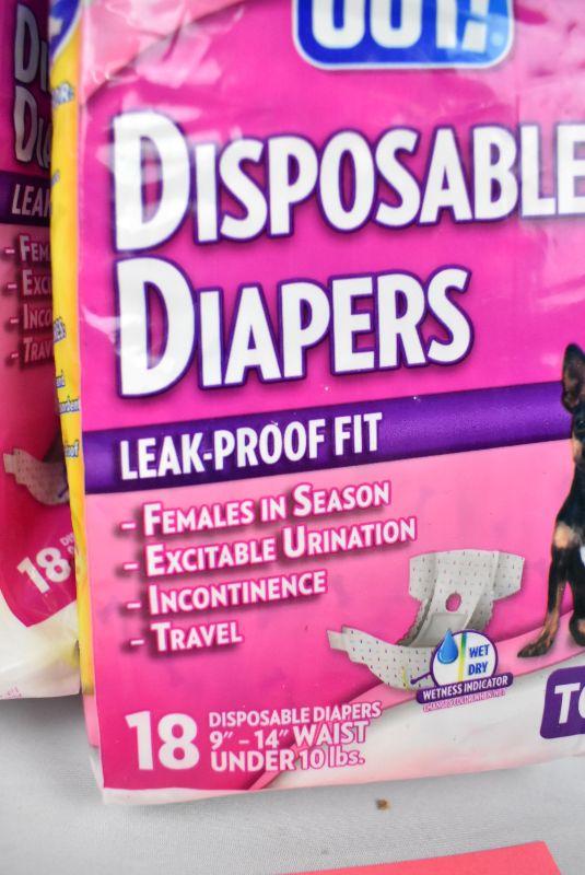OUT! Pet Care Disposable Female Dog Diapers | Absorbent with Leak Proof Fit | TOY, 18 ct (plus open package 15 count) - New