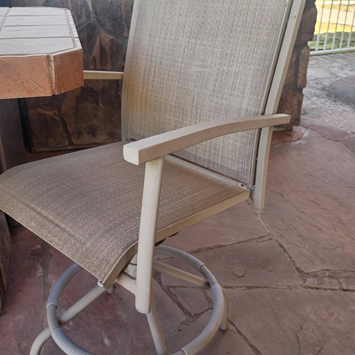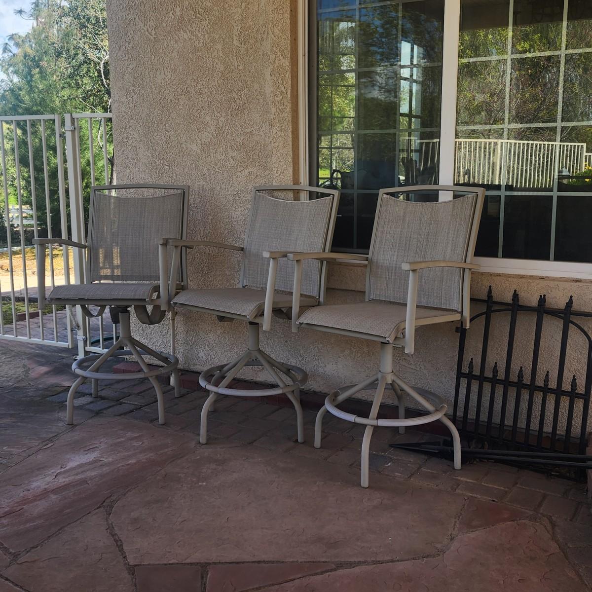 FOUR STOOLS, BEEN OUTDOORS, SOME WEAR