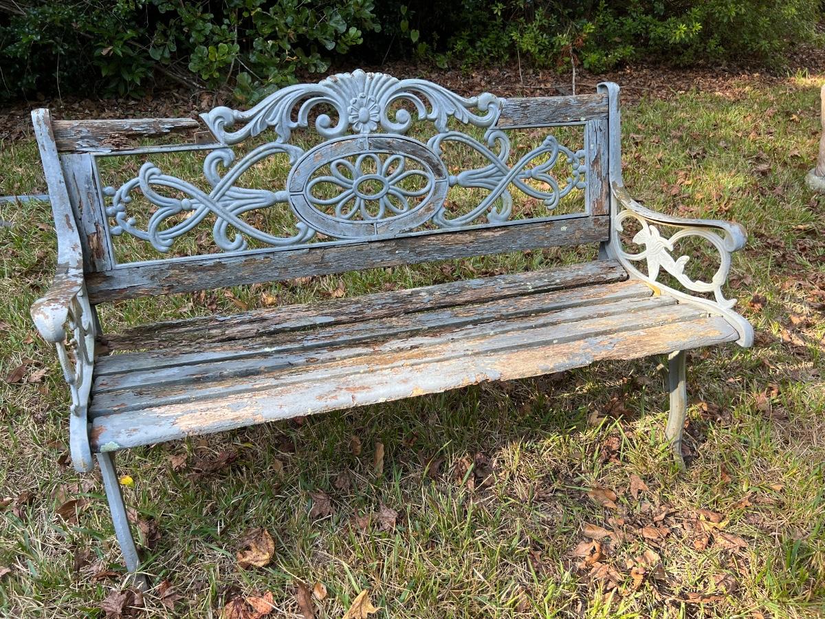 Outdoor Bench project piece. Wood will need to be replaced. See pictures for reference.