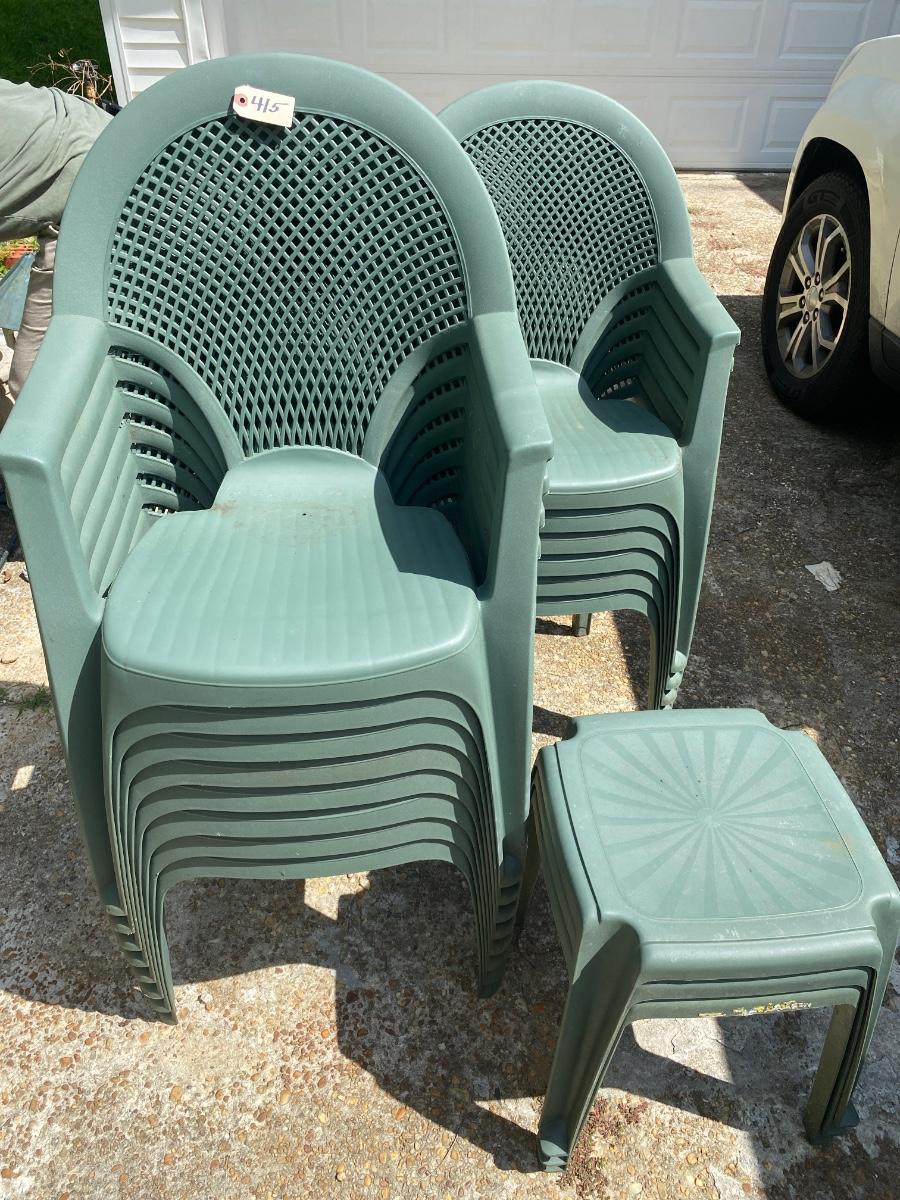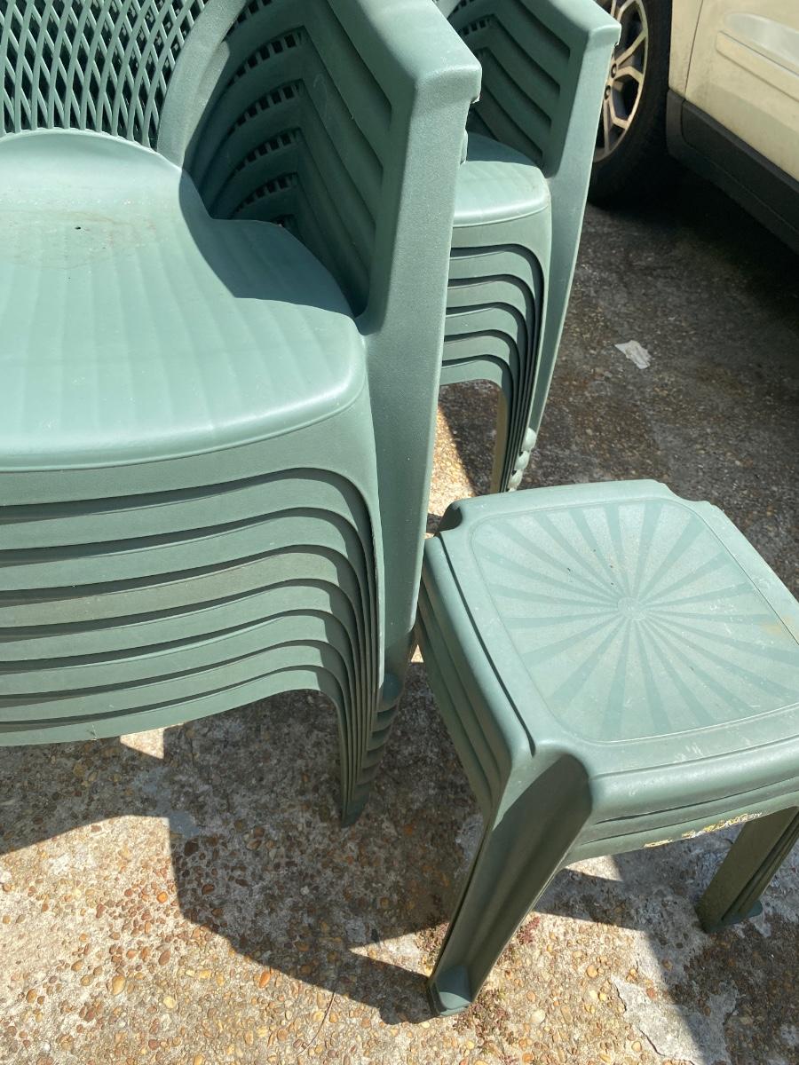 Green Plastic Outdoor Chairs and Tables As Pictured