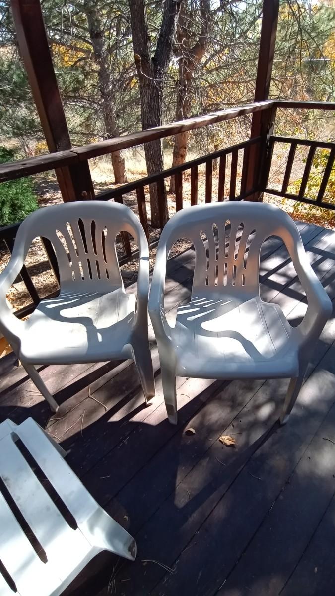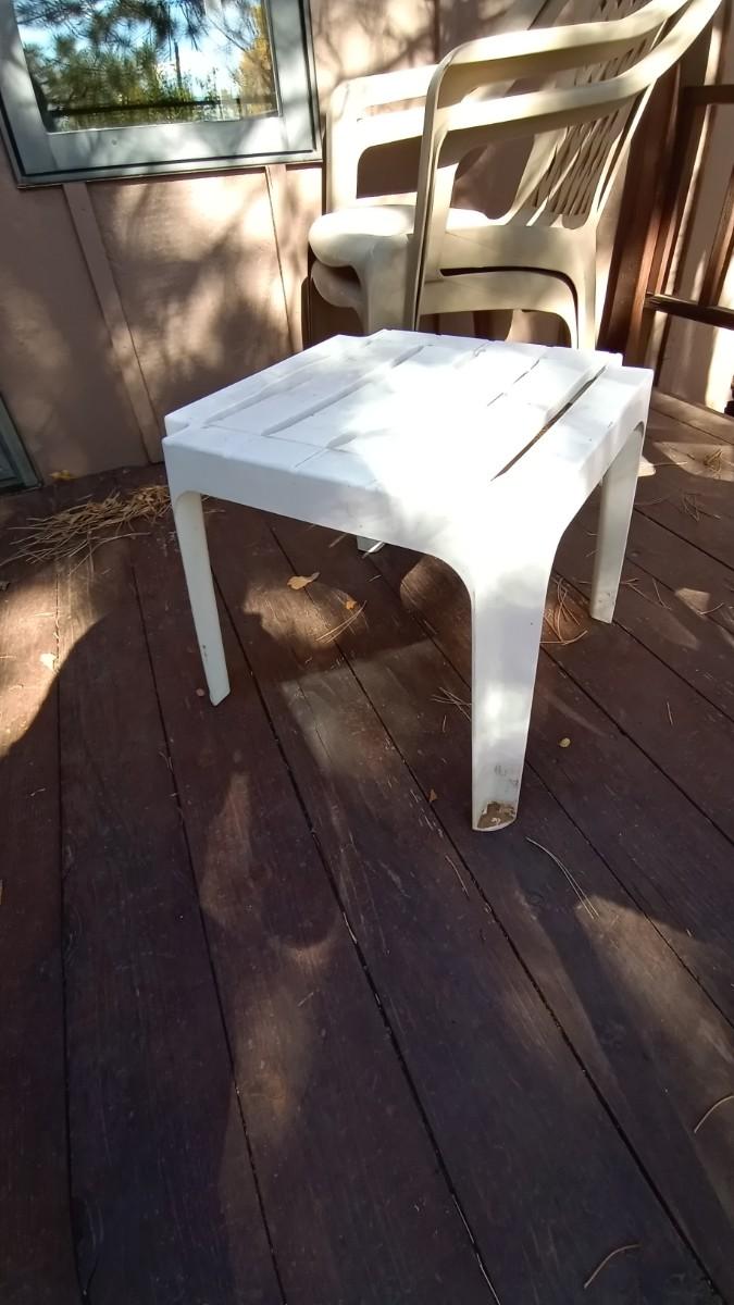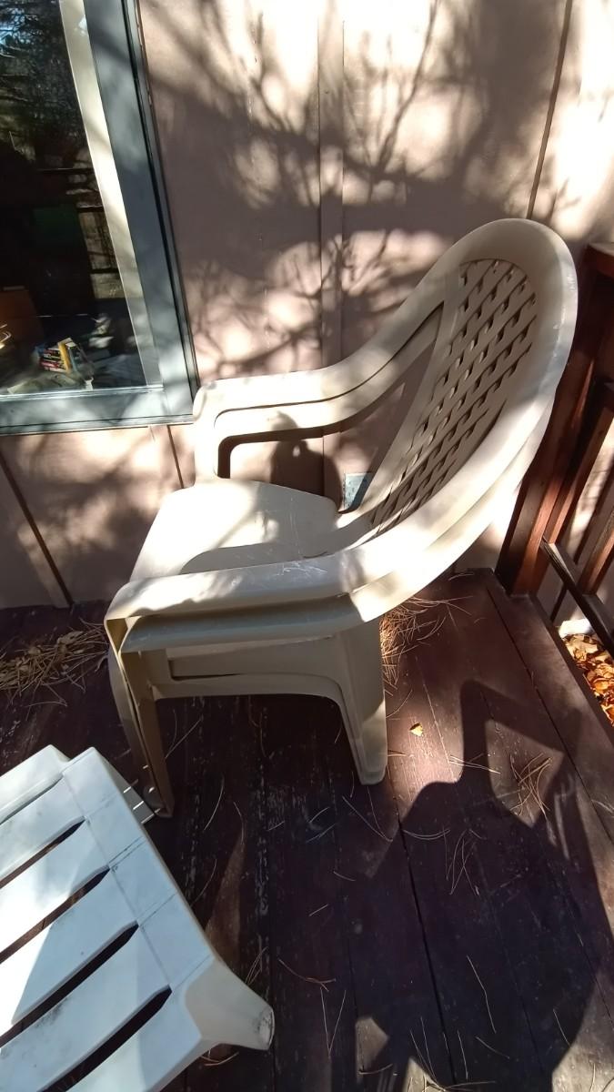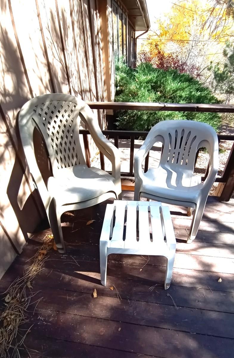 4 OUTDOOR CHAIRS AND SMALL TABLE