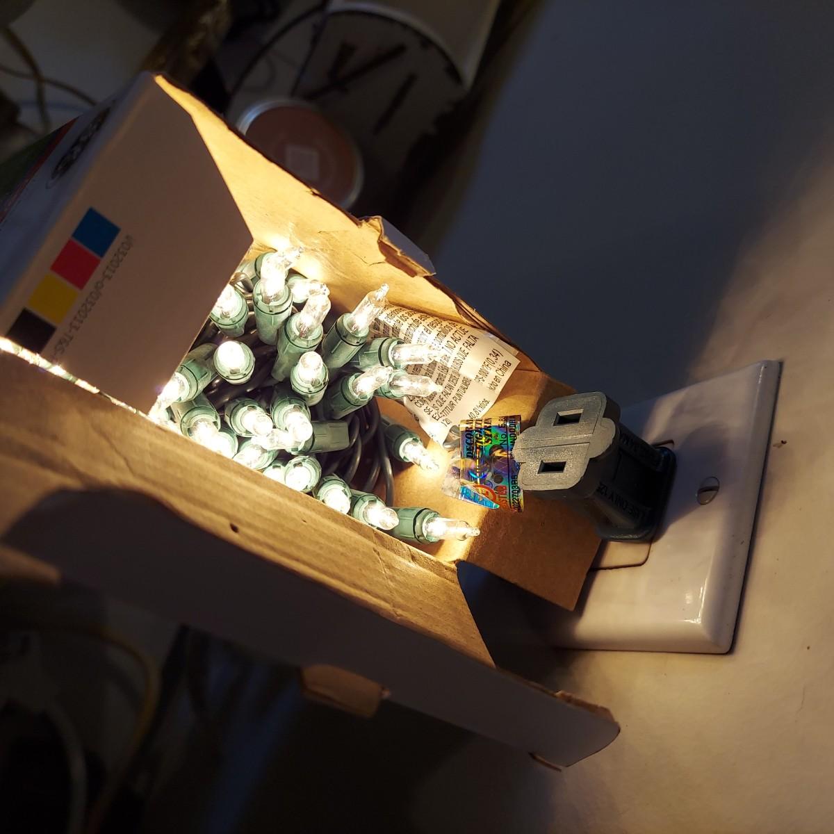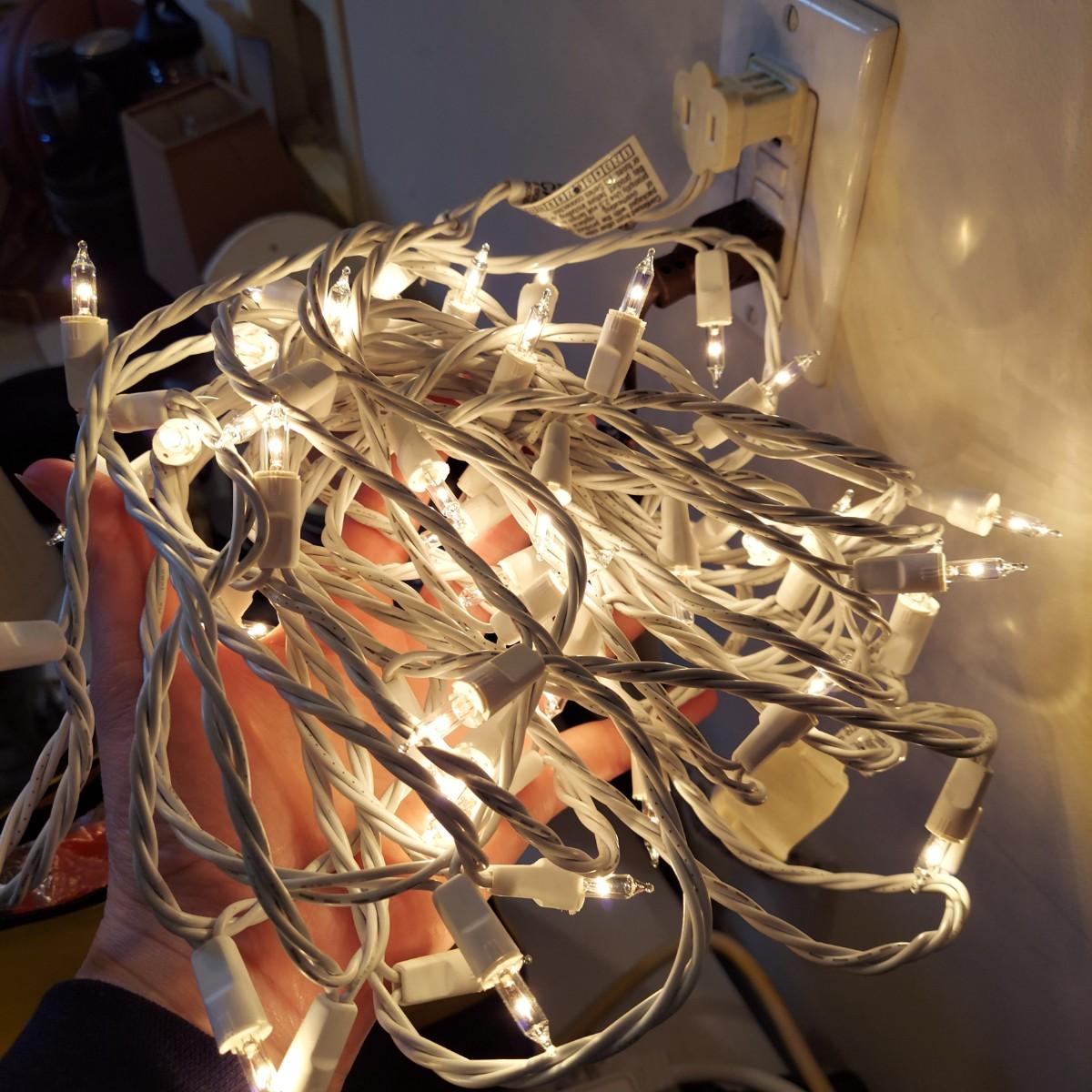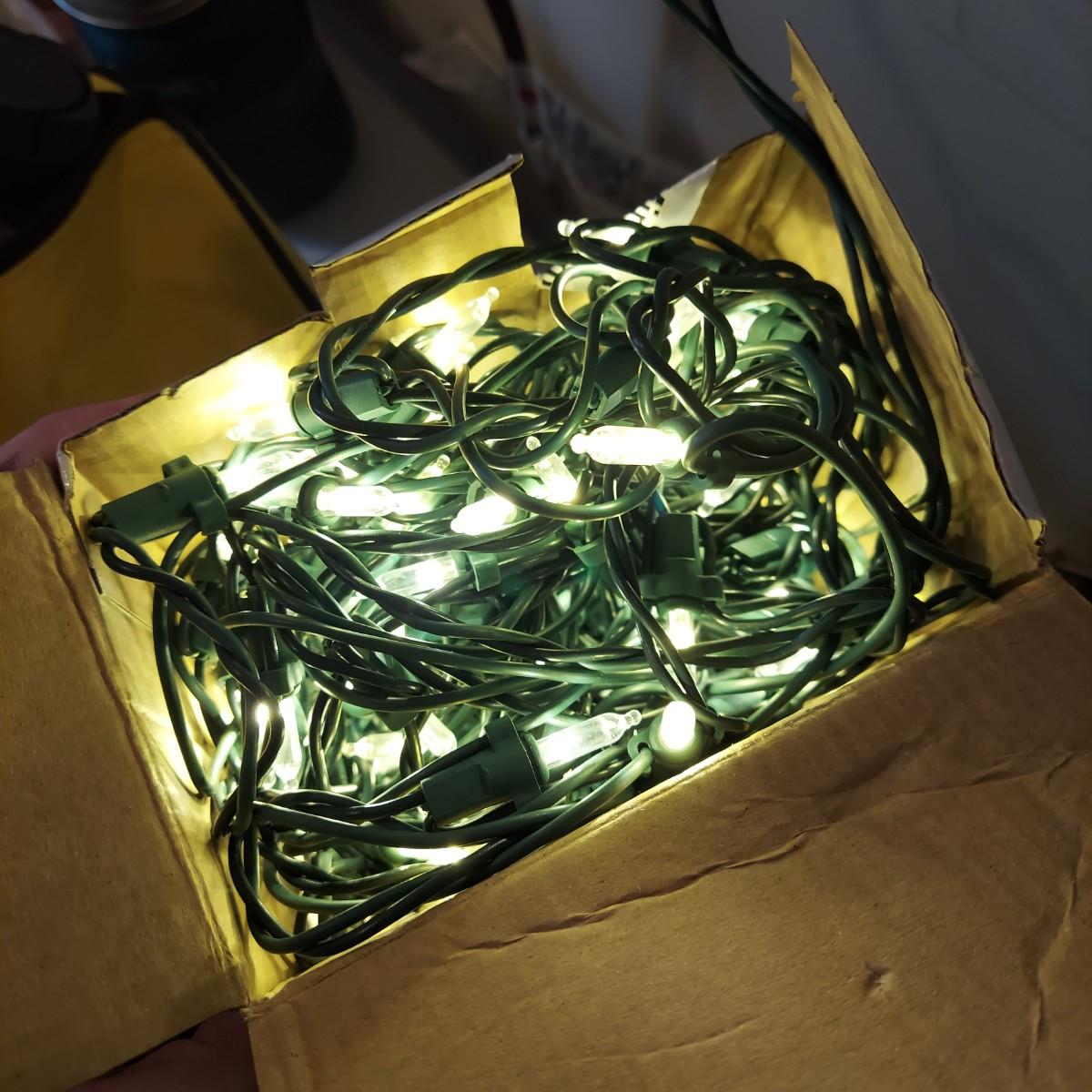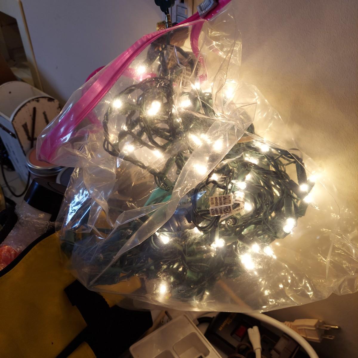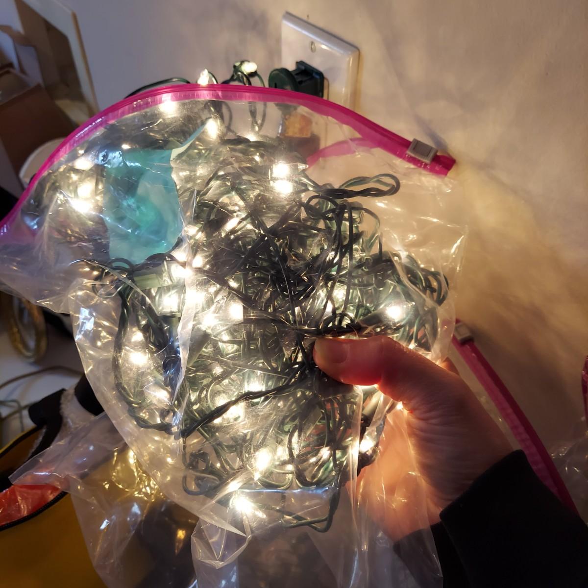 Lot includes more than two large bins of outdoor Christmas decor and lights. There are two wreaths, several garland pieces and many floral picks as well as Christmas lights. All are faux florals/plants. Please see photos for details. Local Pickup Only