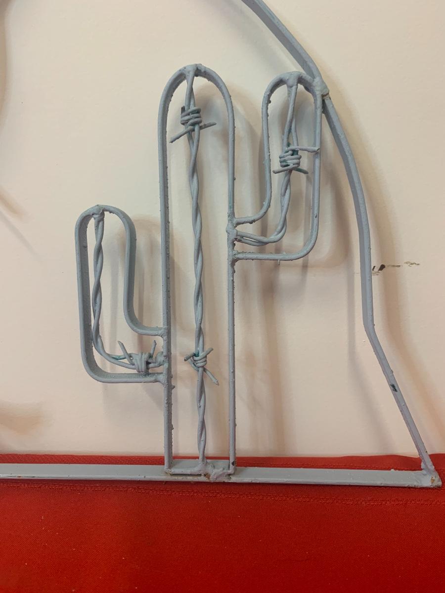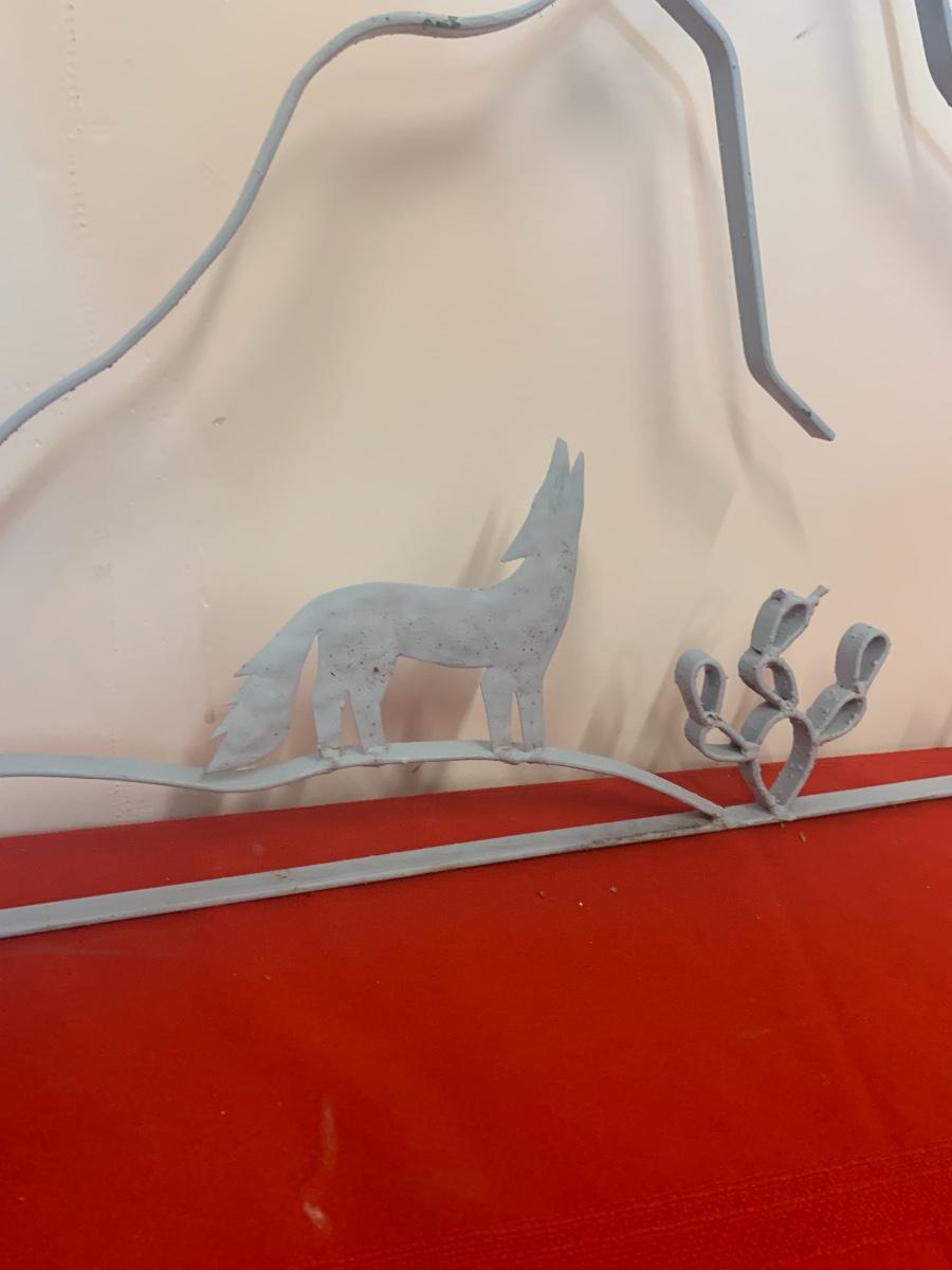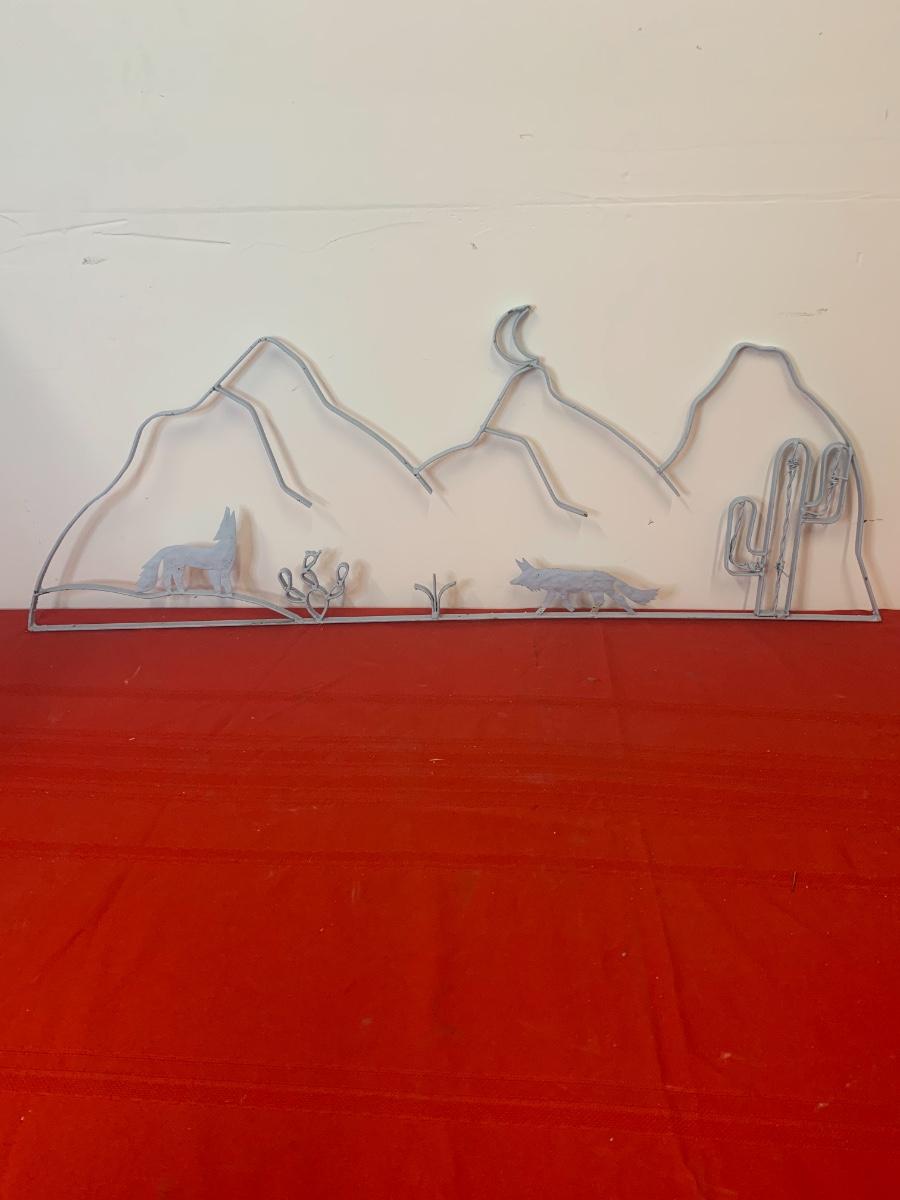 One outdoor metal decor piece depicting a tucson landscape. (41.5 inches long, 14.5 “ tall at its peak)