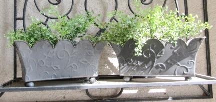 2 FAUX PLANTS IN POTS (IRON WALL HANGING IN BACKGROUND IS NOT INCLUDED)