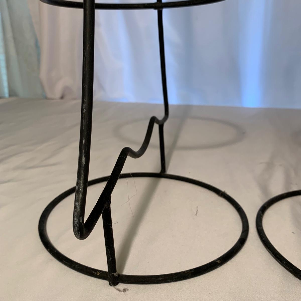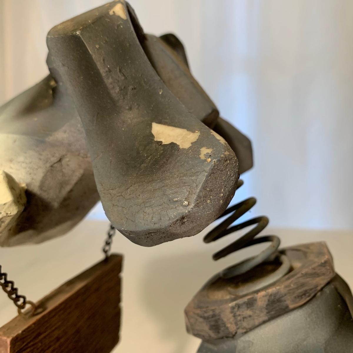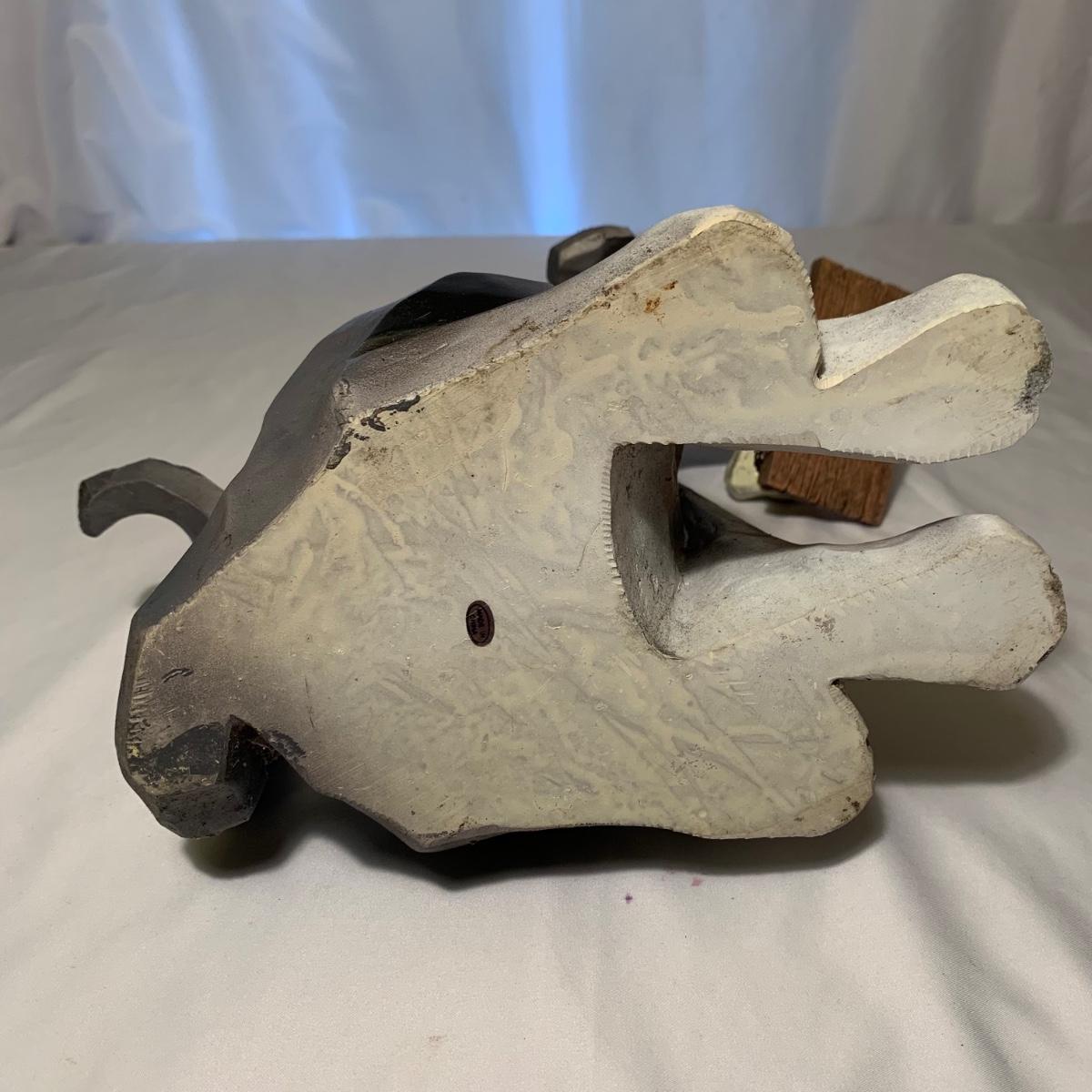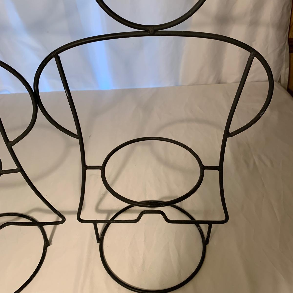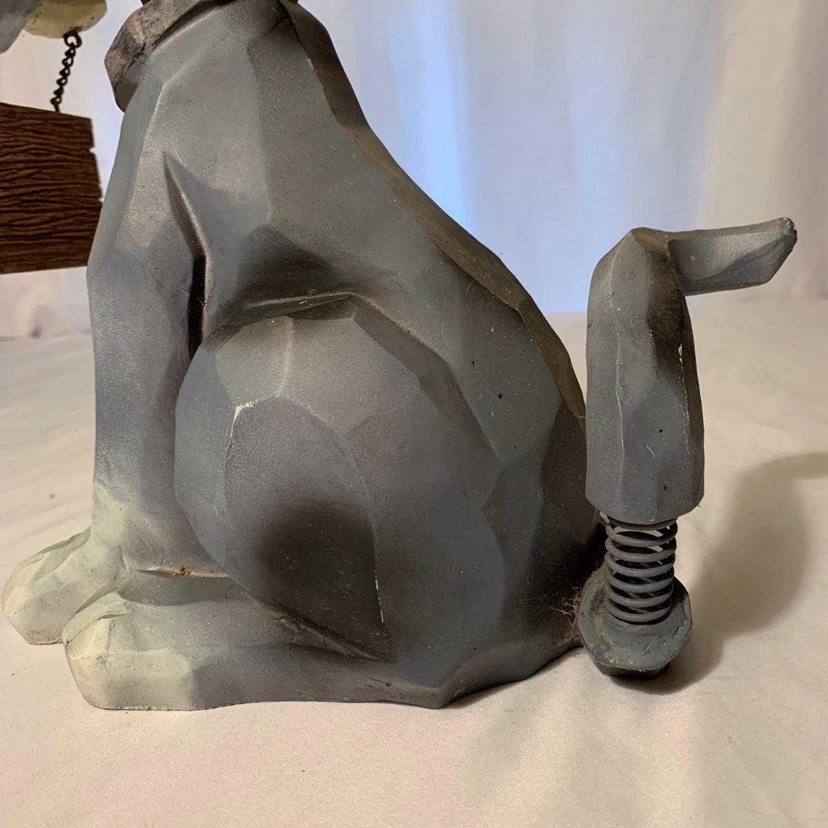 Three items of outdoor decor. One is a dog with a springy bobble head and tail, holding a bone and a welcome sign in his mouth. It’s been on a porch and has gathered some dust from being outside. It’s about 12.5” tall. It feels like it is made of resin. Some paint is chipping. The pot holders are a matching pair metal outline of a boy and a girl. They also have a little dust and superficial wear, but are otherwise in very good condition. They measure about 22” tall. Local pickup only.