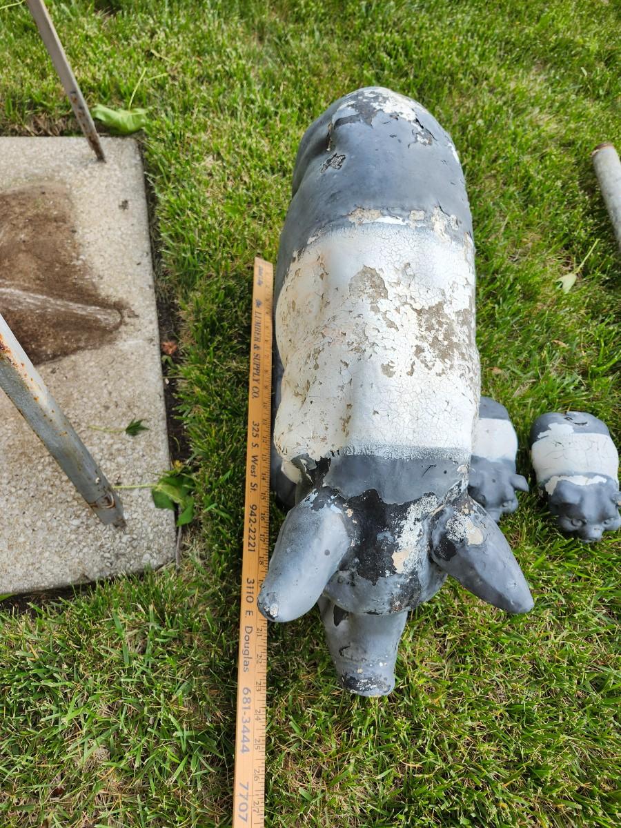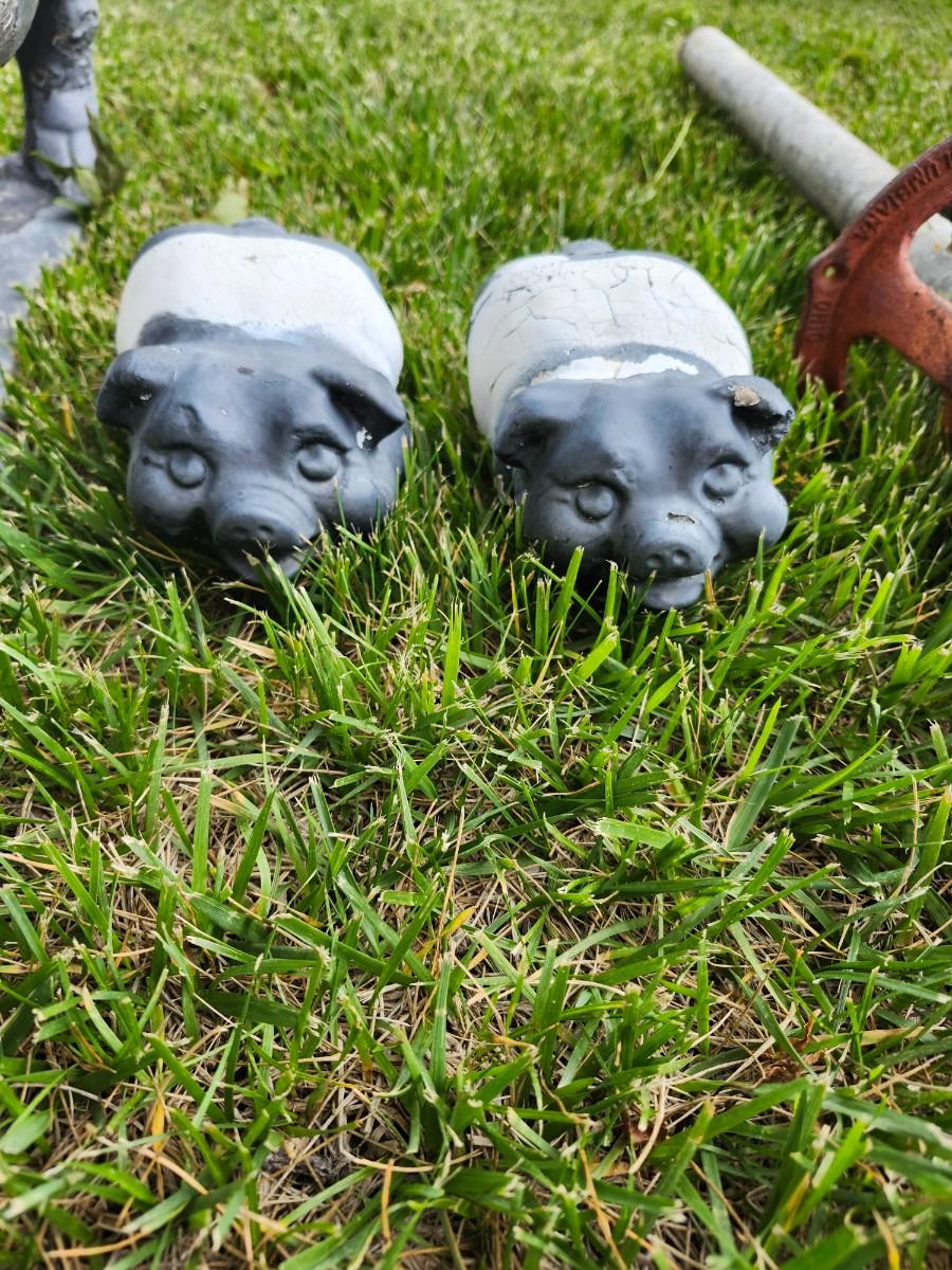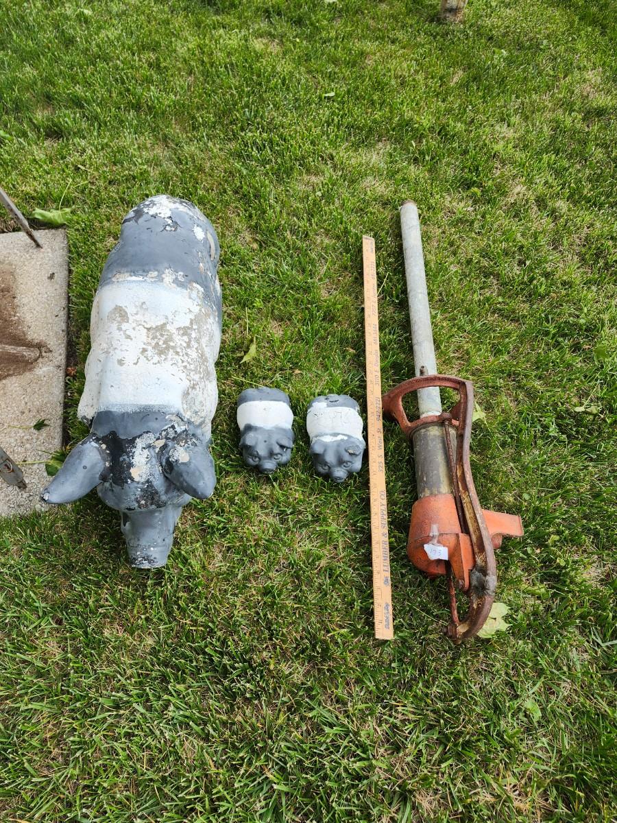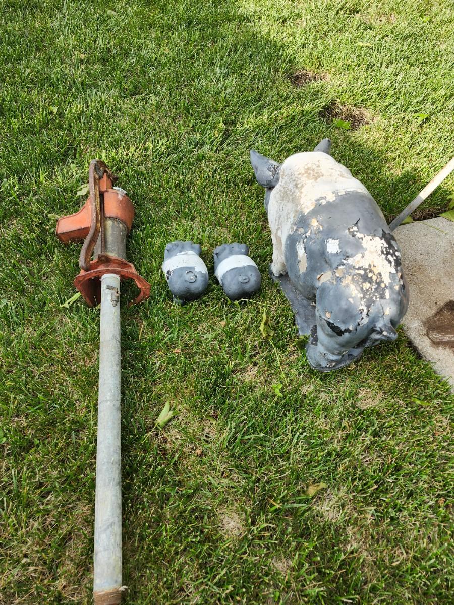 Outdoor decorations cement decorative 3 pigs and vintage water pump