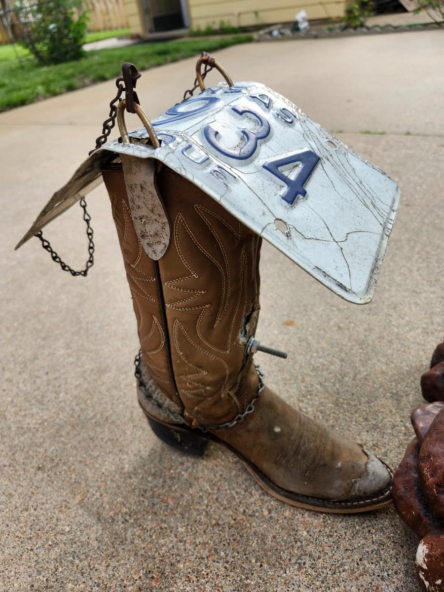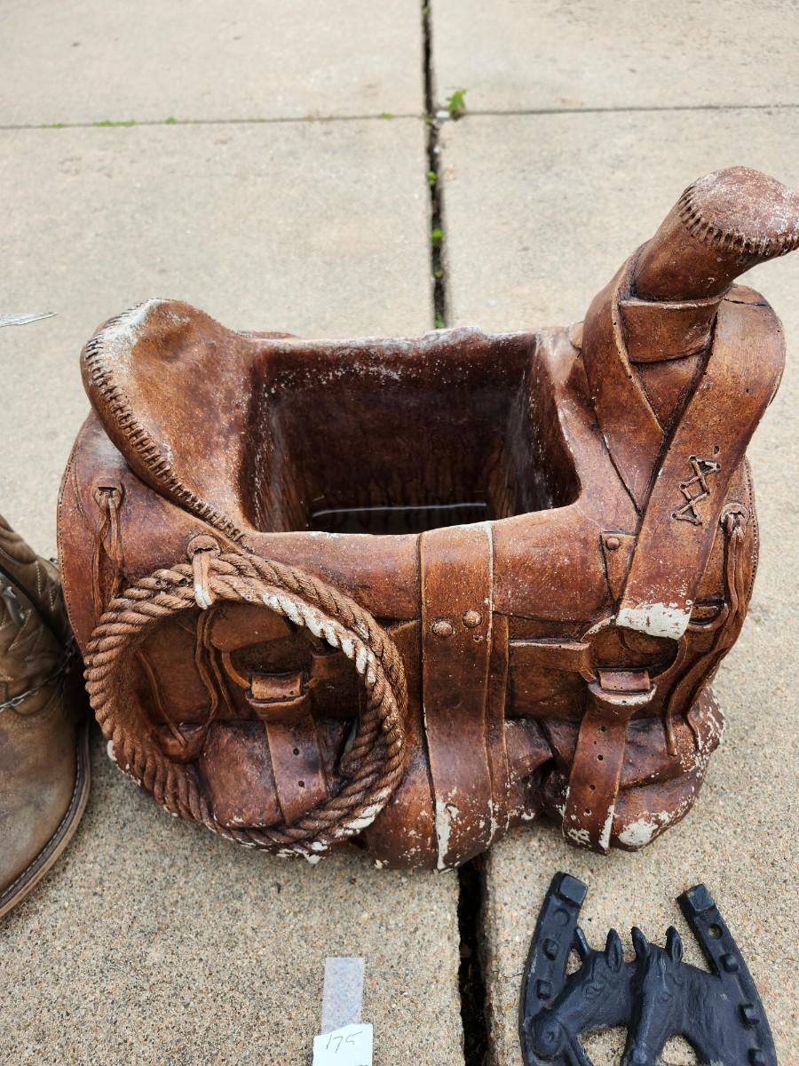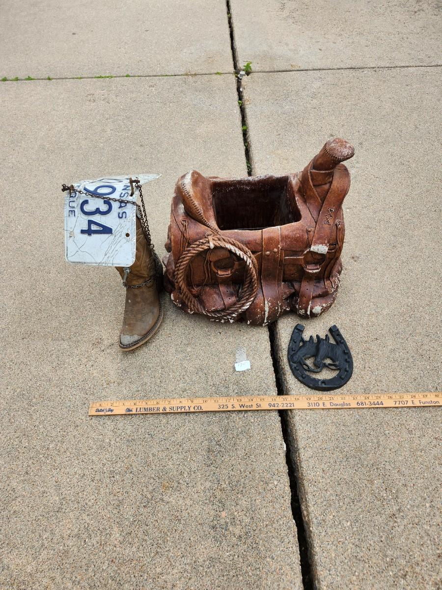 Outdoor decorations Saddle Planter, cowboy boot birdhouse and horseshoe wall hanger