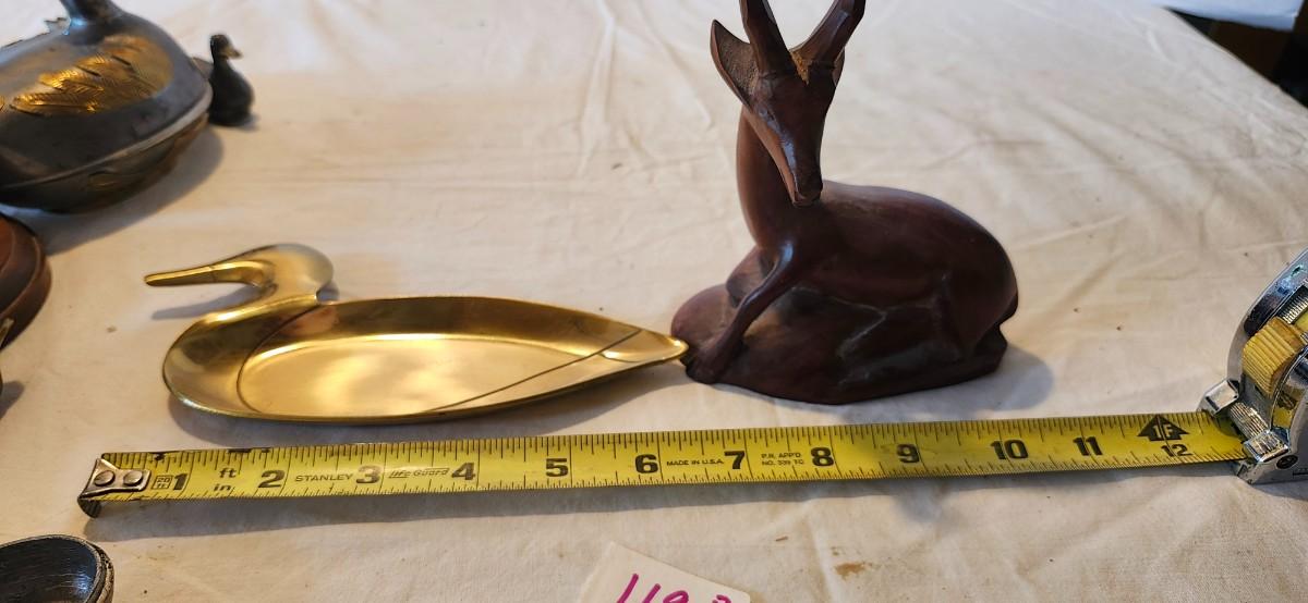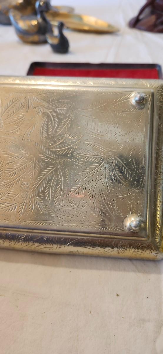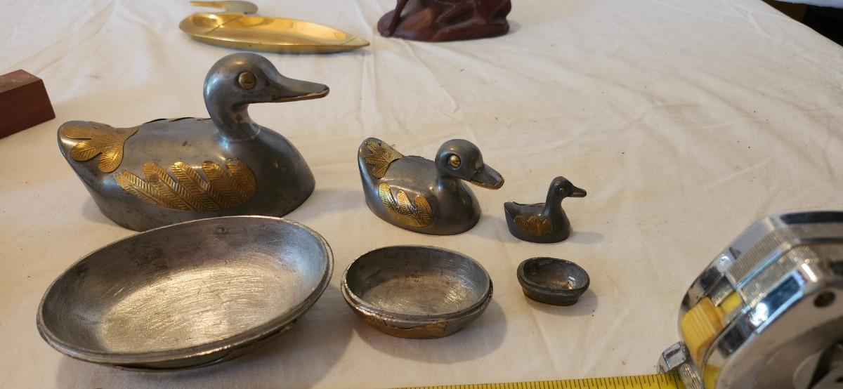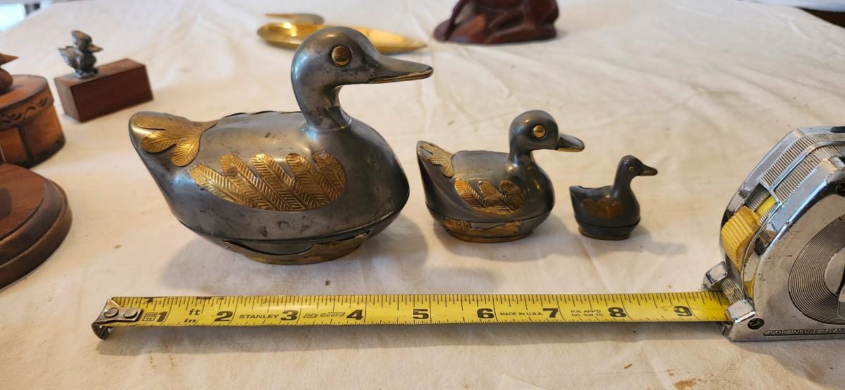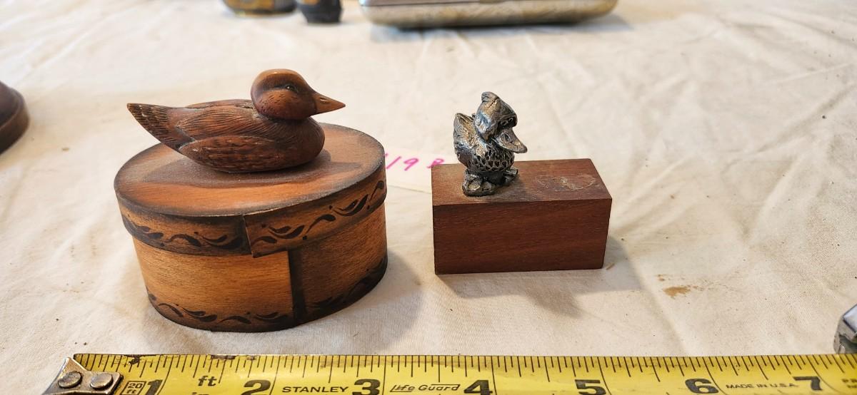 Vintage Pewter Brass Inlay Duck Trinket Box