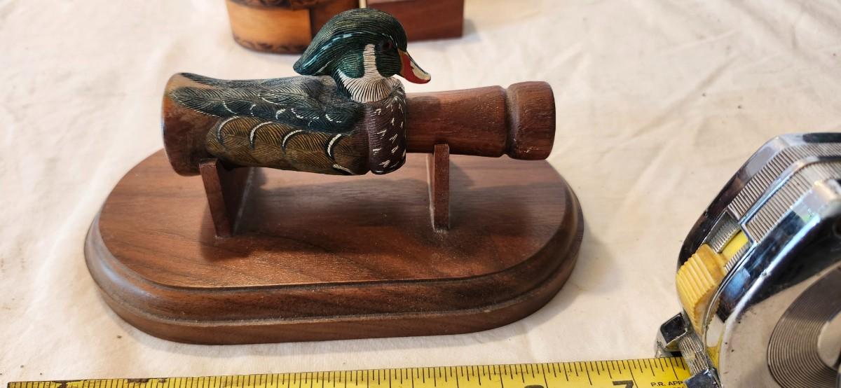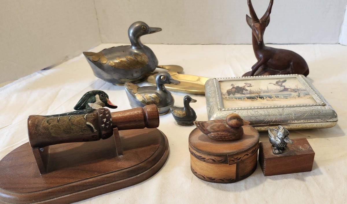 Outdoor Duck home decor lot with Hand Carved Wood Duck call by R wells