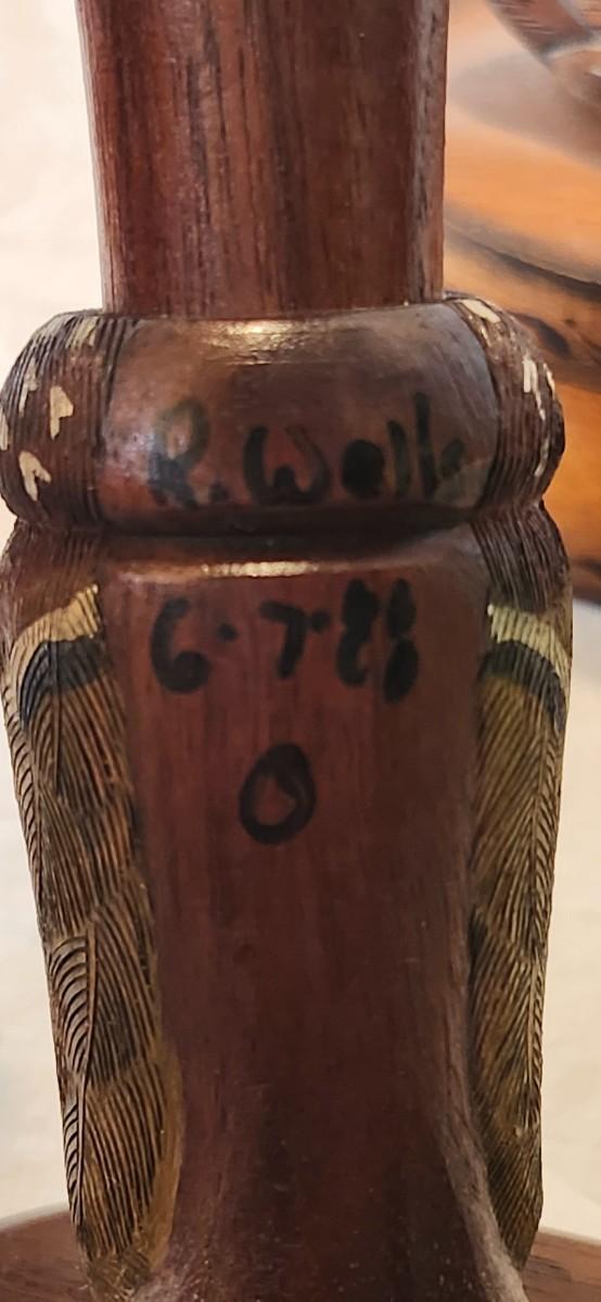 This unique hand carved working duck call is also a work of art. This call can be used for hunting and then proudly displayed by a sportsman as part of a collection.