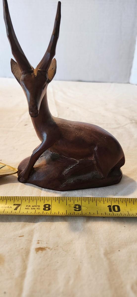 Old IMPALA GAZELLE Hand Carved Solid Wood Art Sculpture Statue Figurine Vintage
