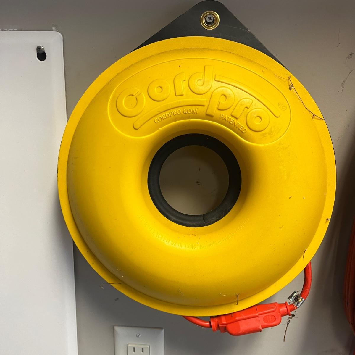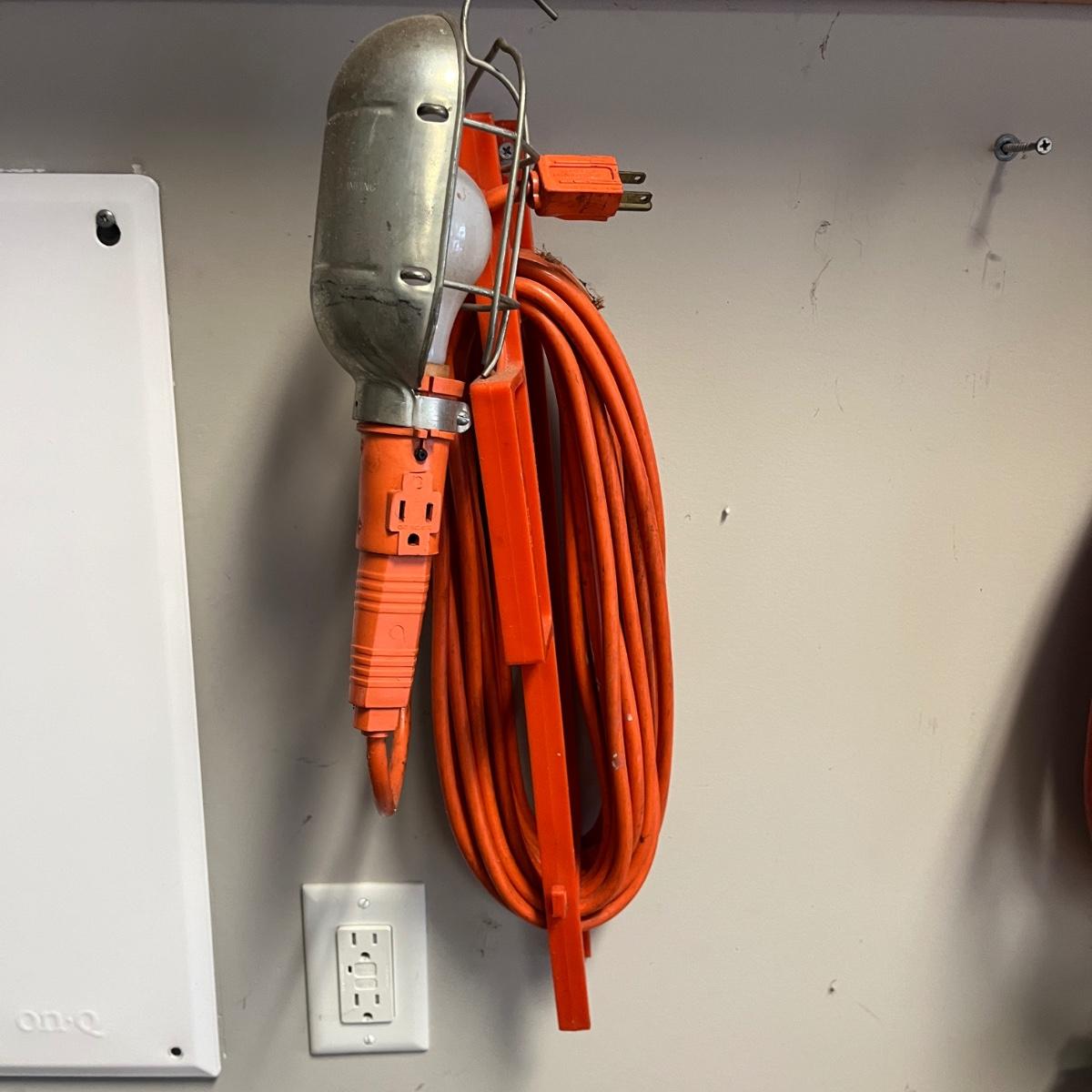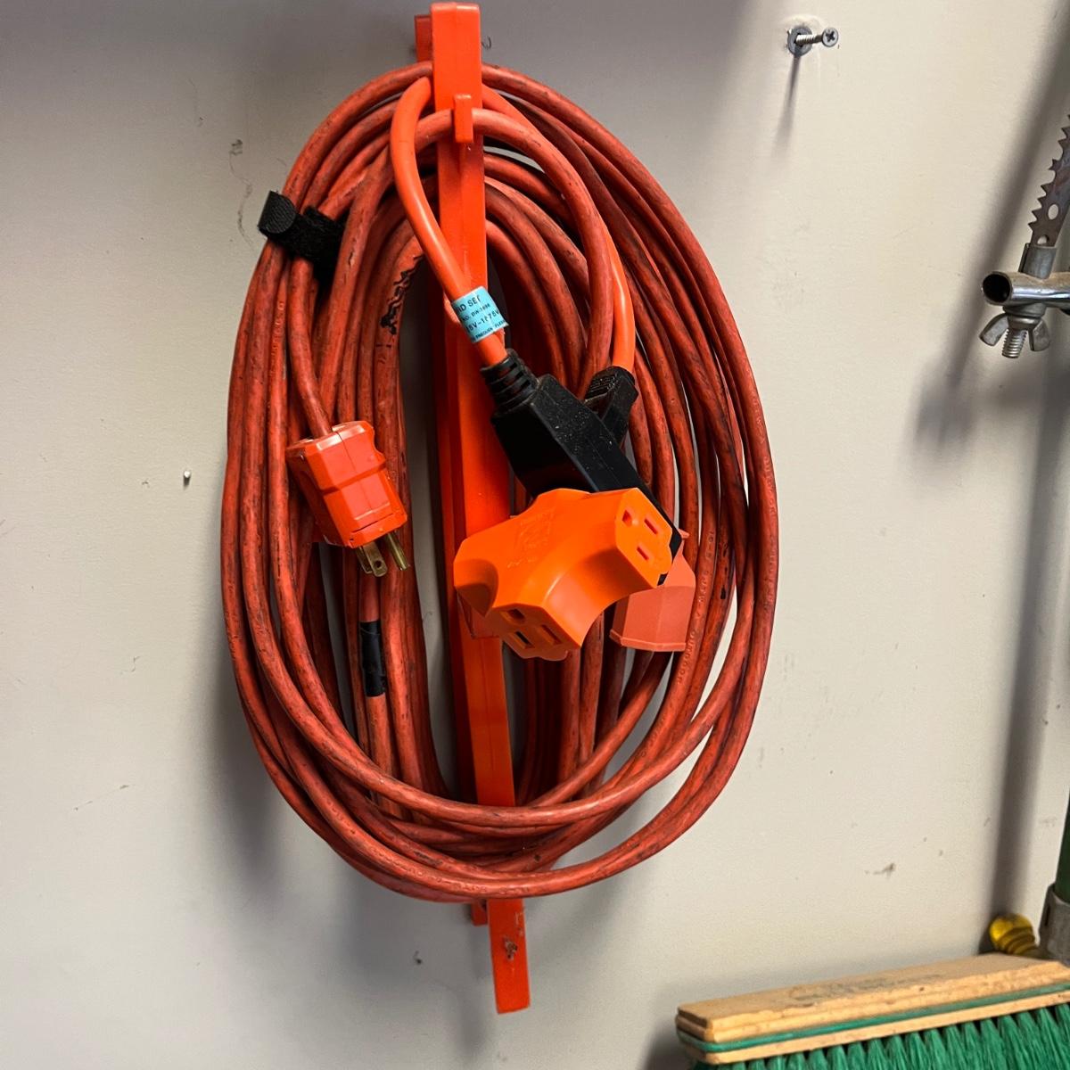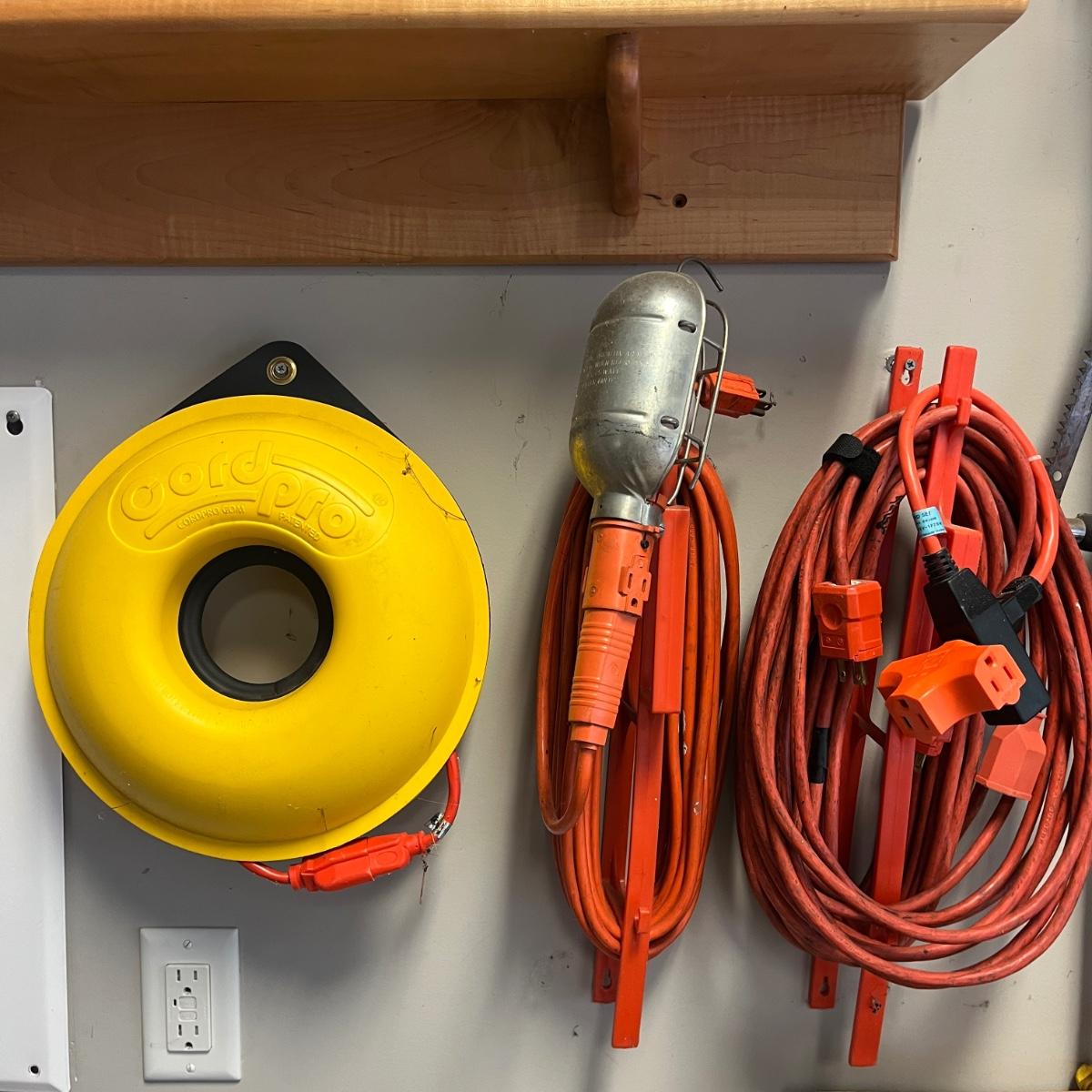Lot includes three outdoor extension cords, outdoor cord with light and a Cord Pro cord holder.