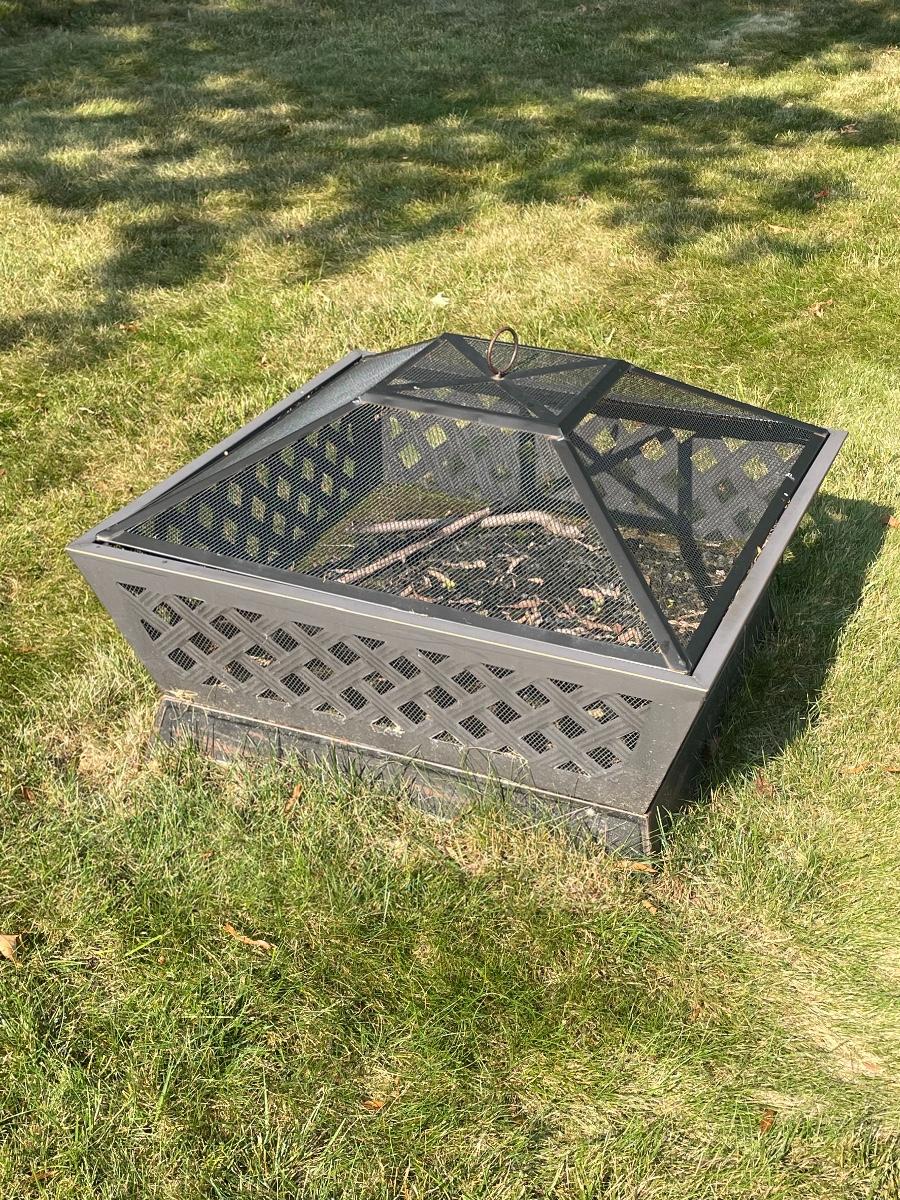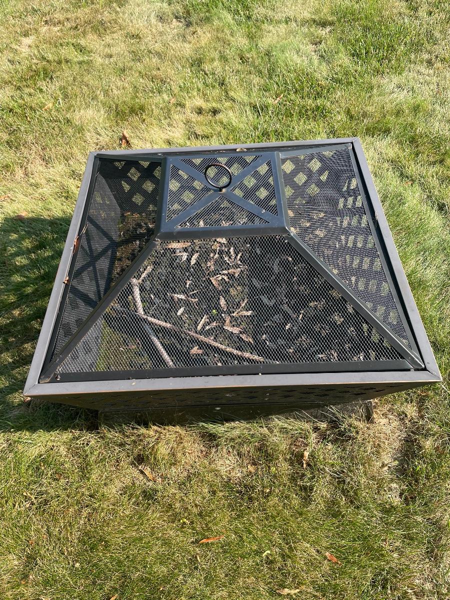 Outdoor Firepit - 3 images 34" square All metal with removable lid/protector