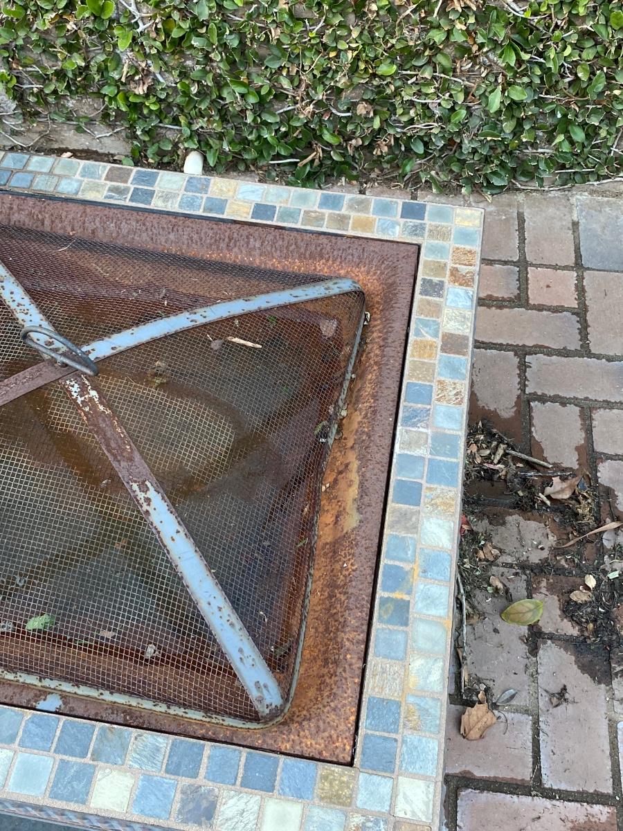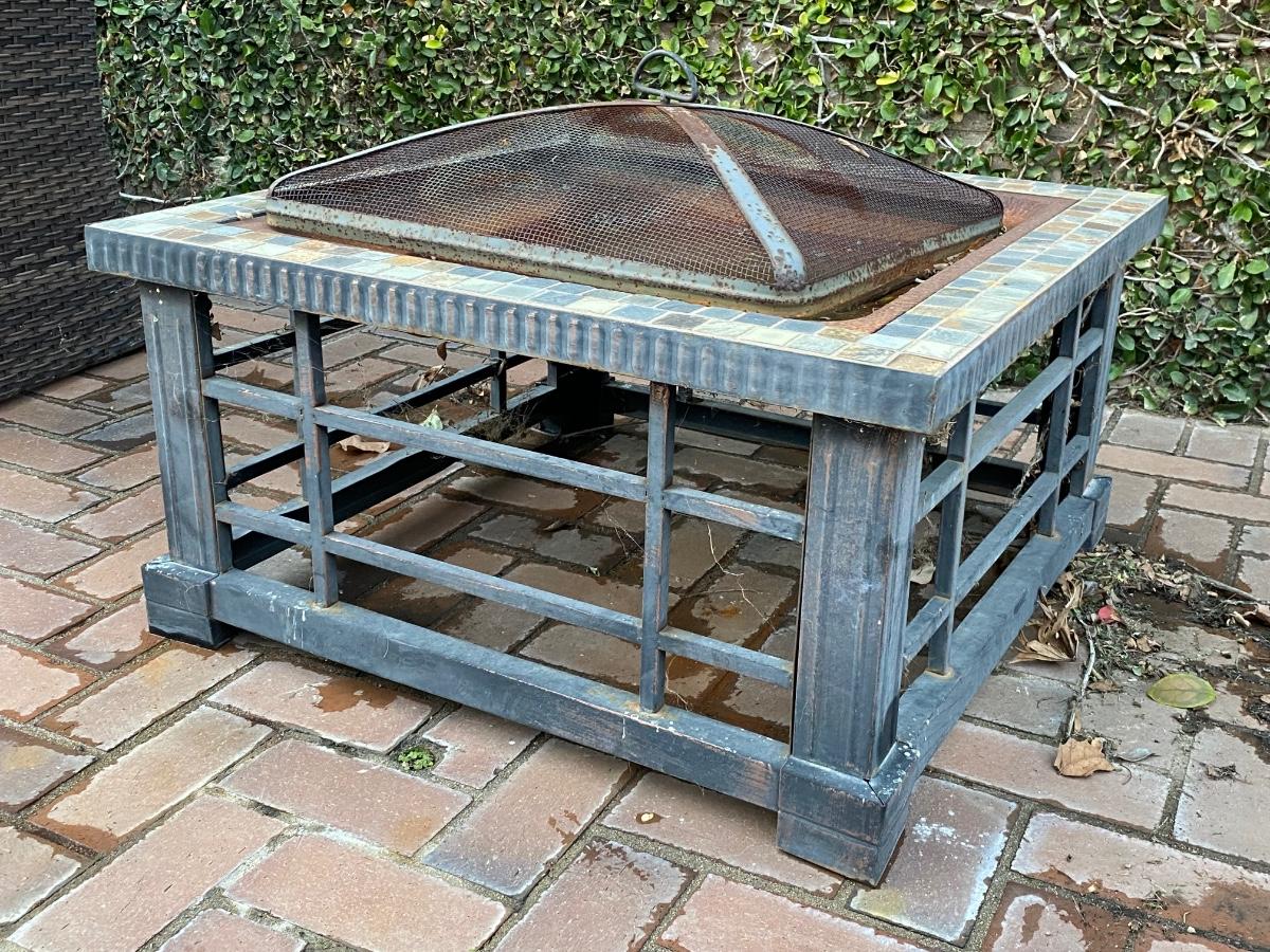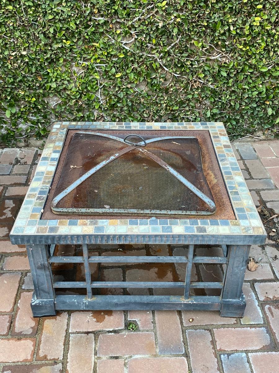 Patio Fire Pit. Mesh top cover. Some signs of rust from being outside but no holes.