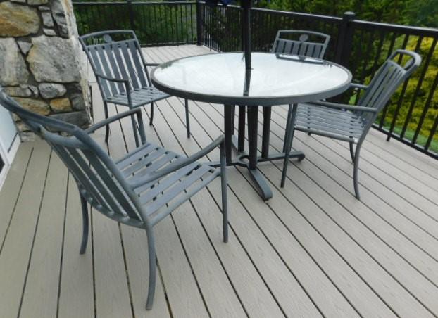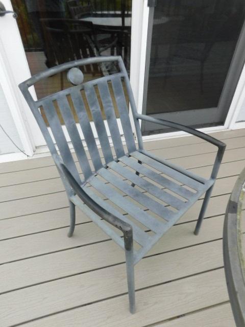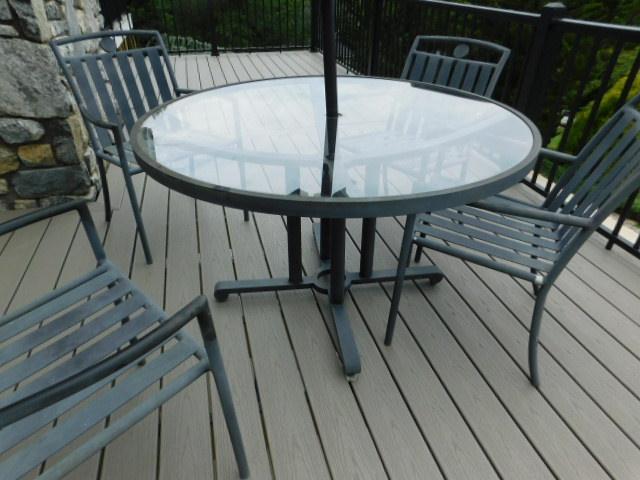Outdoor Glass Top Patio Table with Six Metal Chairs (Umbrella not Included) 48"