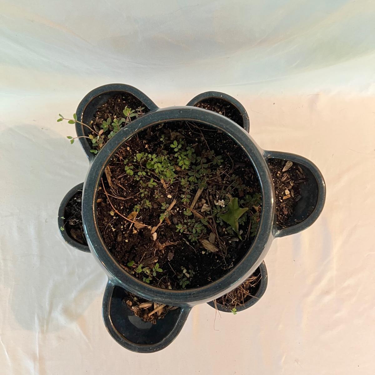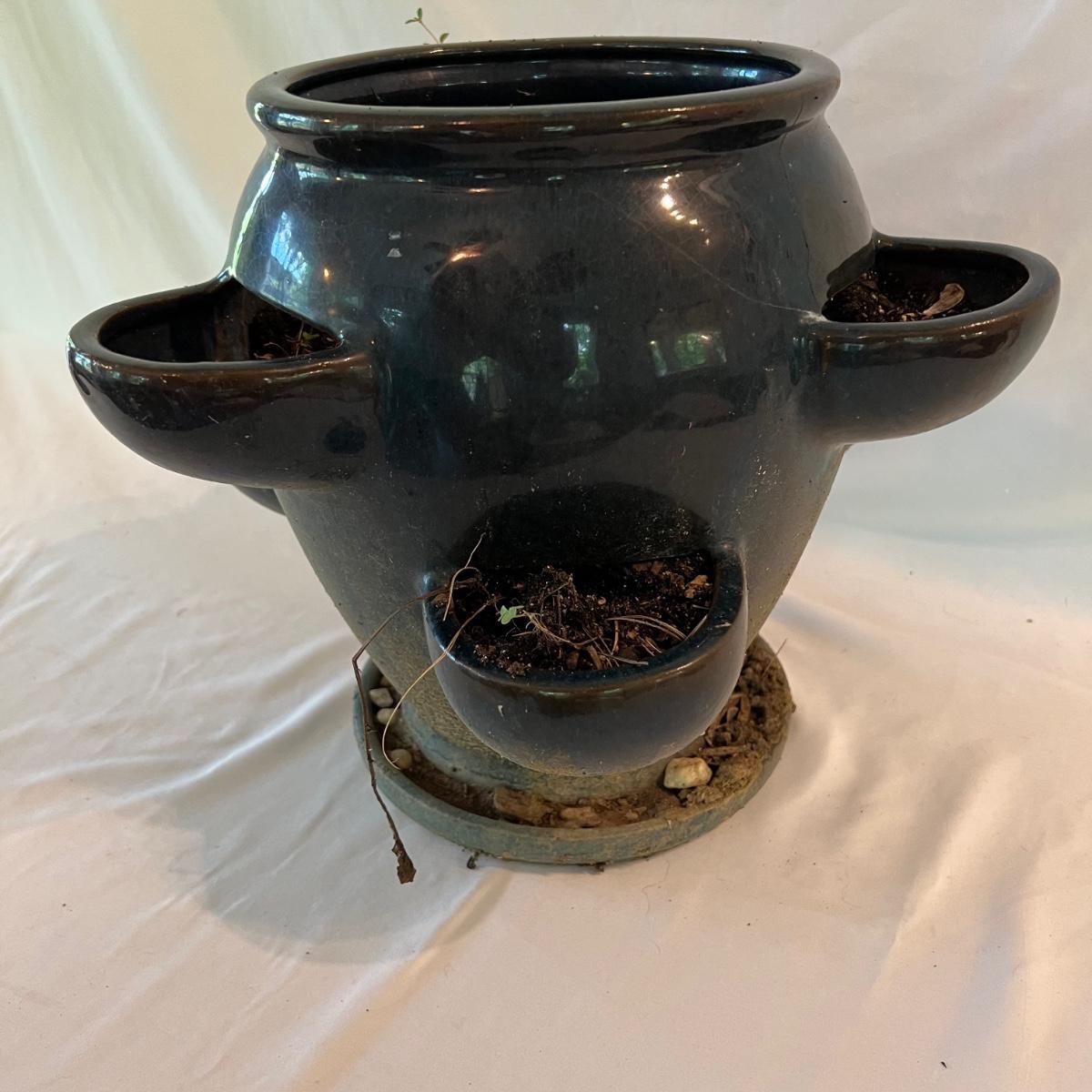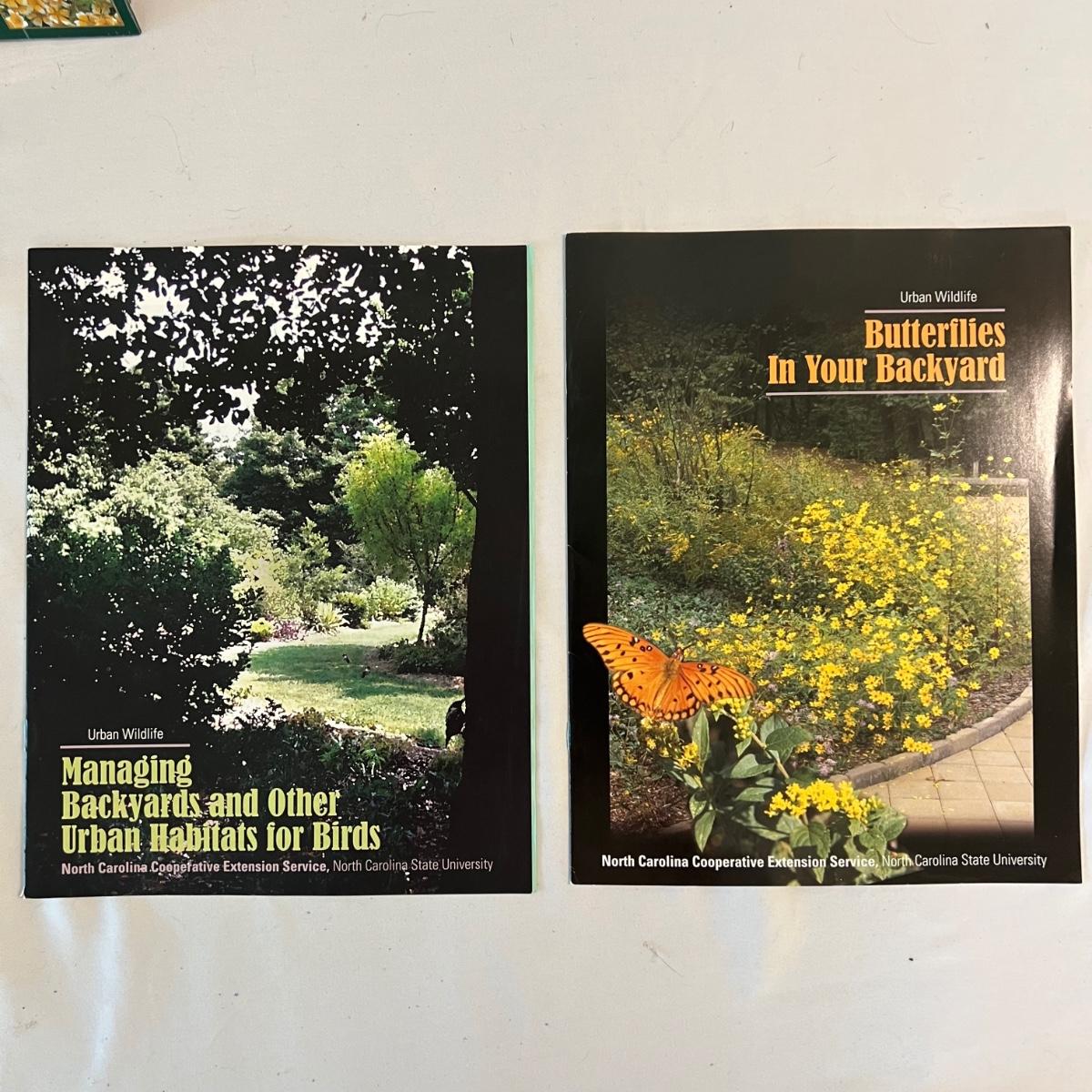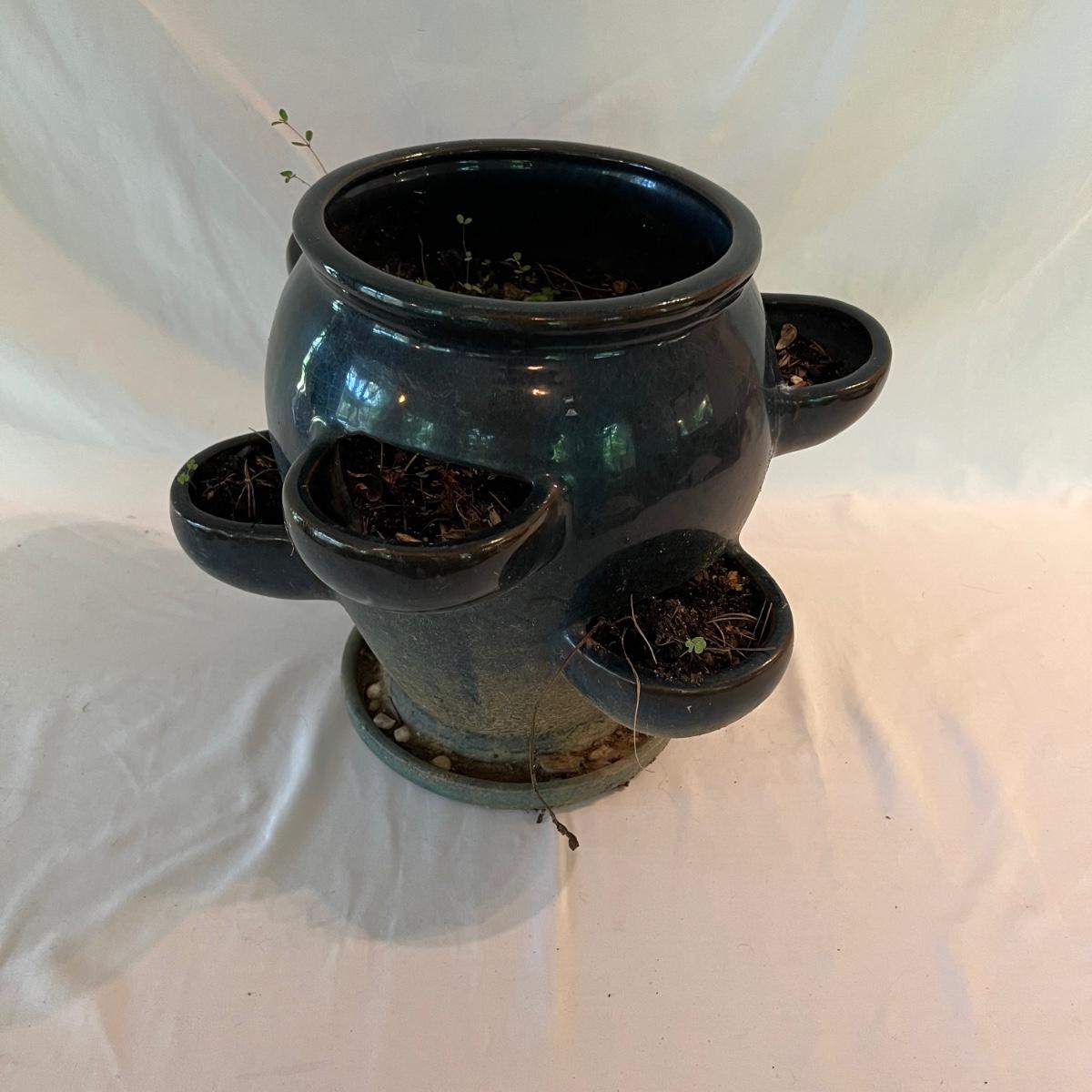 A collection of excellent reference materials for outdoor life. North American, birds, shade plants, growing and propagating wildflowers, the mix and match color guide to annuals and perennials, walks, walls and patio floors and managing backyard and other urban habitat for birds. Blue ceramic planter measures 15”D x 12”H.