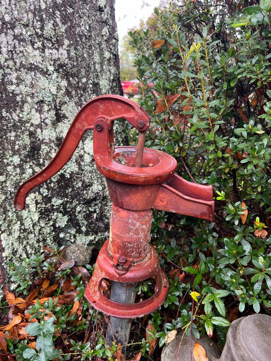 Outdoor Hand Water Pump Garden Decor Measures 17 inches tall.