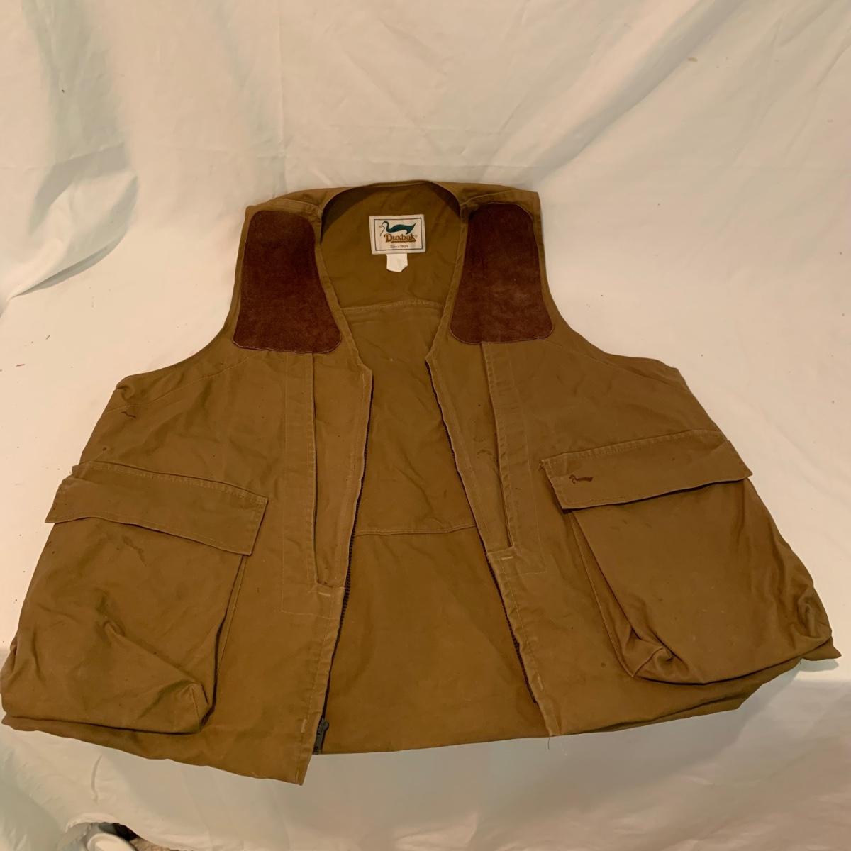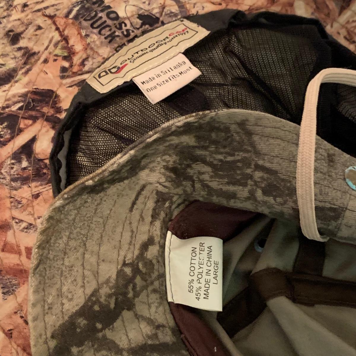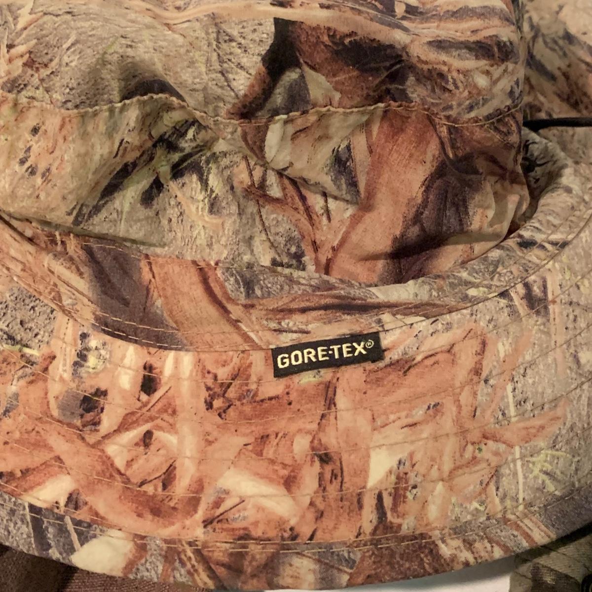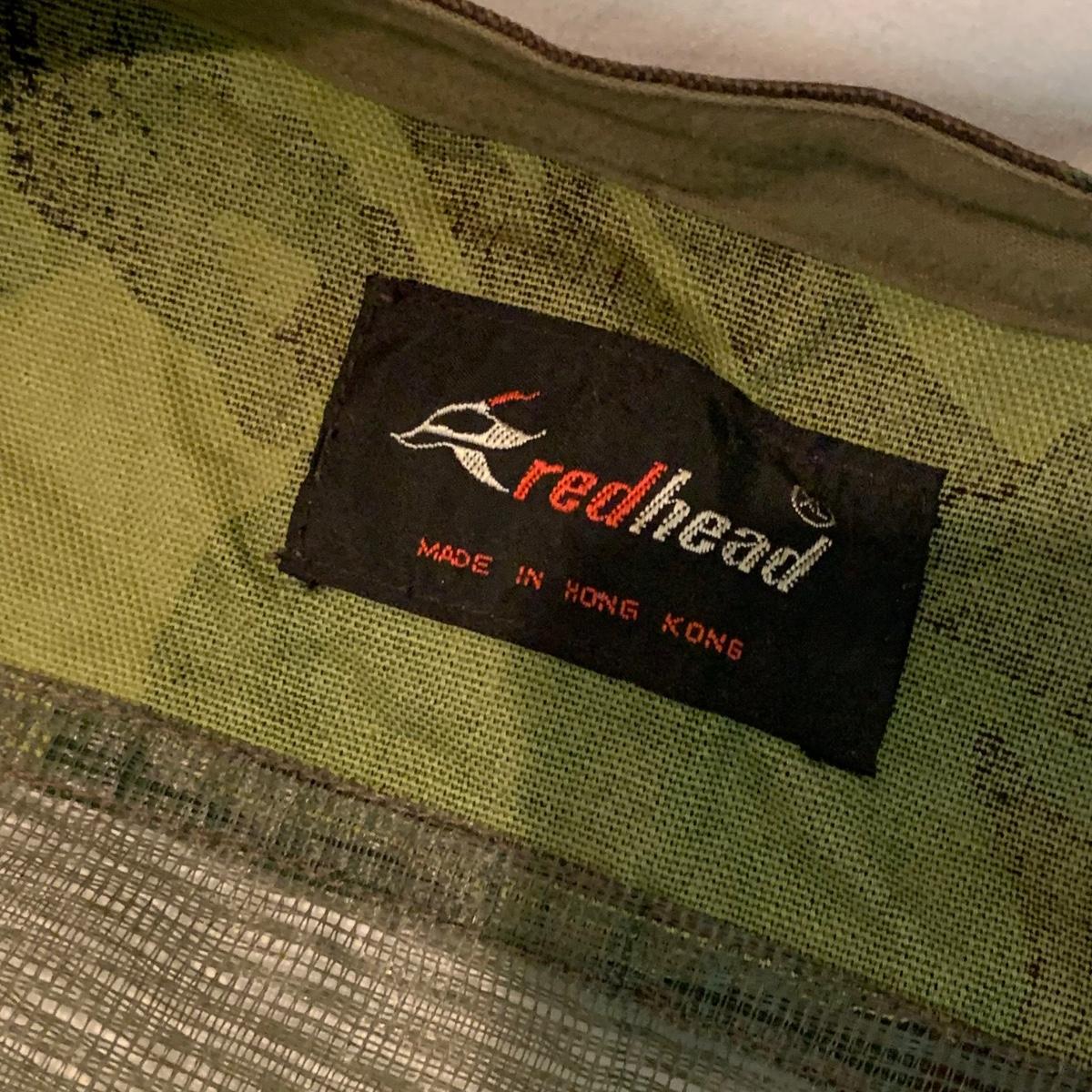 A variety of hats, vests, gloves, and more hunting and fishing gear. There are four brimmed hats, three of which are camouflage. There is a bright Orange hat, vest, and poncho. There is a variety of mosquito blocking clothing including a parka, a pant and jacket set, and more. Four pairs of gloves/mittens and a pair of neoprene socks. There are three vests of different styles, and a few accessories. 22” x 16” x 7”H bin is included.