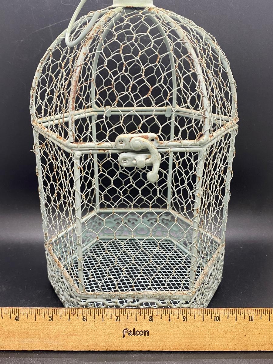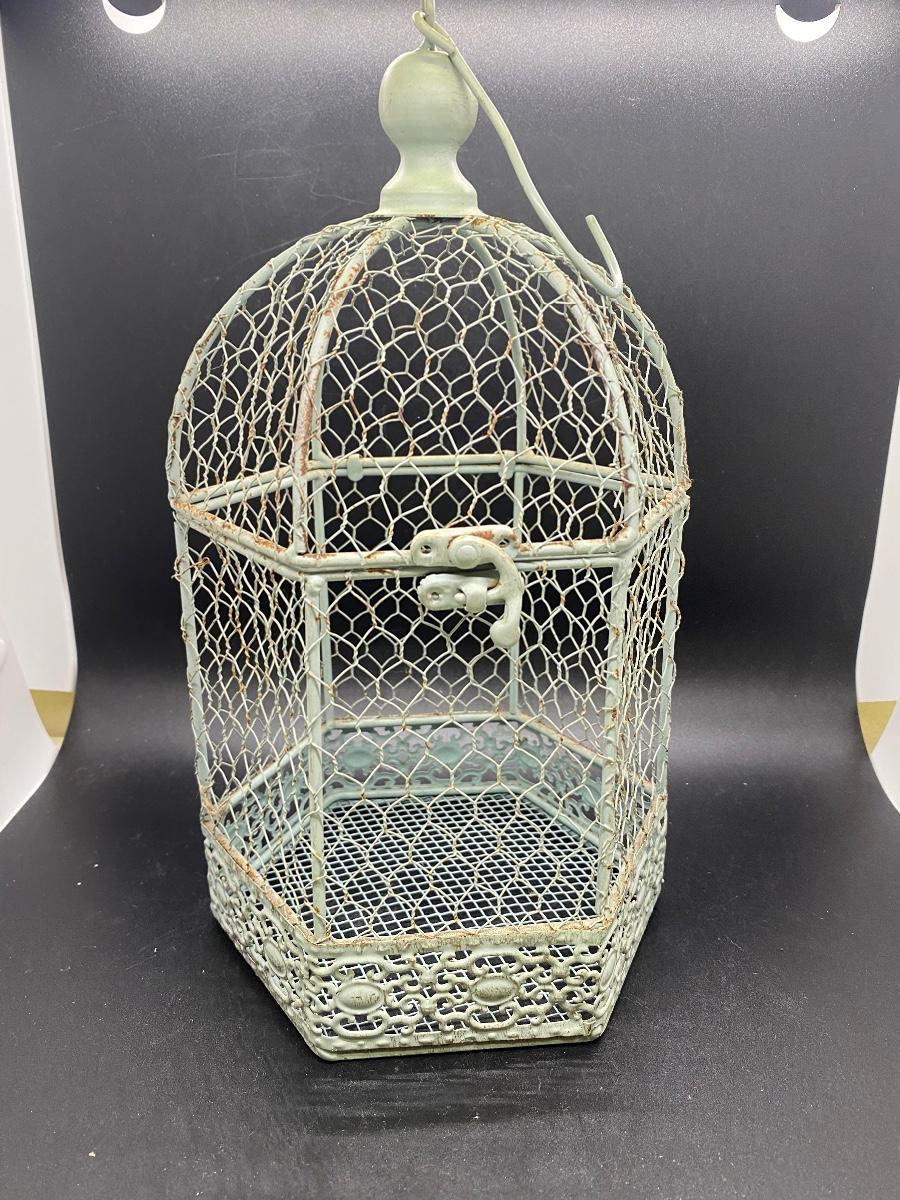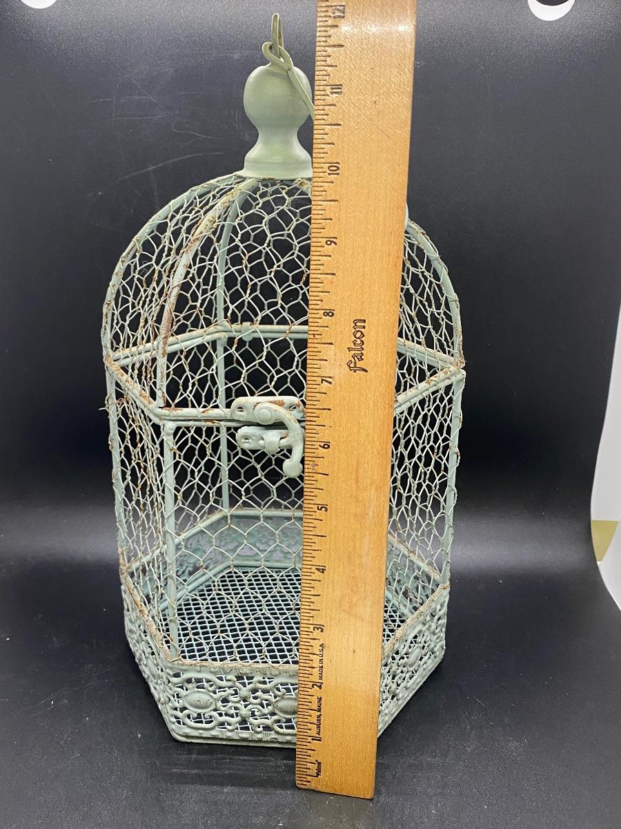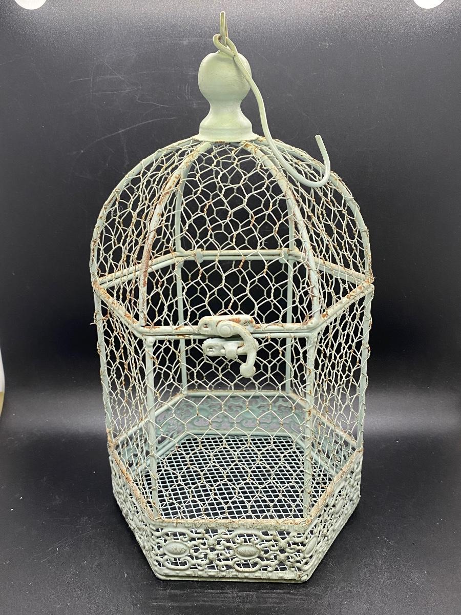 Outdoor Indoor Hangable Birdcage Home Decor, there is no significant damage to the birdcage and is in good condition. Check pictures for more details and for sizing.