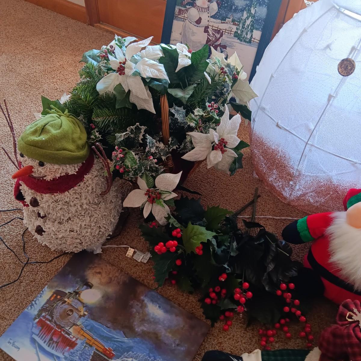 OUTDOOR LIGHTED SNOWMAN AND OTHER DECORATIONS