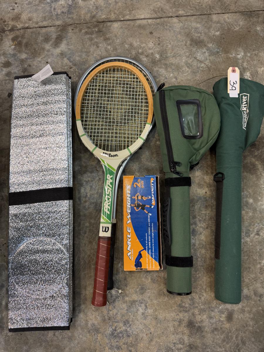 TENNIS, WINDSHEILD BARRIER, ANKLE WEIGHTS, CABELAS FLY FISHING RODS (2)