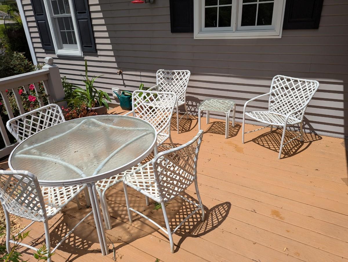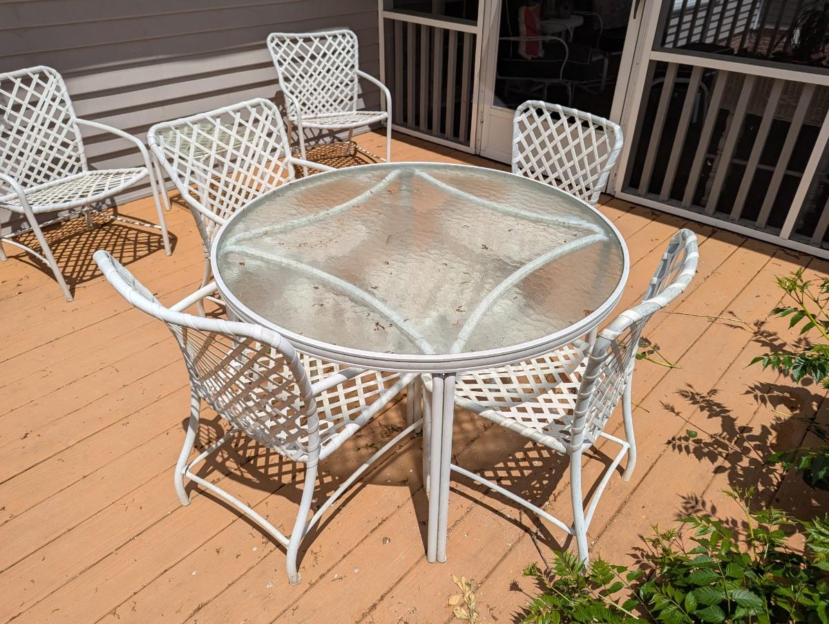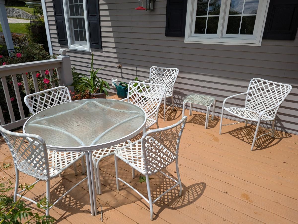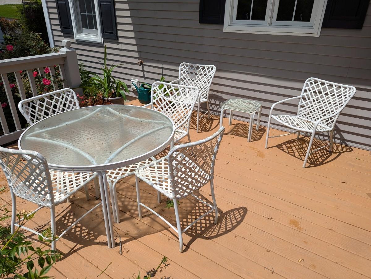 Marked - Vintage "Brown Jordan" Outdoor Metal Plastic Strap Patio Set