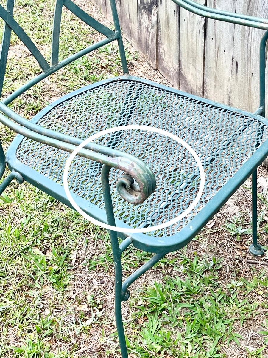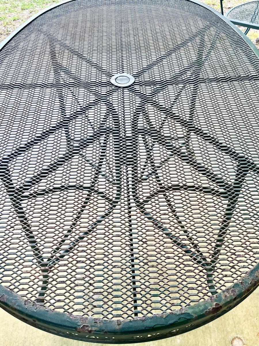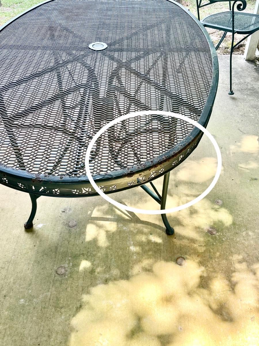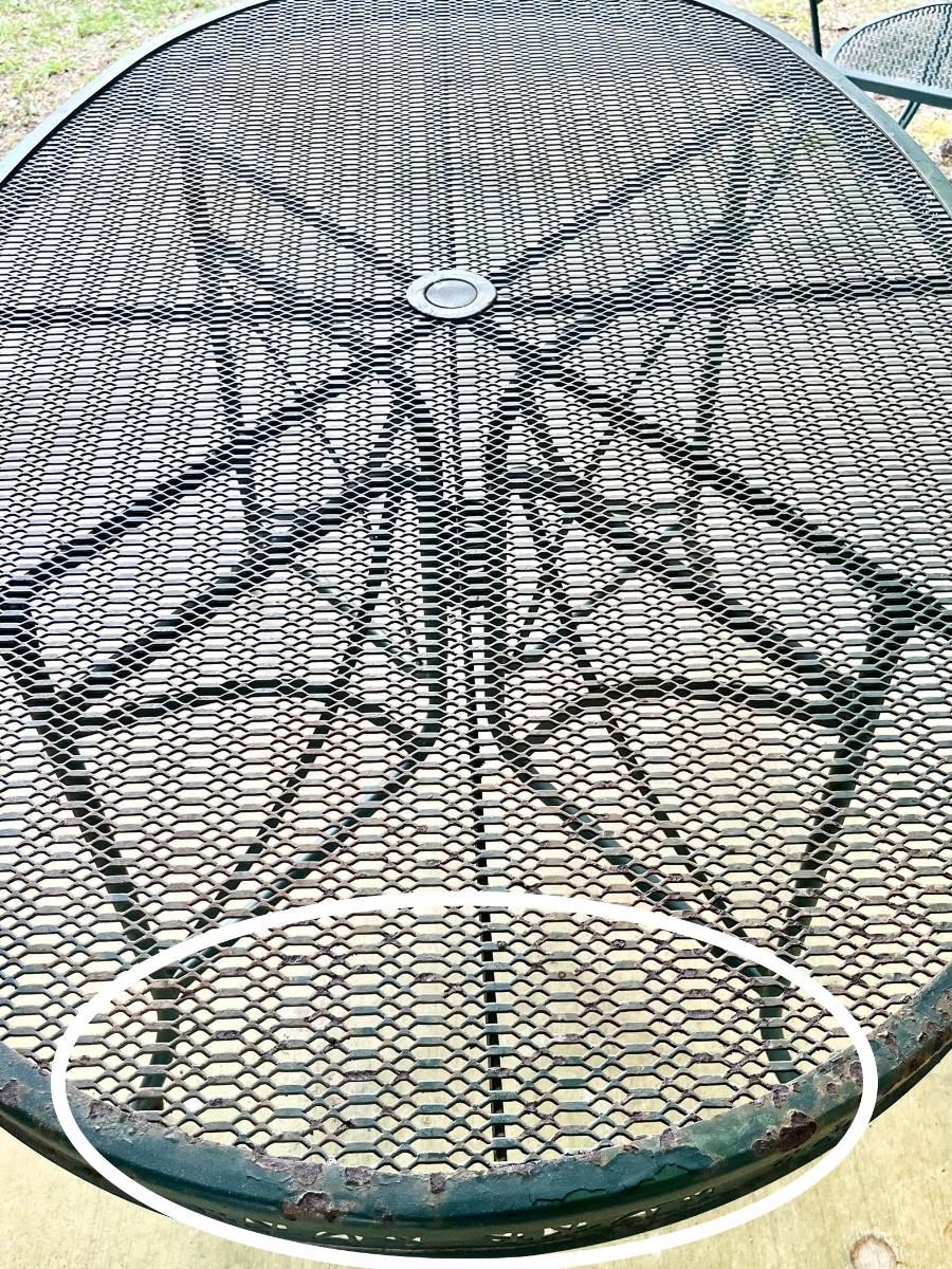 *Some rusting (see photos) ~ Table = 28” H x 60” W x 38” D ~ 4 Chairs = 36” H x 24” W x 21.5” D