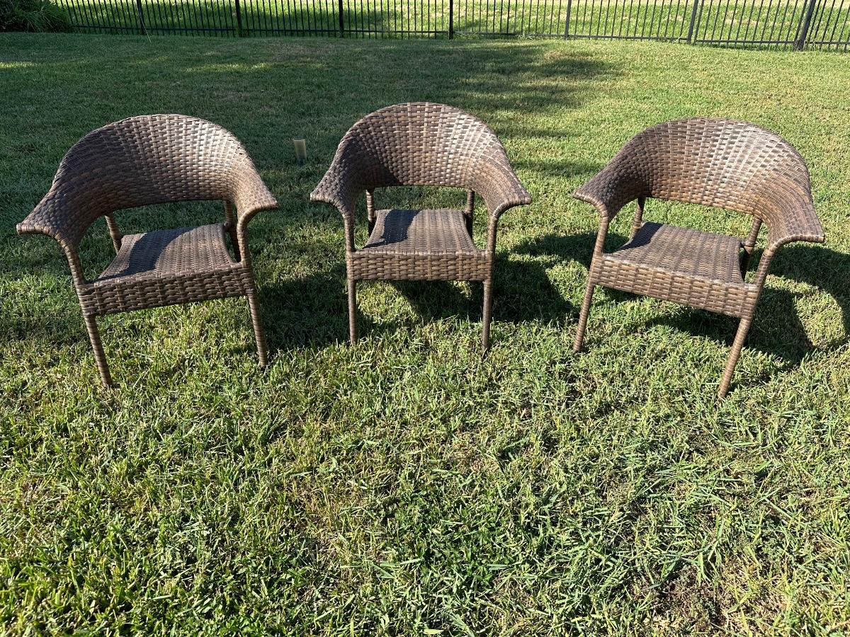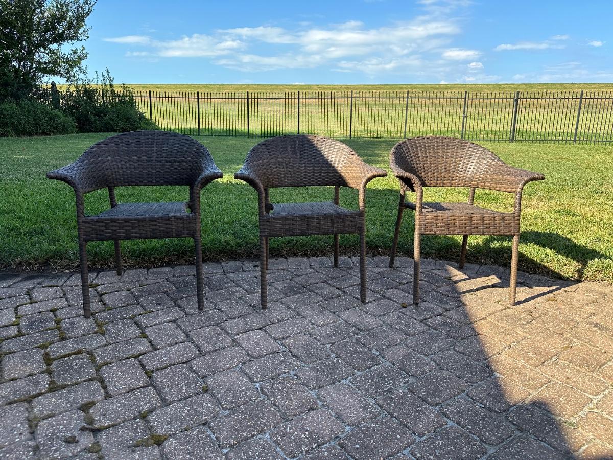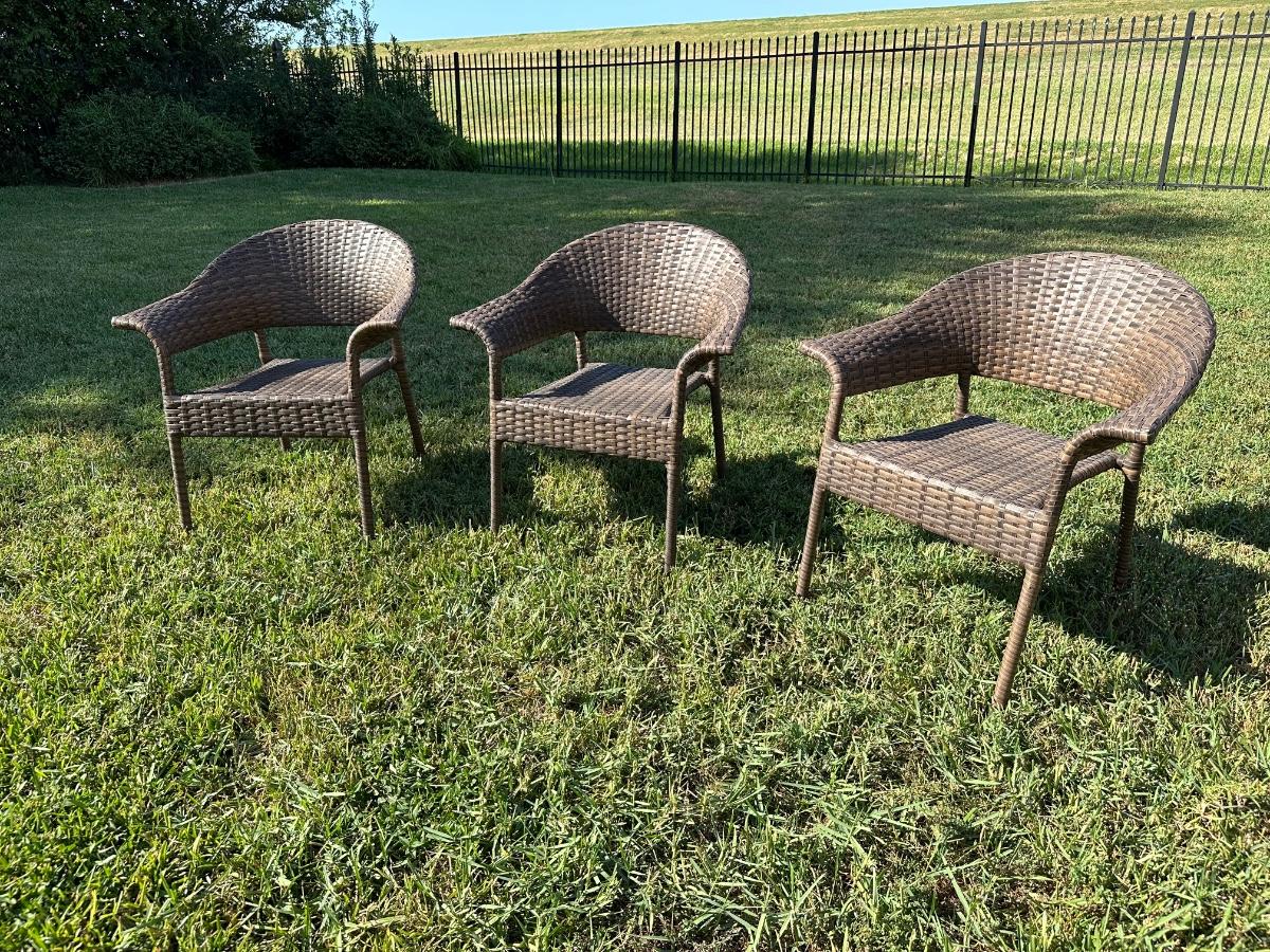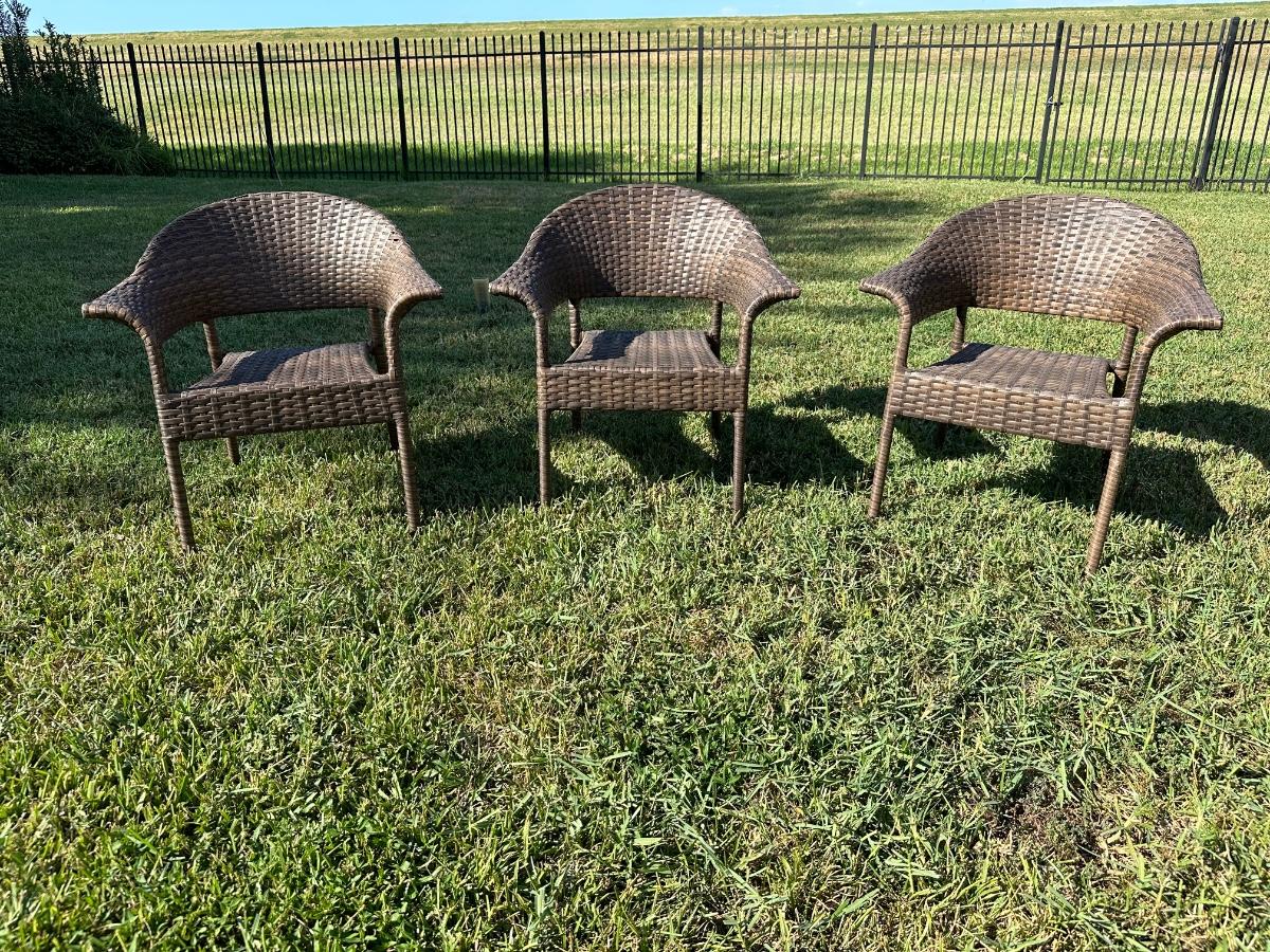 Three outdoor patio chairs.