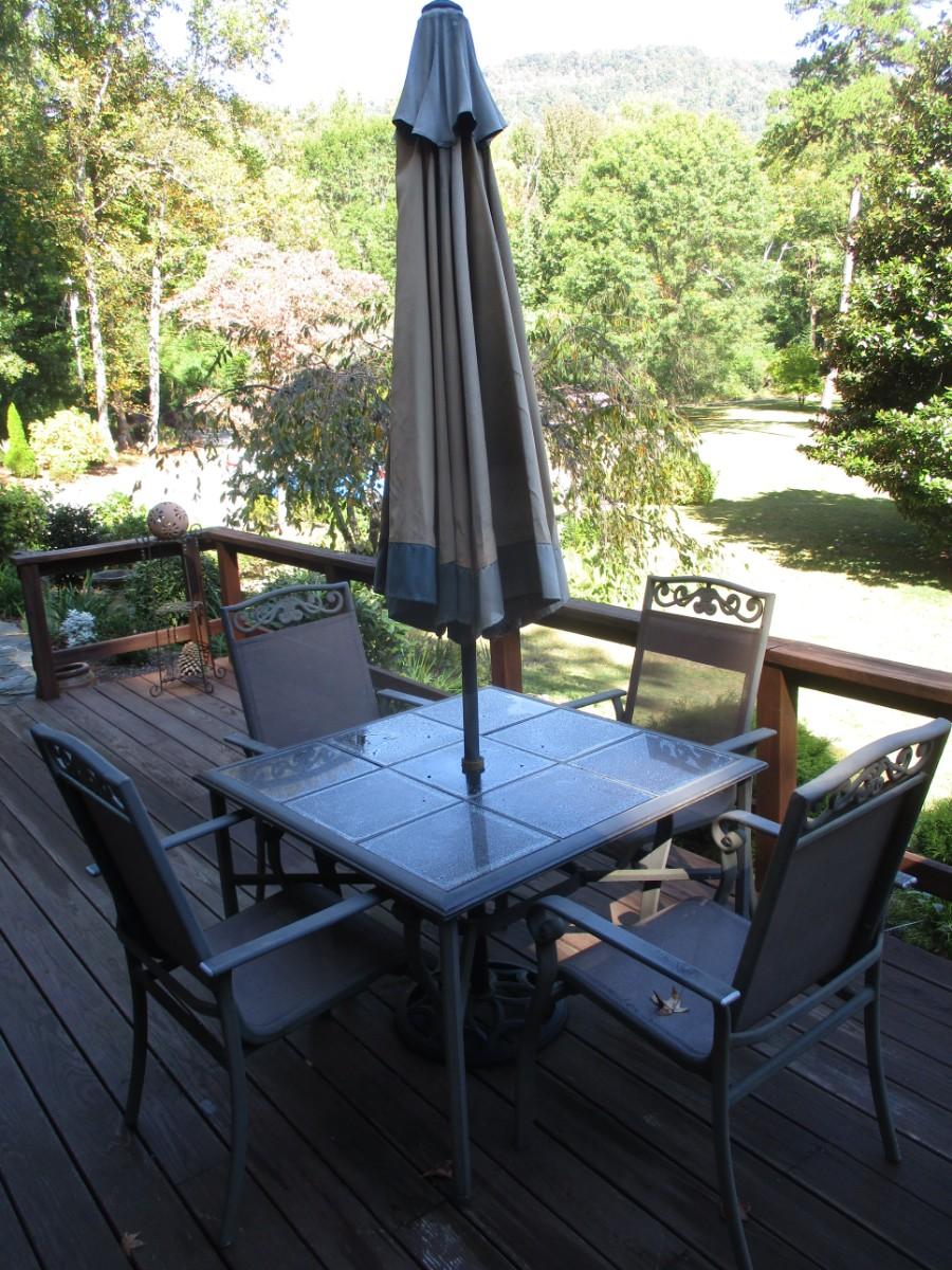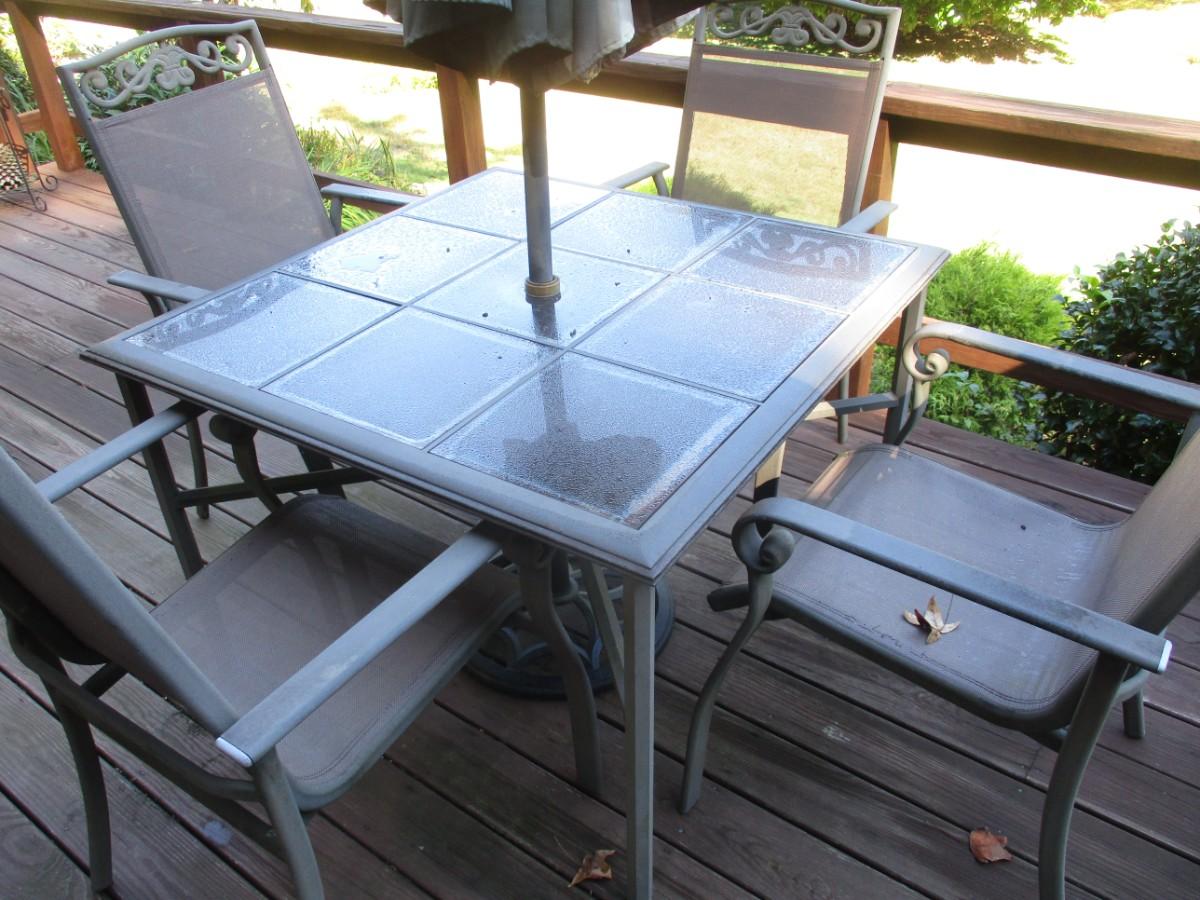 Outdoor Patio Furniture- Table, Four Chairs, and Umbrella
