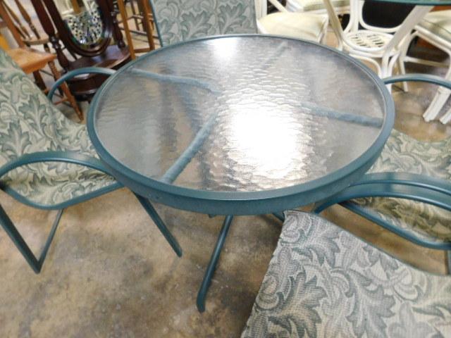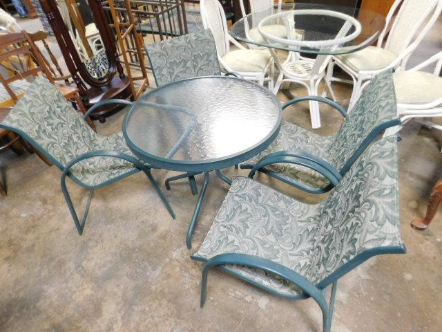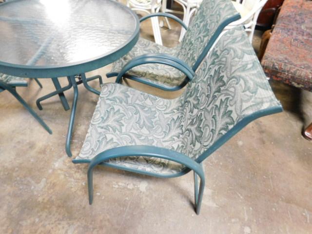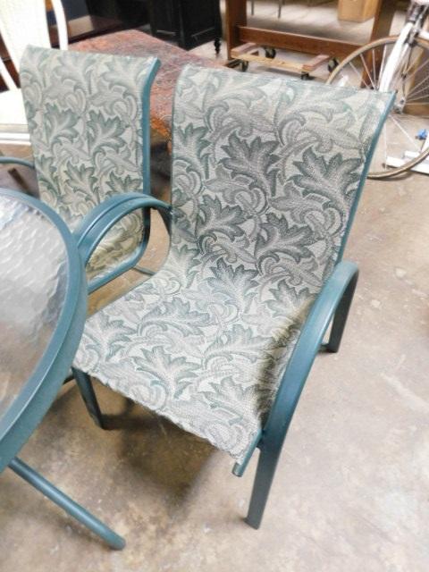 Outdoor Patio Green Table and Floral Pattern Fabric Chair Set 30"
