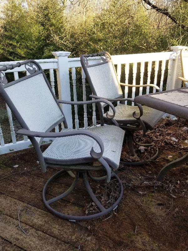 Table, 4 stationary chairs, 2 swivel chairs and 1 lounge chair