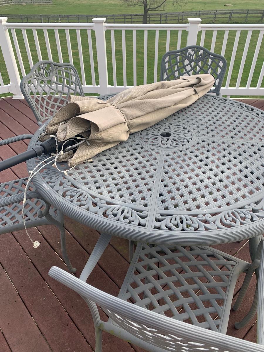 Outdoor Patio Set With Umbrella & Base 57" dia.