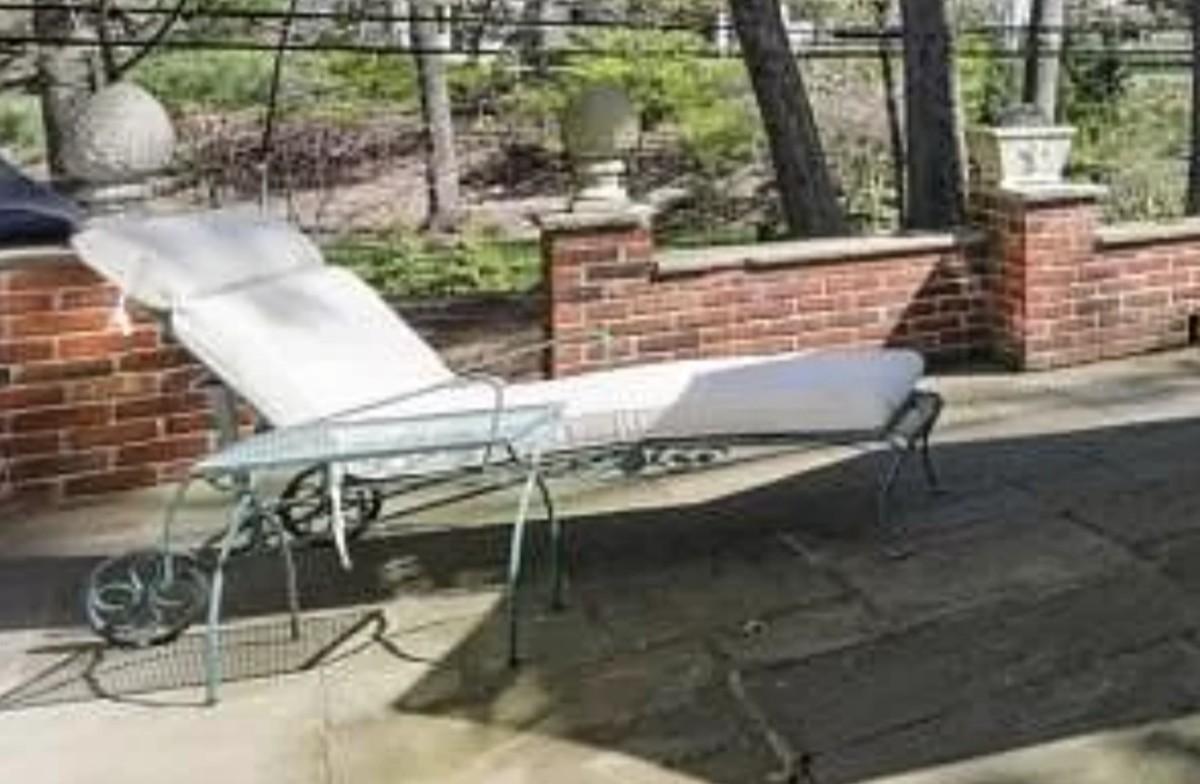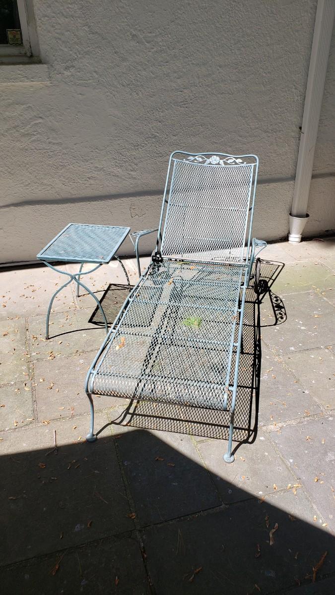 wrought iron lounge chair and side table