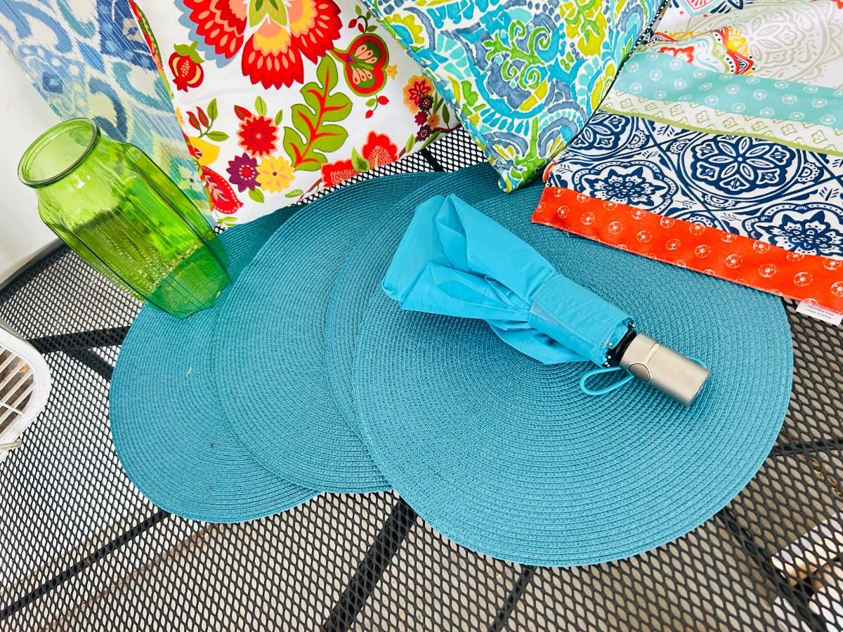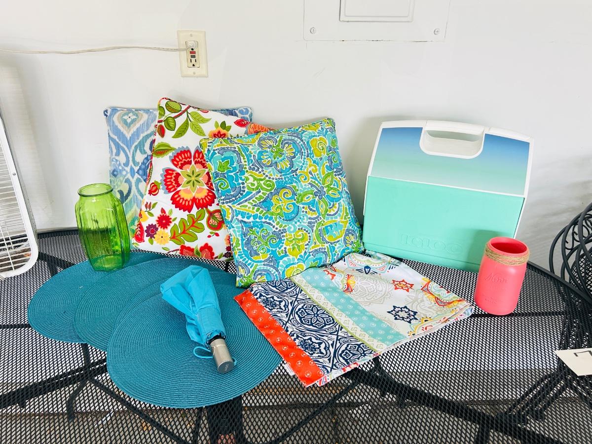OUTDOOR. PILLOWS, TABLE RUNNER, PLACEMATS, AMERICAN FLAG, UMBRELLA AND MORE