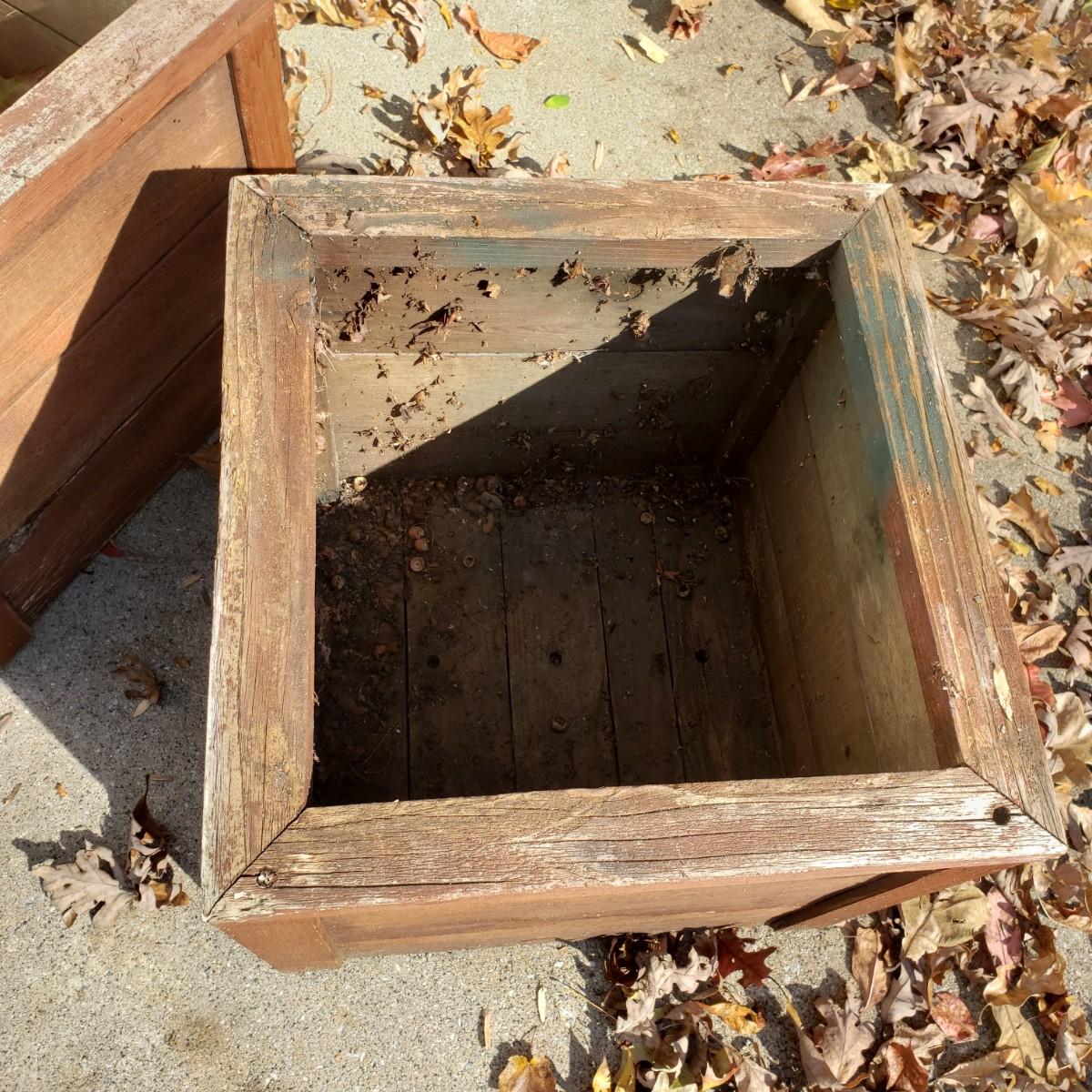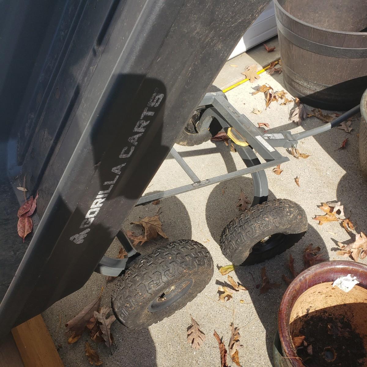 This yard lot features a gorilla wagon, wooden planters, plastic pots and one ceramic pot with bottom plate. The cart can be used as a dump wagon and measures 35" x 21.5" x 20"H. The wagon handle can be hard to turn, needs some lubricant on it.The largest black barrel looking pot measures 22" x 15.5"H. The two matching wooden planters have some weathering. The lone light wood planter appears to be in good condition.