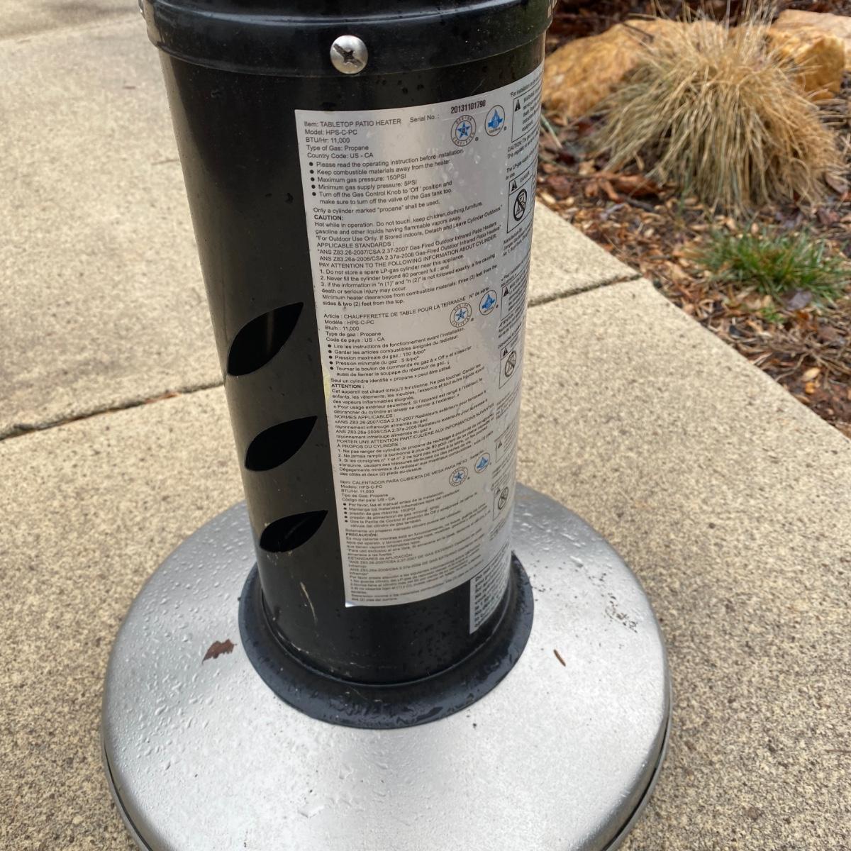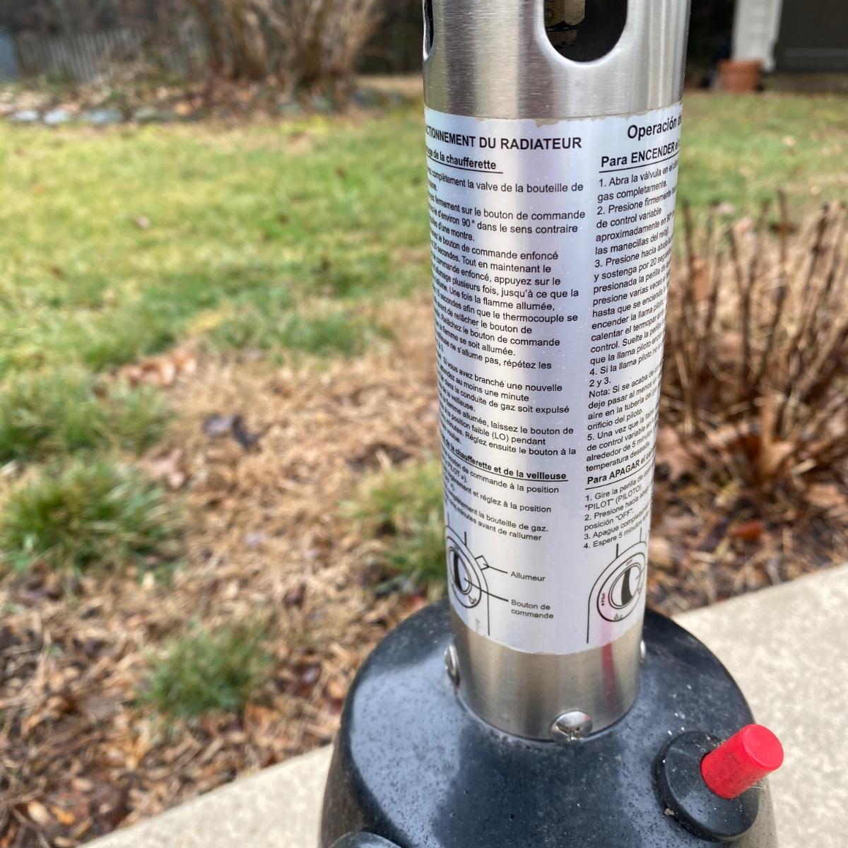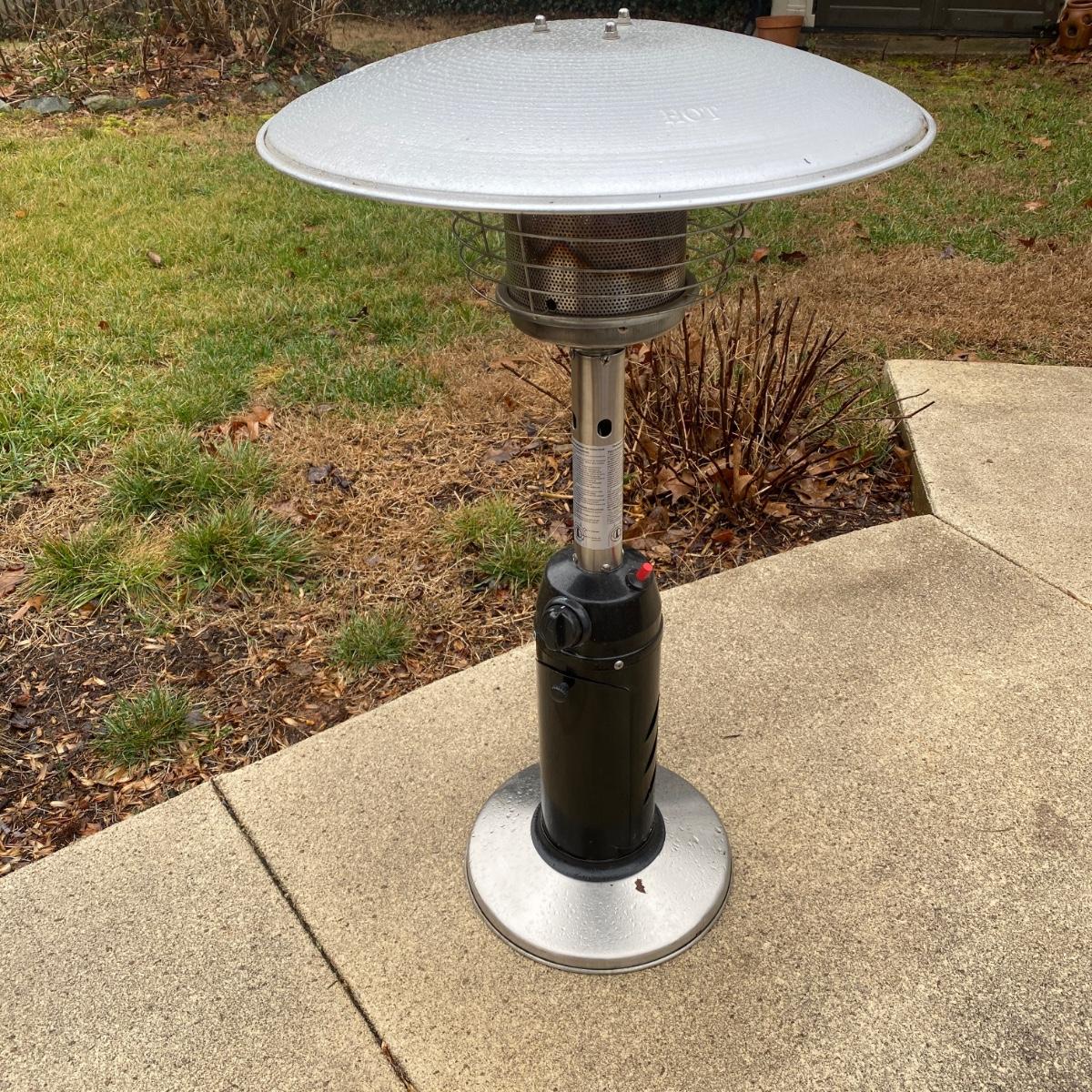 Propane heater to warm up your outdoor guests. Stands on the floor measuring 38” tall and 22”wide. Unable to test bc did not have propane. Owner said it works but we can’t guarantee. Appears to have been rarely used. Good condition. Local pick up.