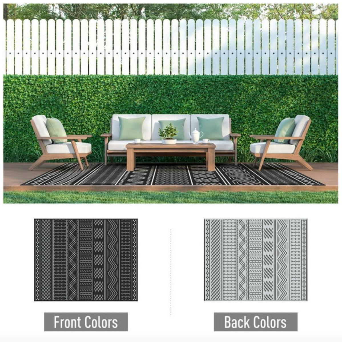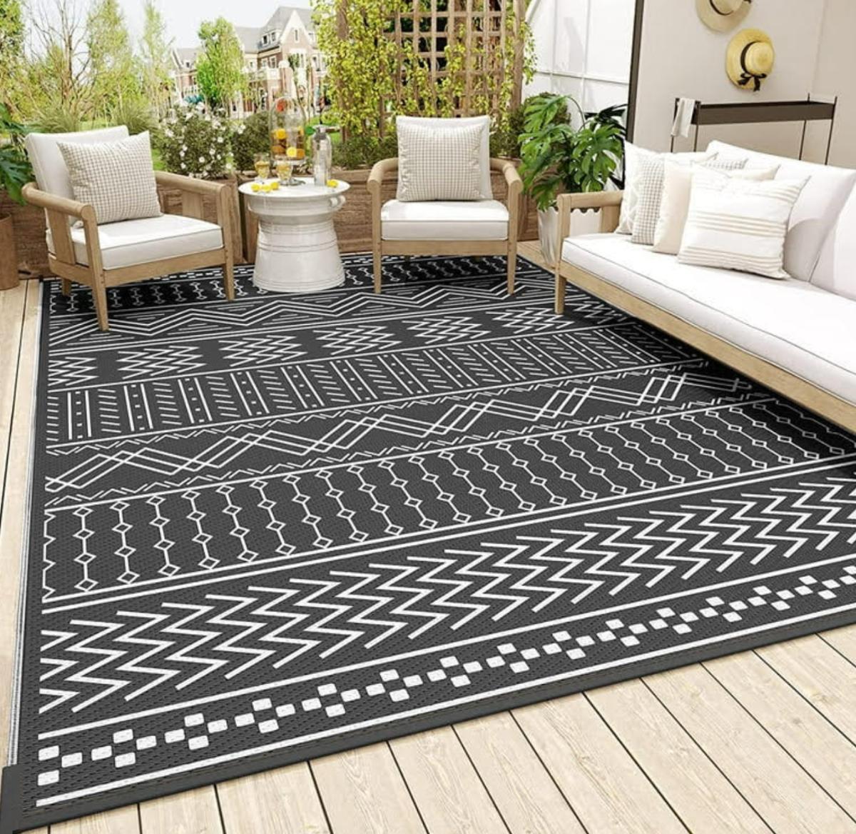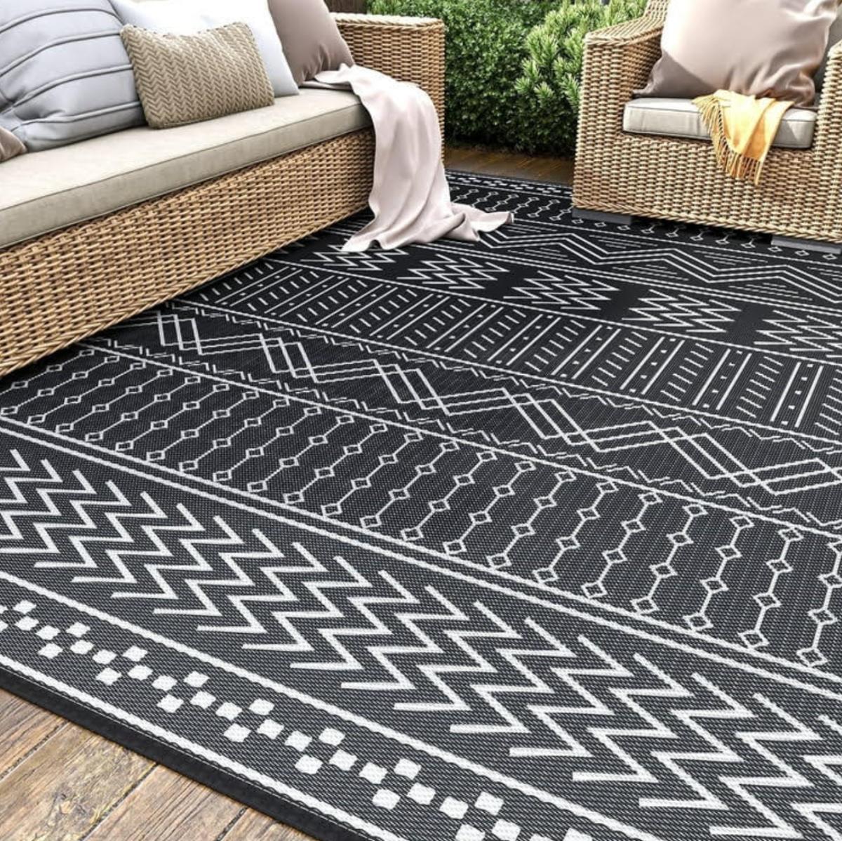 Outdoor Rug 5'x8' Waterproof Patio Rug Reversible Indoor Outdoor Rug Lightweight Plastic Straw Rug for RV Camping Deck Balcony Boho Porch Decor Black and White