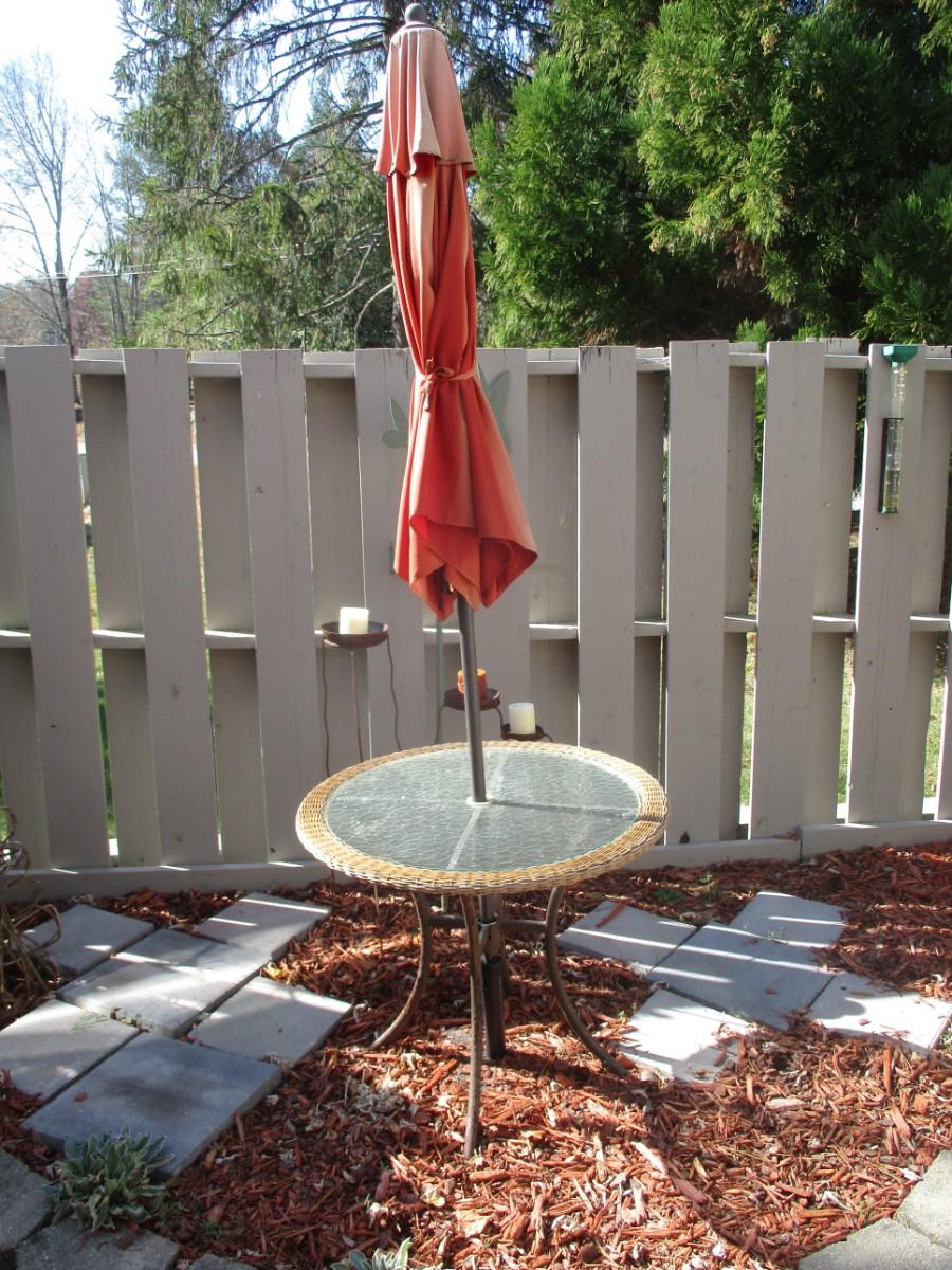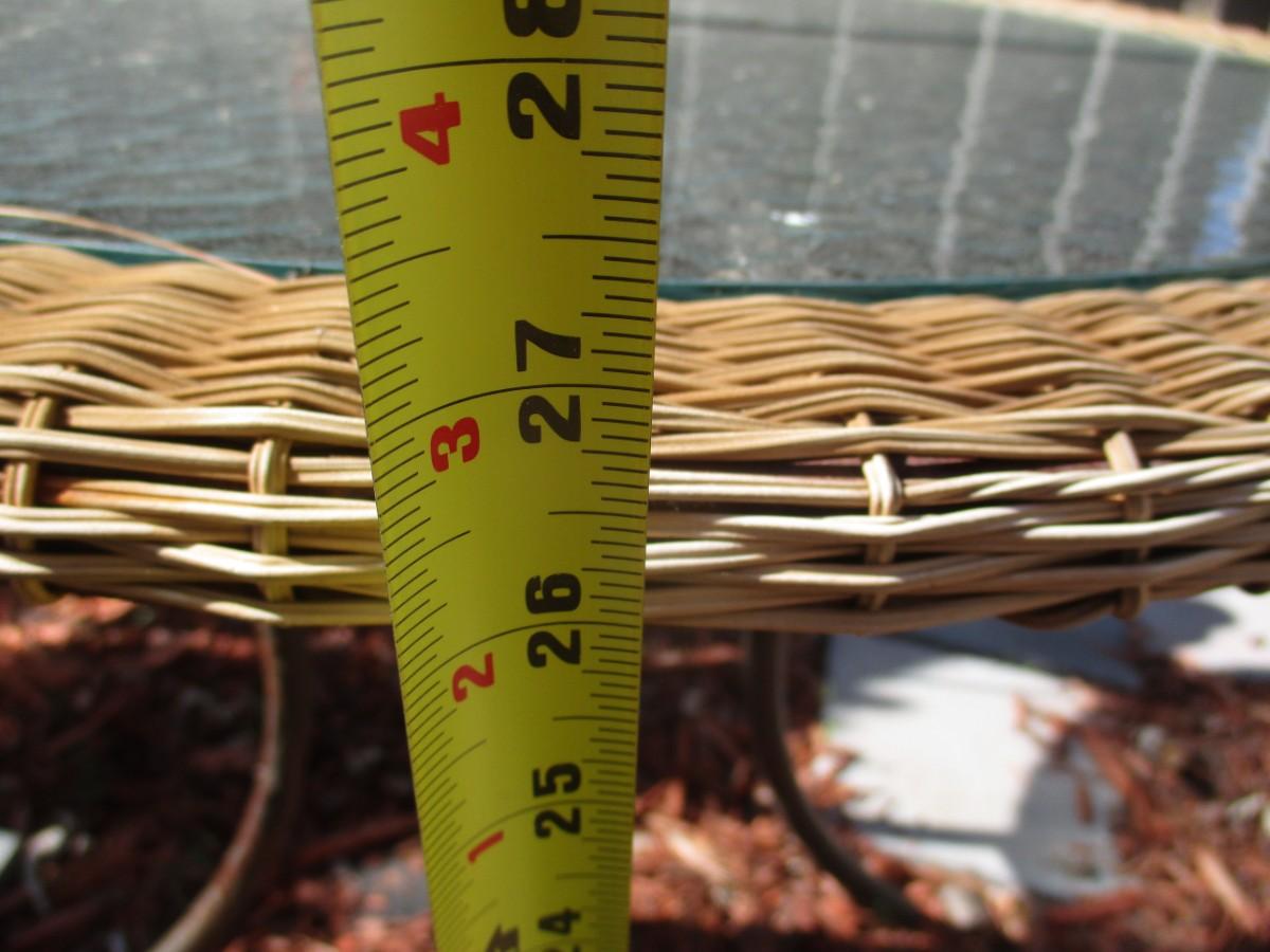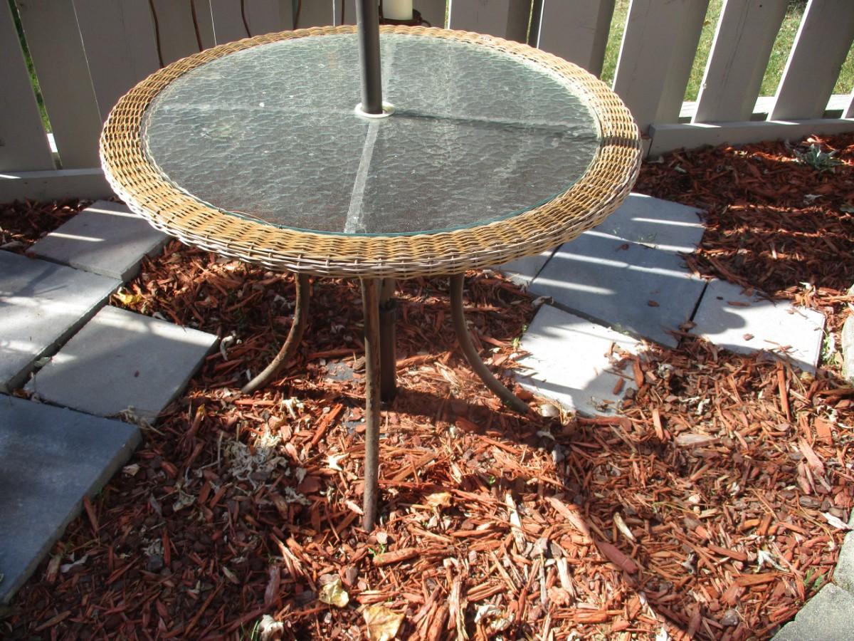 Outdoor Metal Frame Patio Table with Glass Top and Wicker Weave Trim