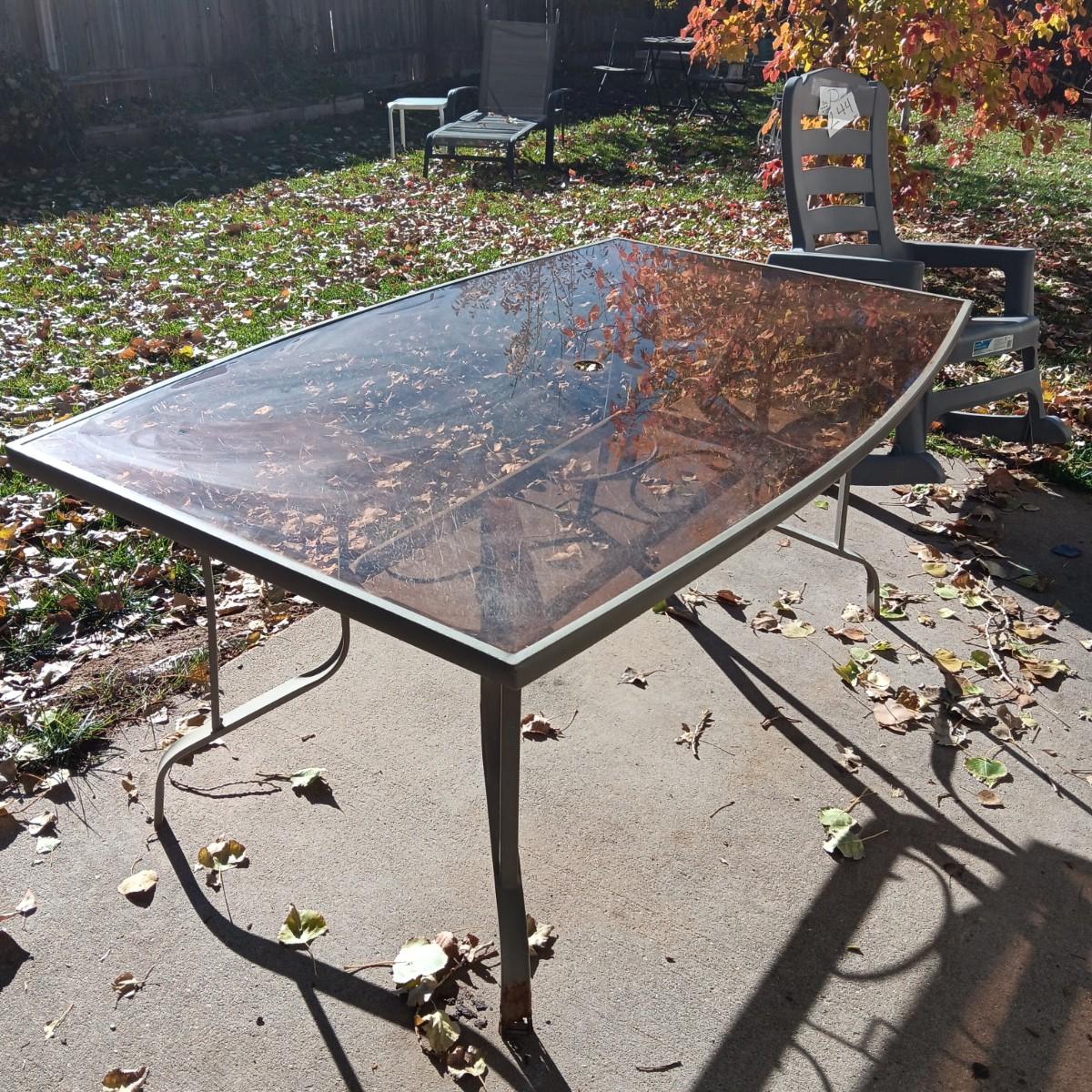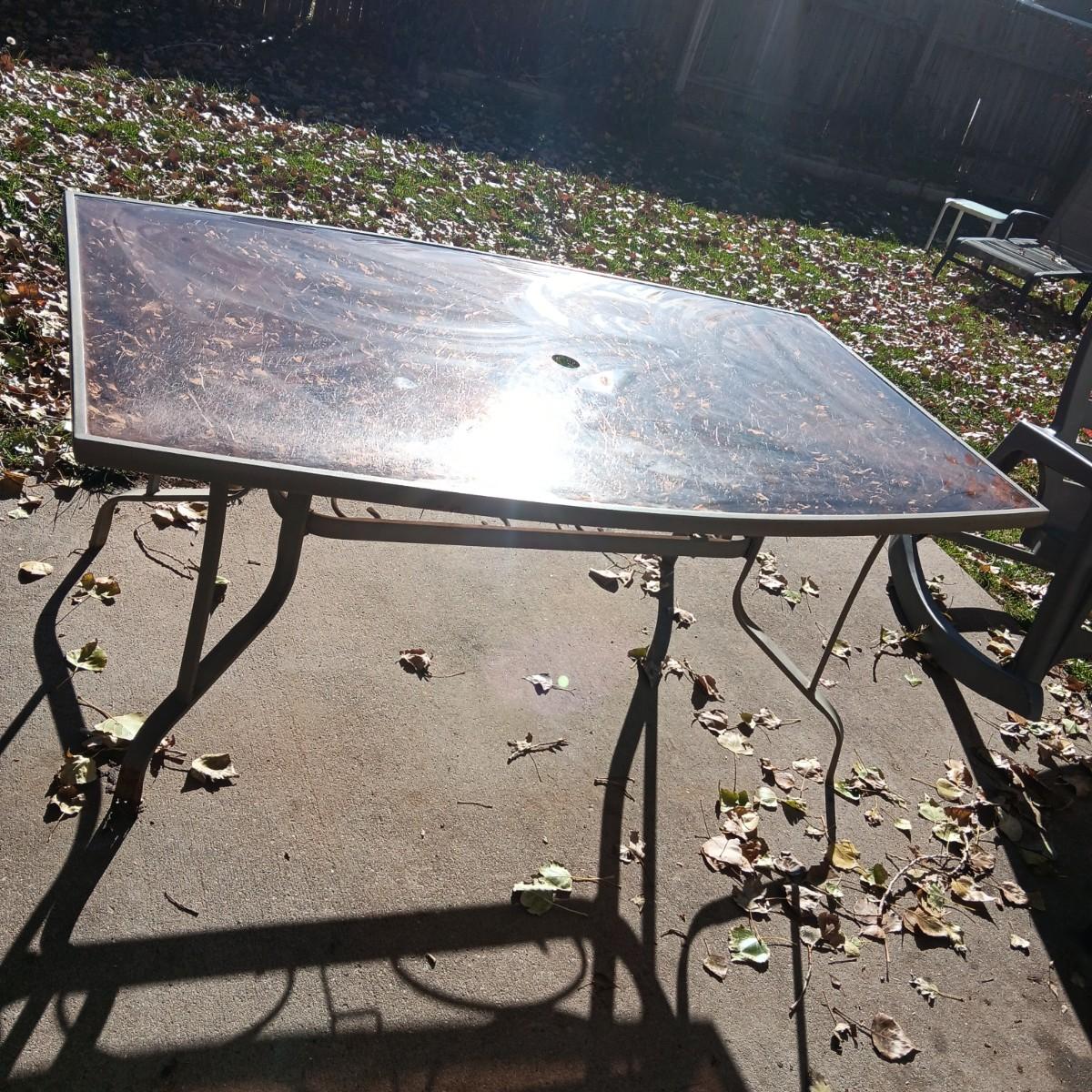 THE GLASS TABLE HAS SMALL SCRATCHES