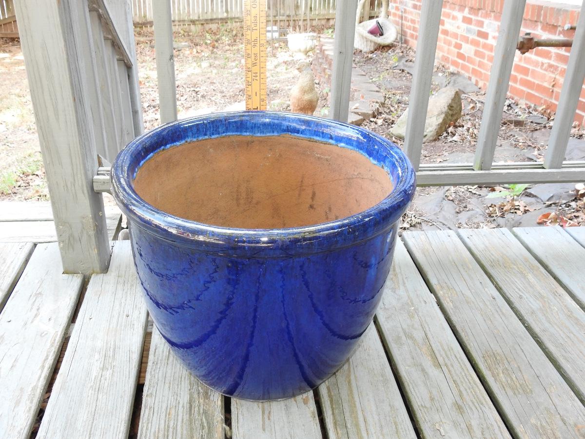 Large outdoor terracotta planter measures 15” tall and 17” in diameter in great used condition