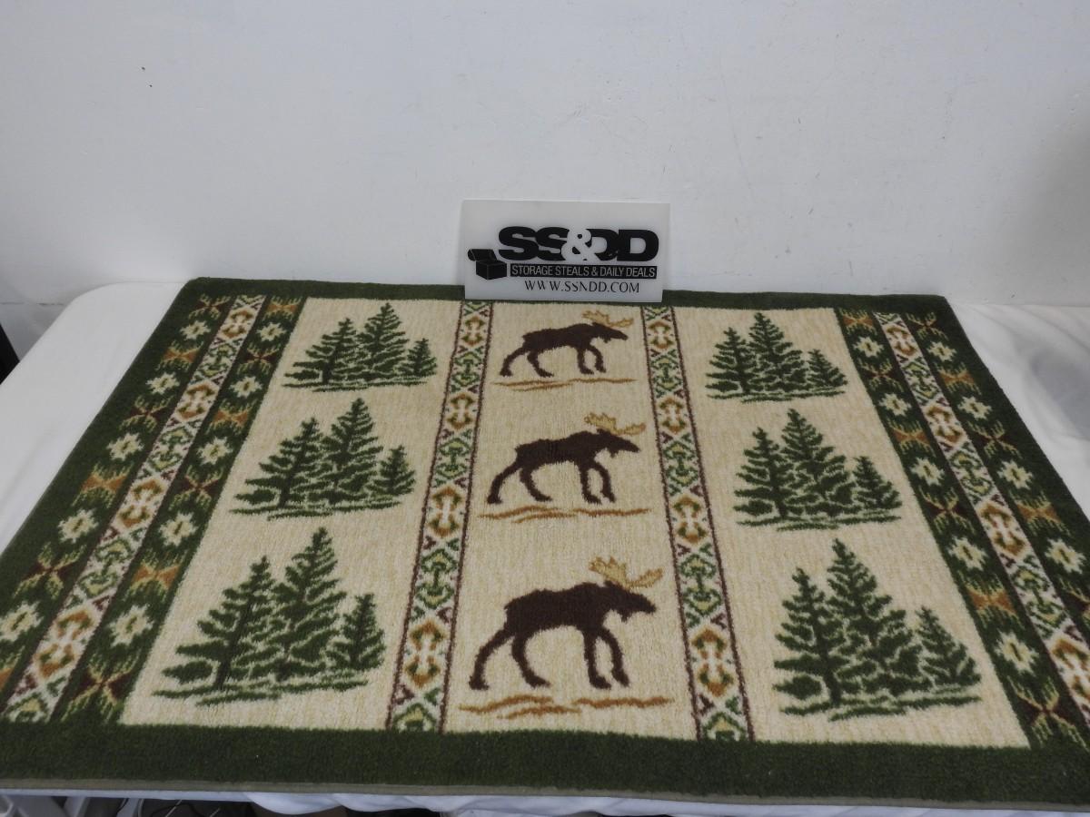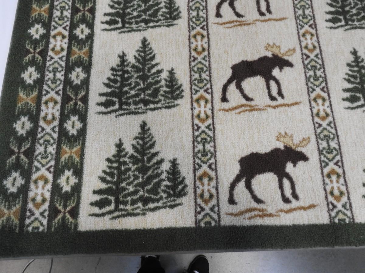Outdoor Theme Rug. Brown/Green/Tan Trees & Moose 30" x 47"