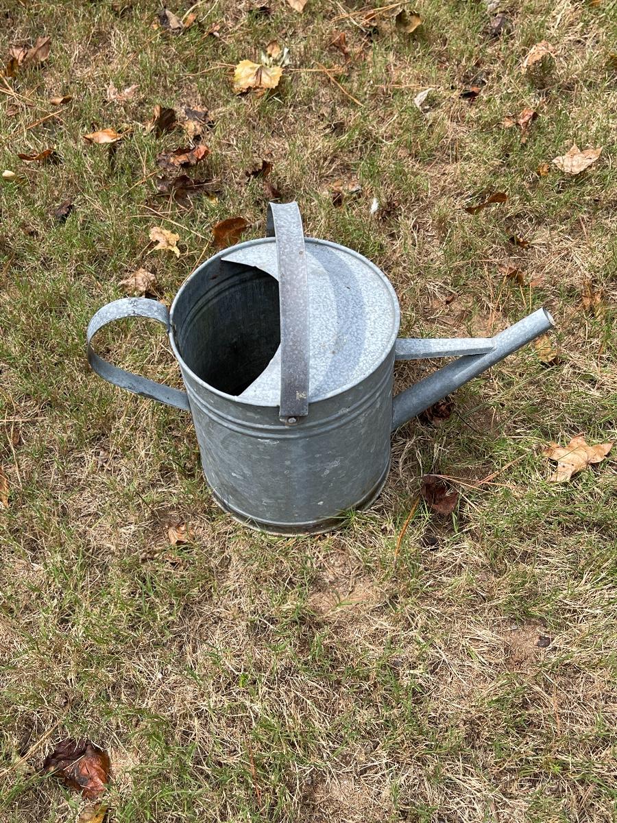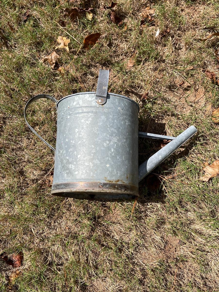 Galvanized watering Can = 14 1-2” H