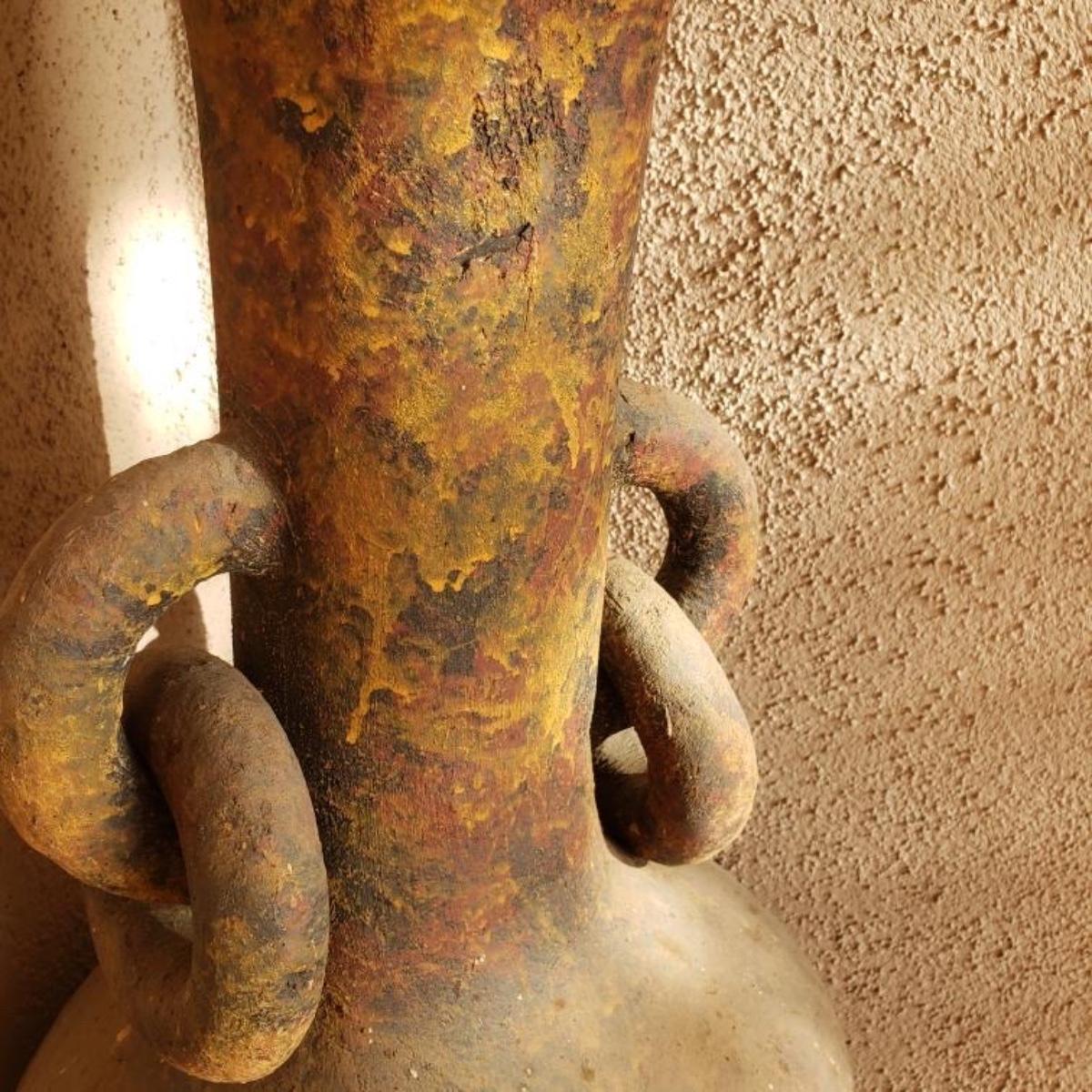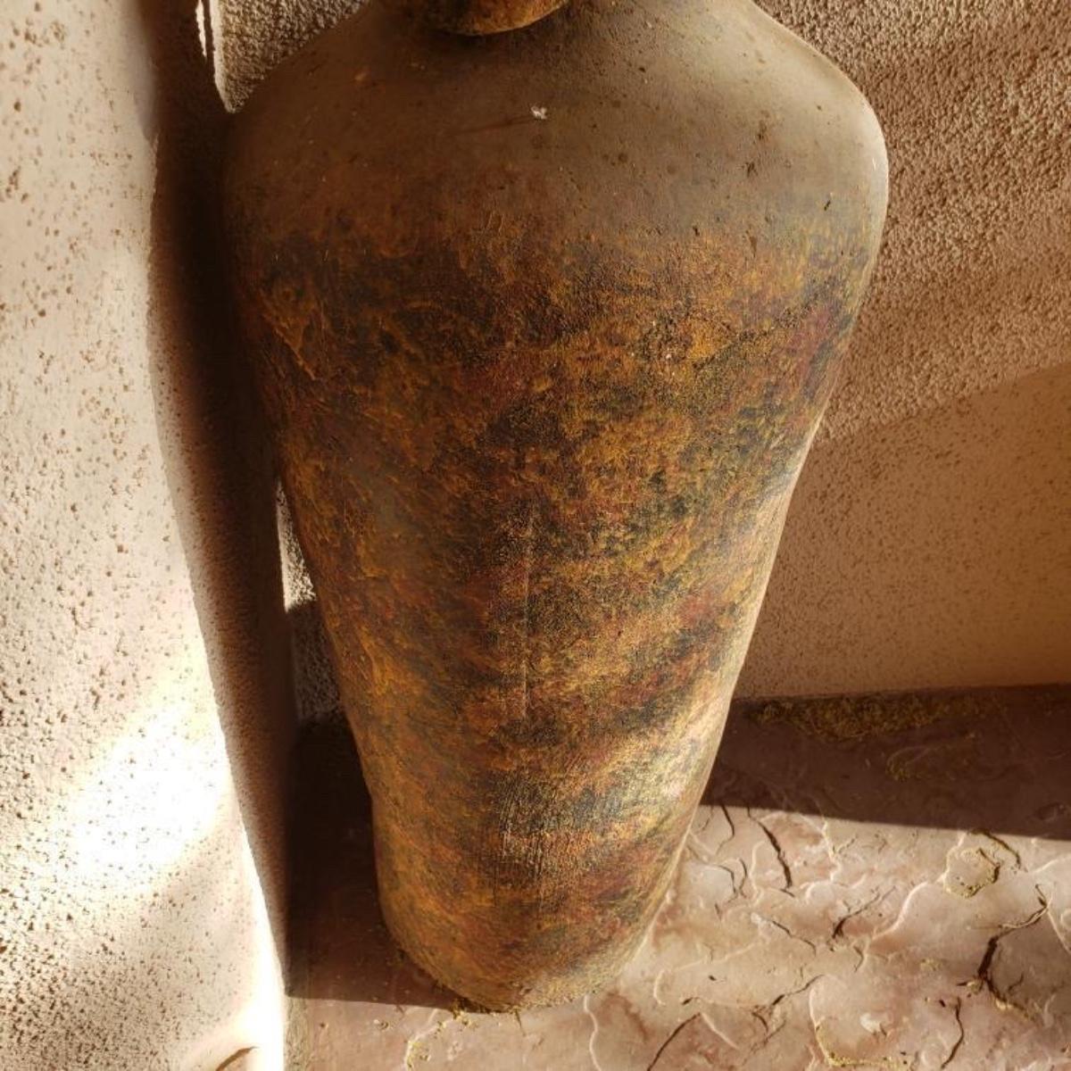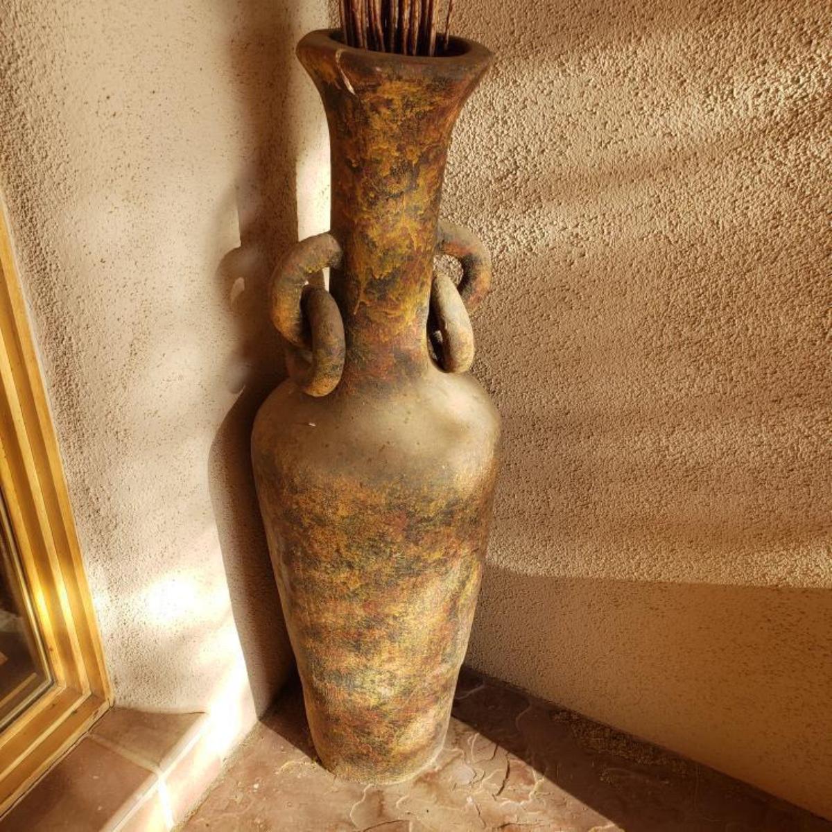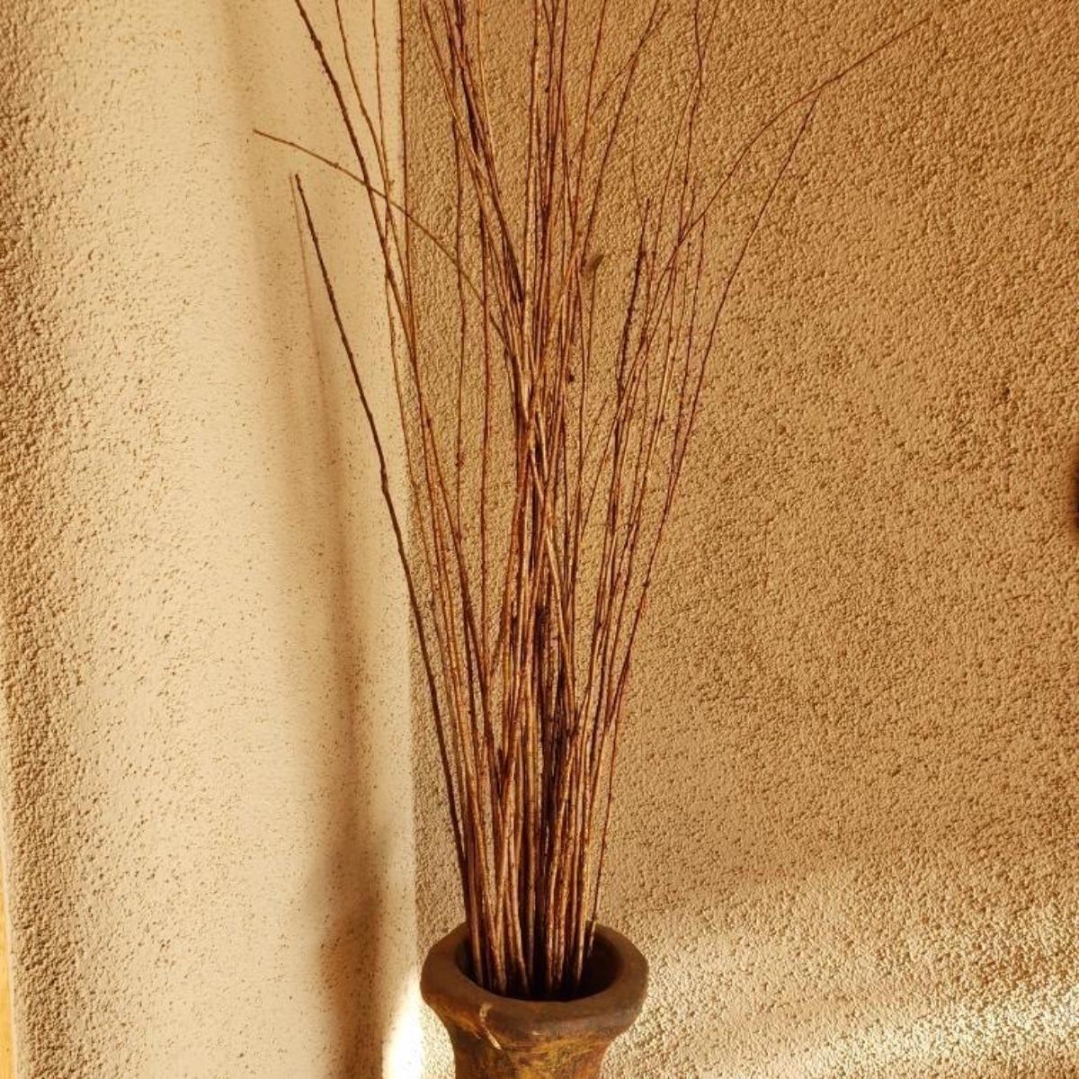 38” Tall x 12” at widest point. Painted Ceramic, includes dried plants. Very nice decor.
