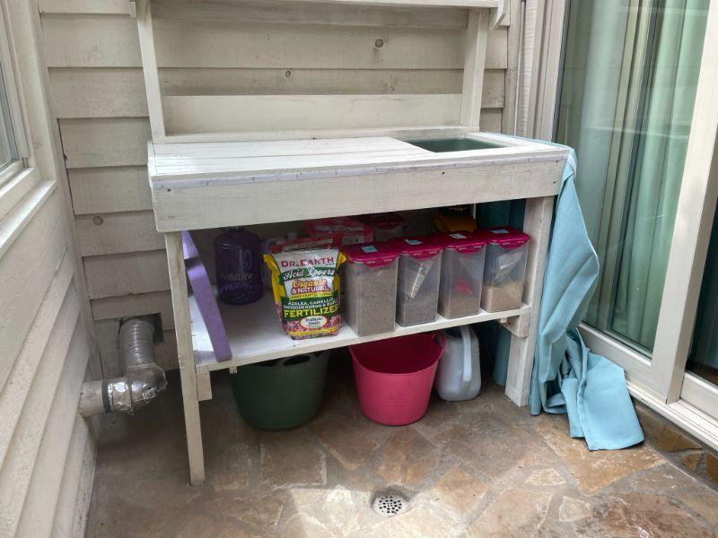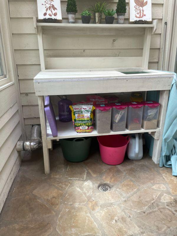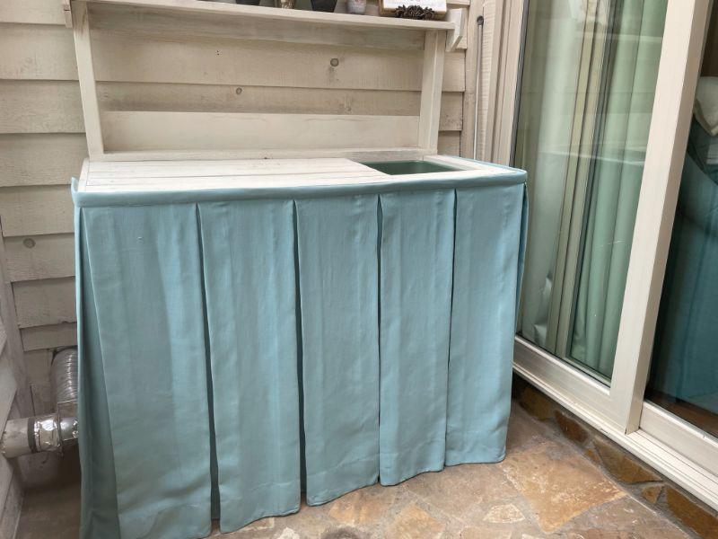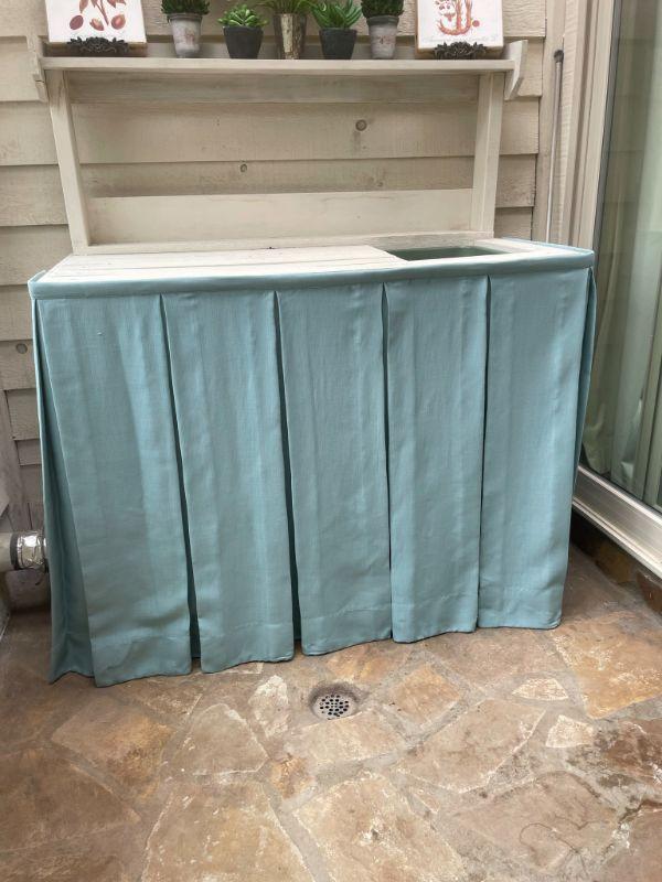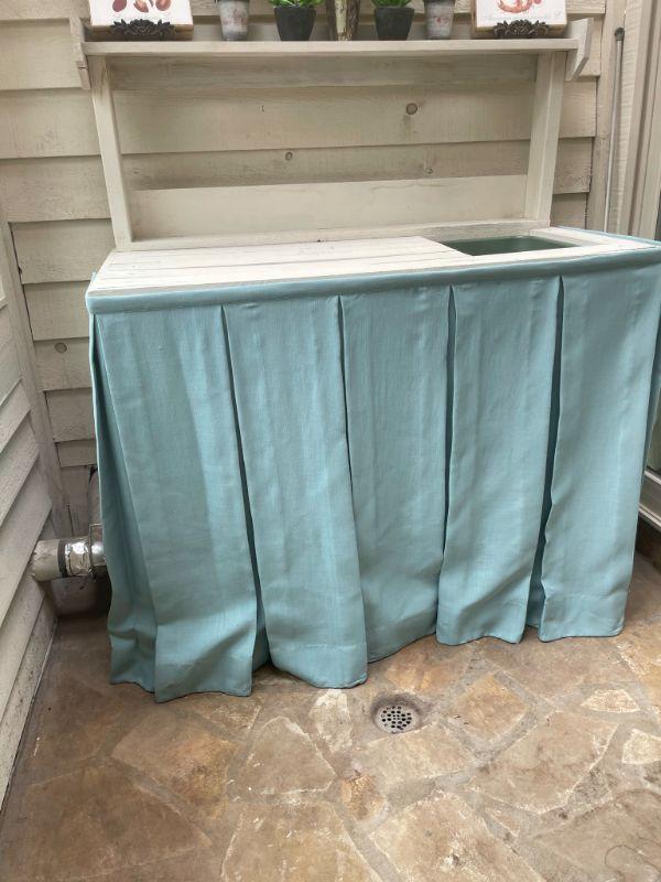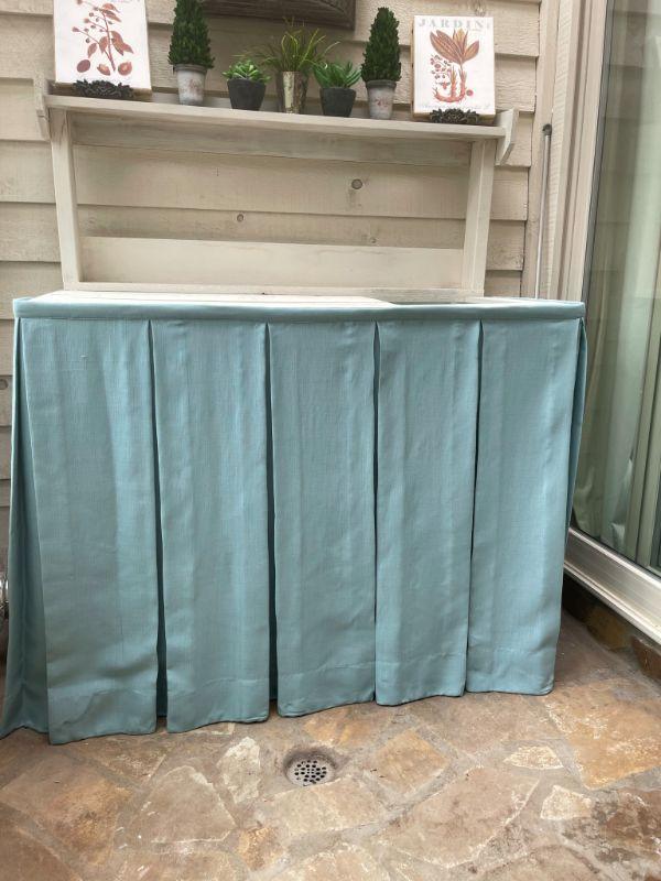 Only includes the stand and Table Skirt (professionally made). Measures 56 1/2" H X 47 1/2" W X 24" D