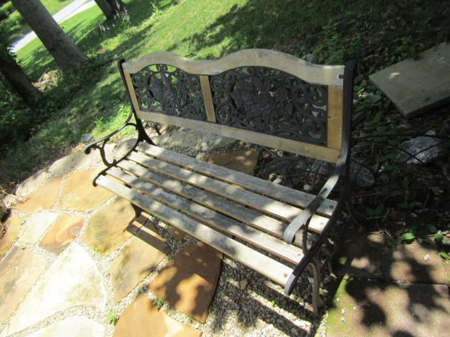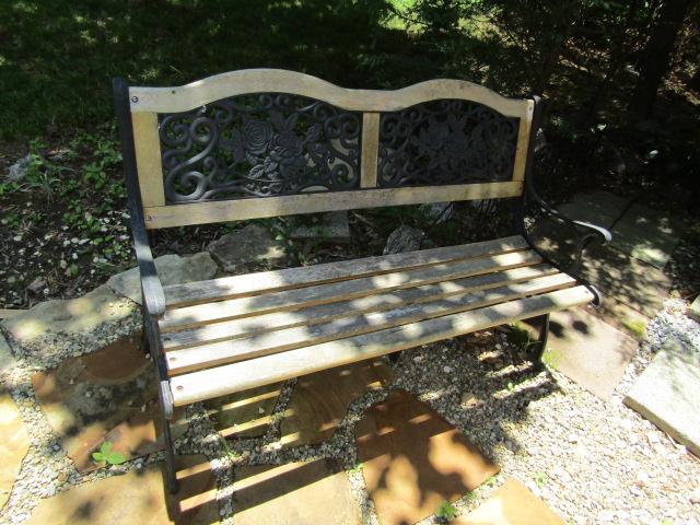 Outdoor Wood Slat Bench with Cast Frame 50" no stairs