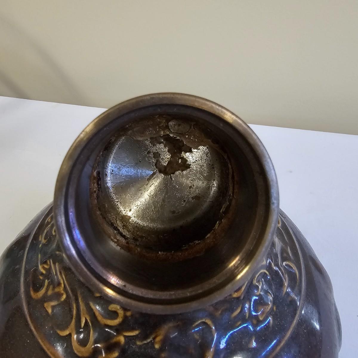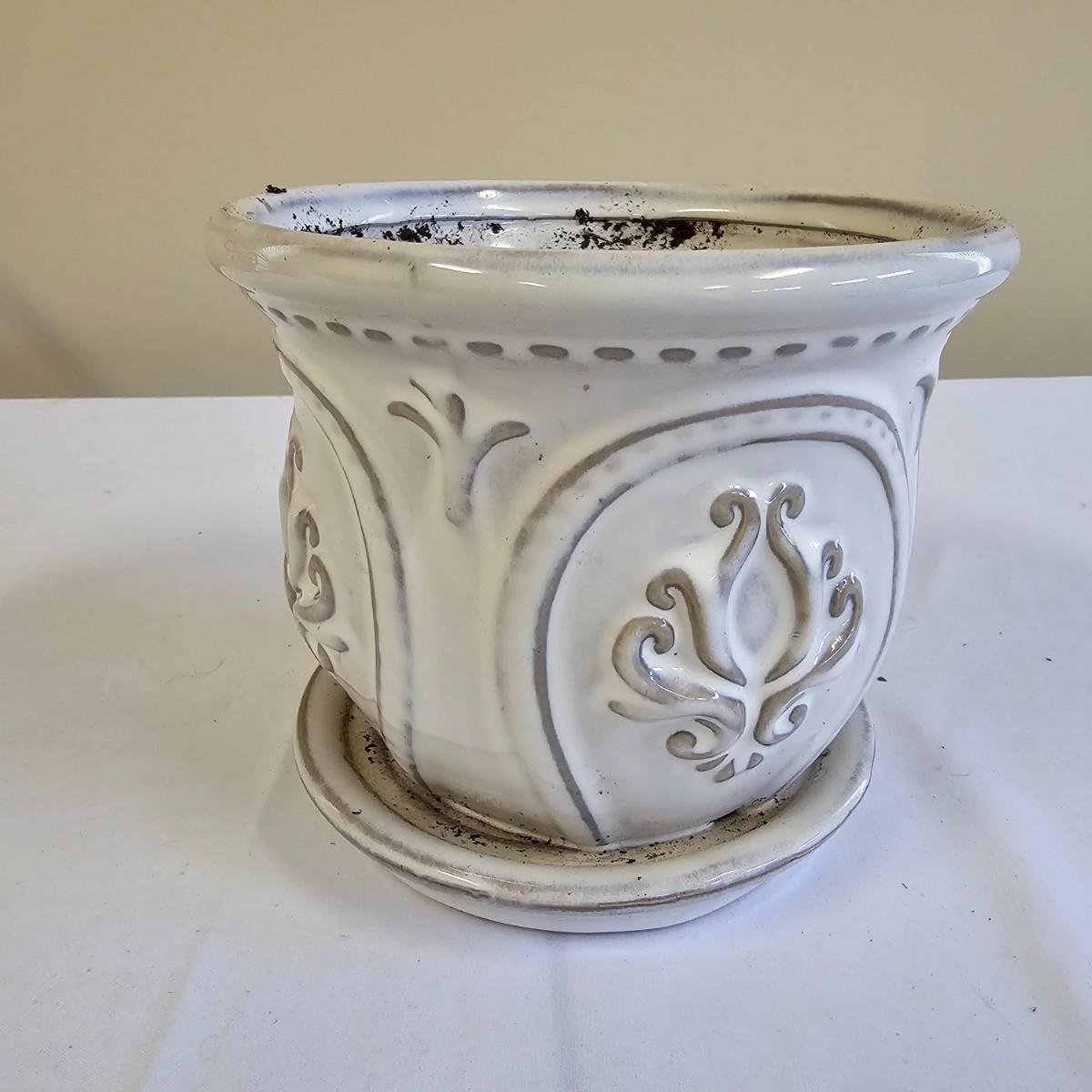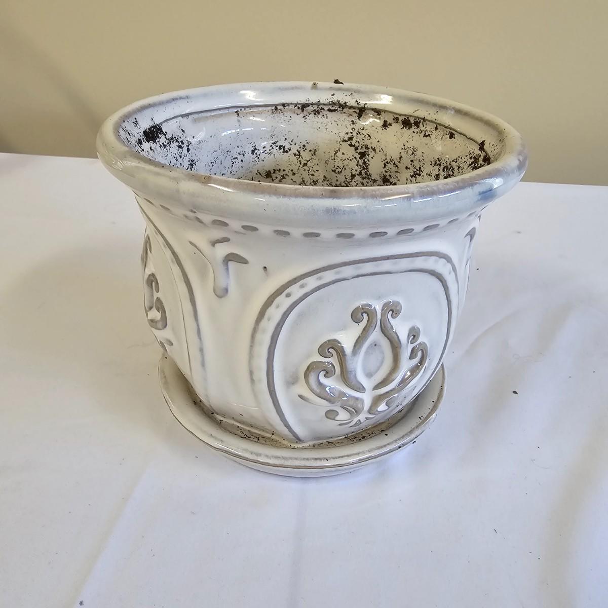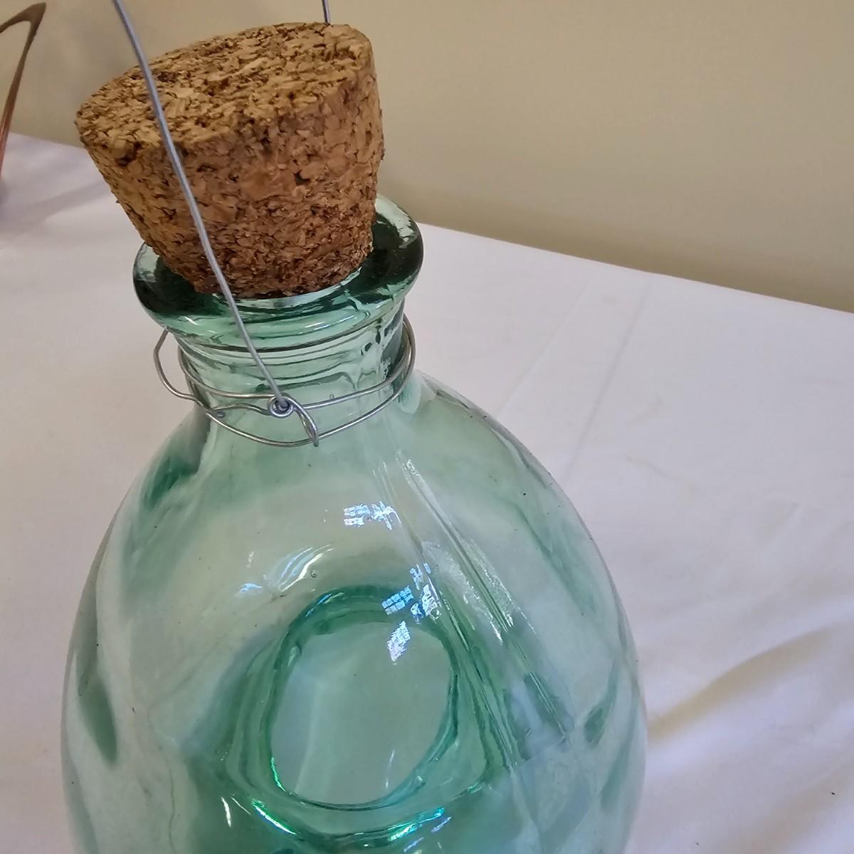 Some unique pieces of decor for your patio or yard. One swirling two piece wind spinner, 14" D x 14"H. A green glass insect trap, 7"D x 10"H. A couple ceramic pots, one 5.5"D terra cotta pot, and a decorative bronze thermometer with a hummingbird theme, 8"H. See photos for details. Shipping available.
