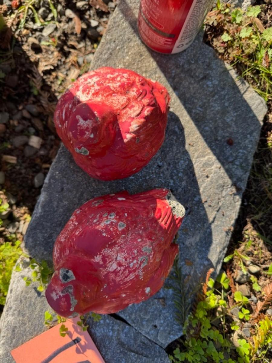 Concrete Two Red Birds (as is) L 6" X 4" and L 5" x 4"