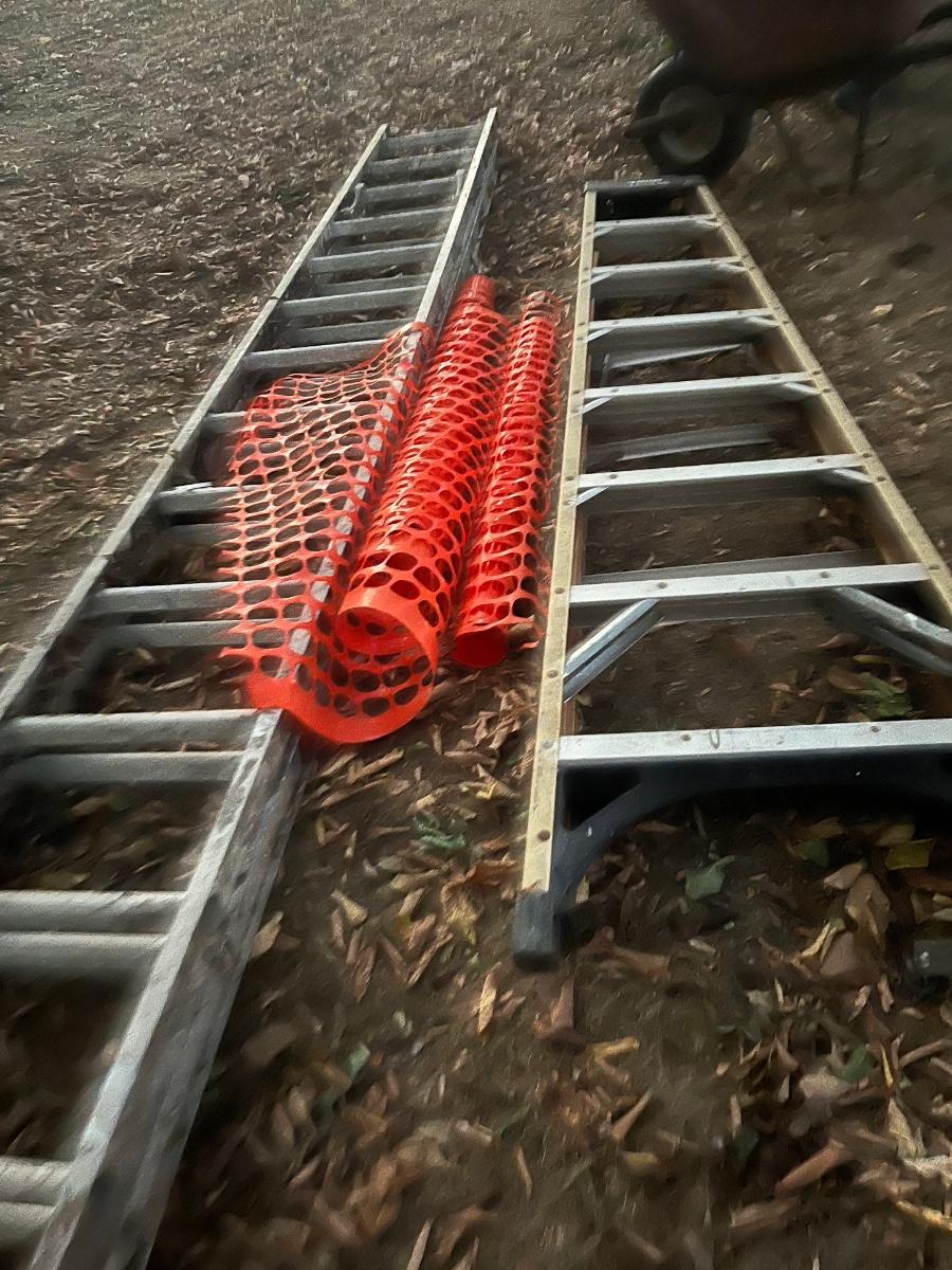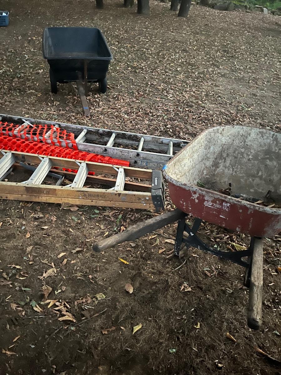 Ladders & wheel barrow & lawn cart