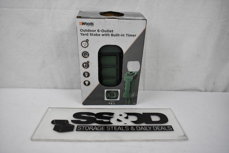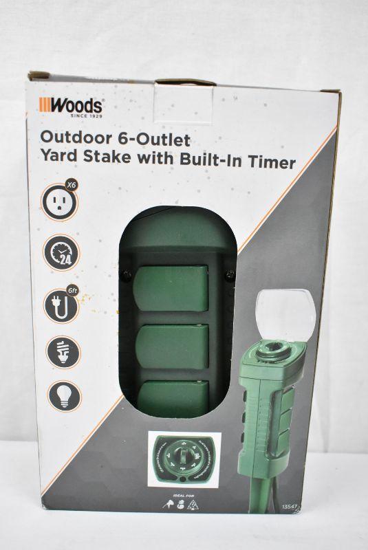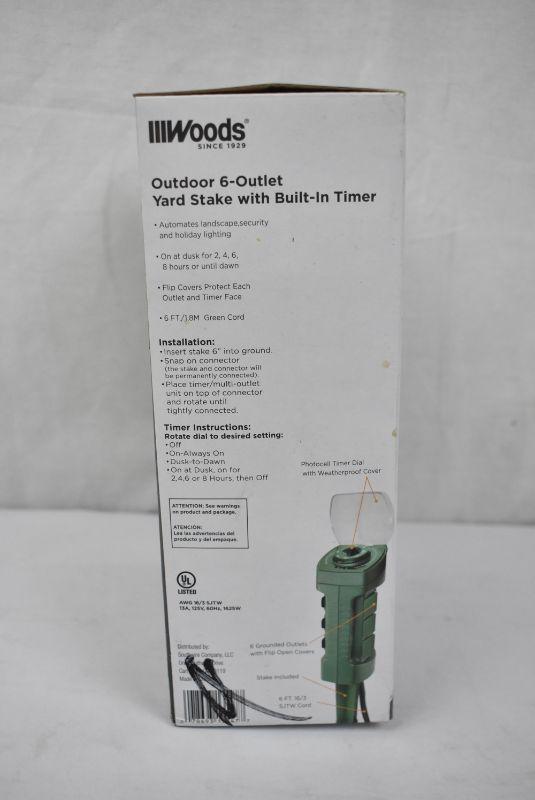 Woods 13547 Outdoor Yard Stake with Photocell Built-In Timer and 6- Foot Cord, Automatic Lighting with Adjustable Settings